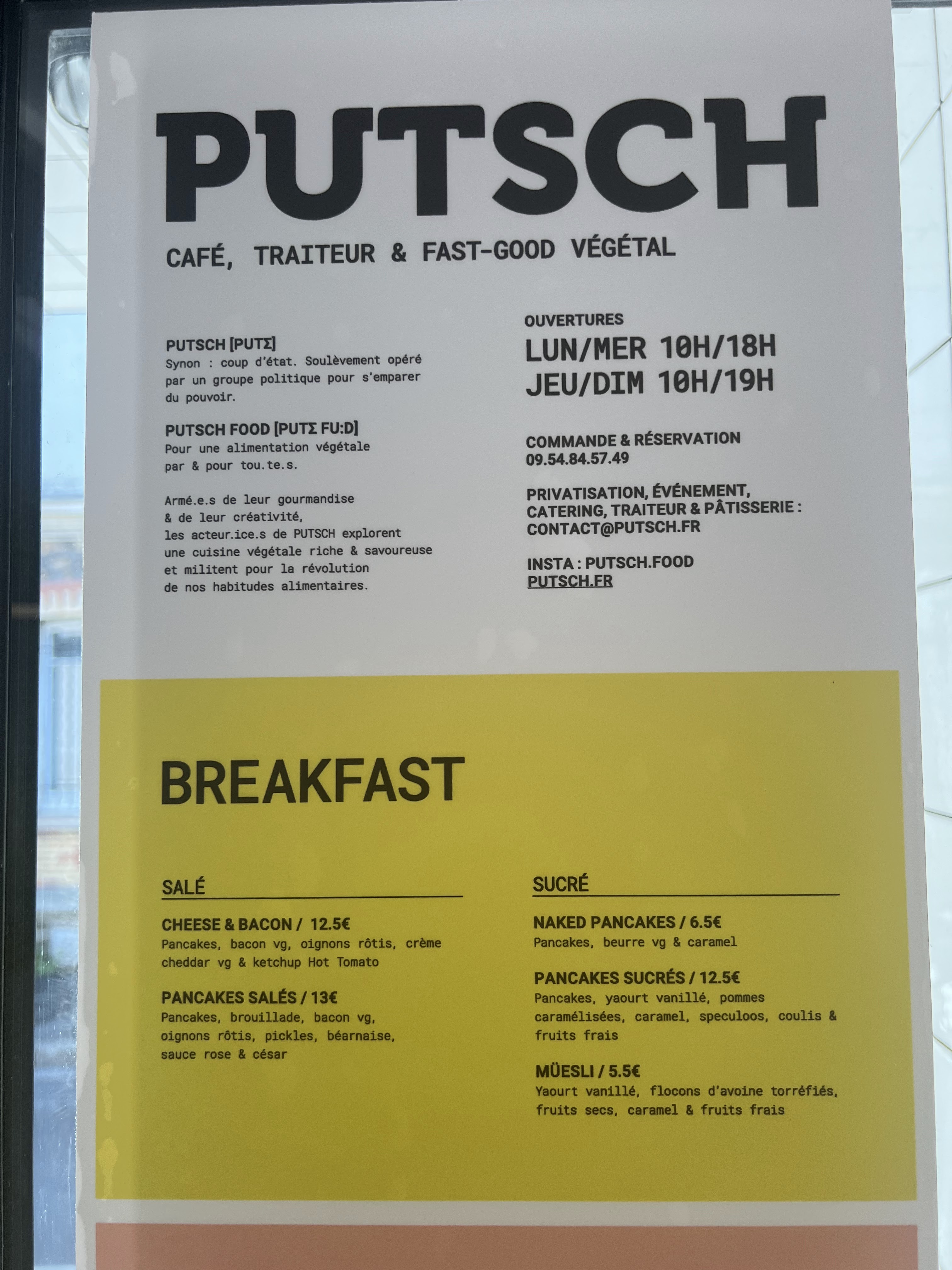 Putsch c'est que de la joie ! Nourriture délicieuse et vegan, staff de qualitey, terrasse sous le 🌞
