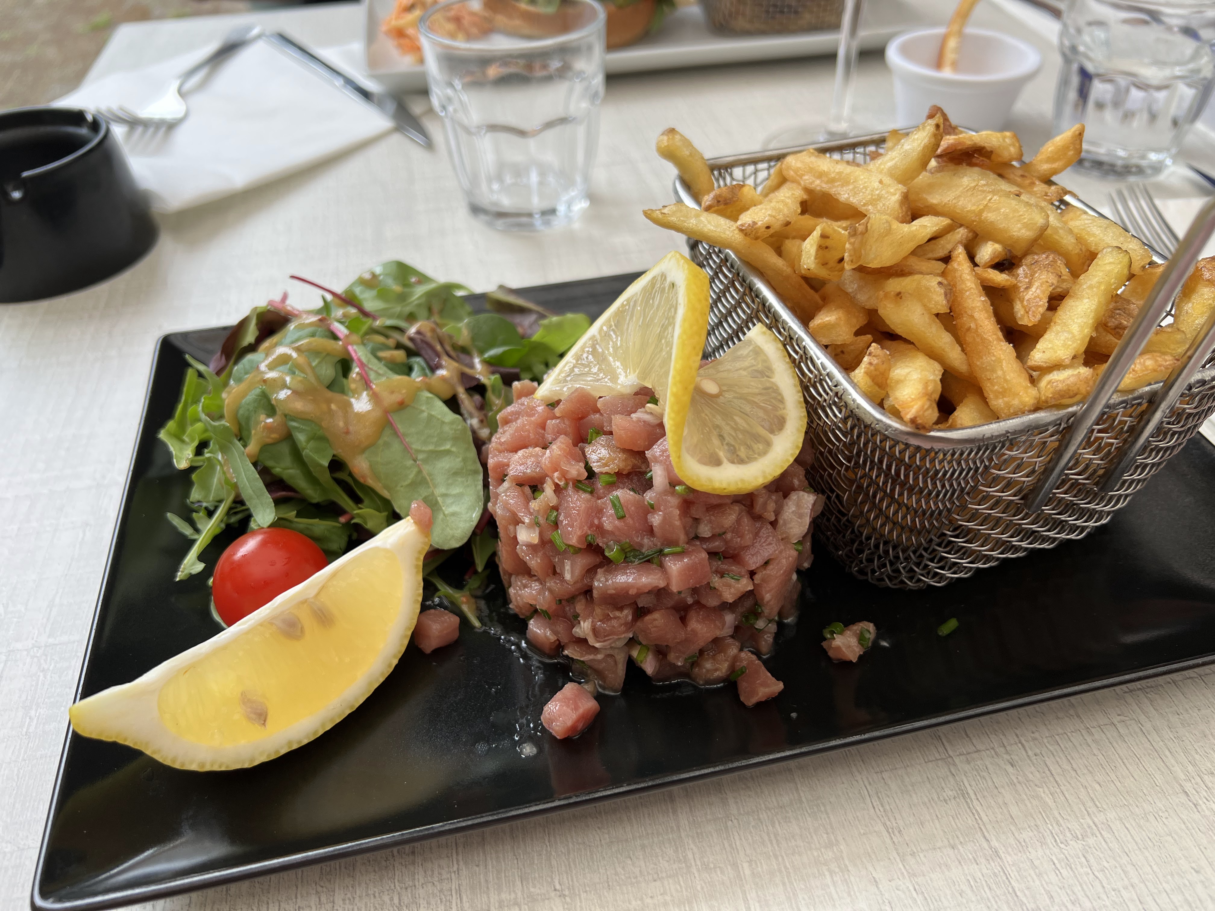 Nous avons bien mangé dans ce restaurant. Les plats sont bons autant burger, tartare que le confit de canard. Ils sont fait maison ainsi que les frites. De bonne portions. Une jolie terrasse. Les points négatifs seraient la sauces payantes à 1,50€ et qui n’est même pas inclut dans le burger (uniquement compris dans les viande et 1 seule). Le menu enfant ne comporte pas de boisson pour un prix excessif de 10,90€ (uniquement le dessert). Peut-être le meilleure restaurant à faire après avoir visité la dune du pyla.