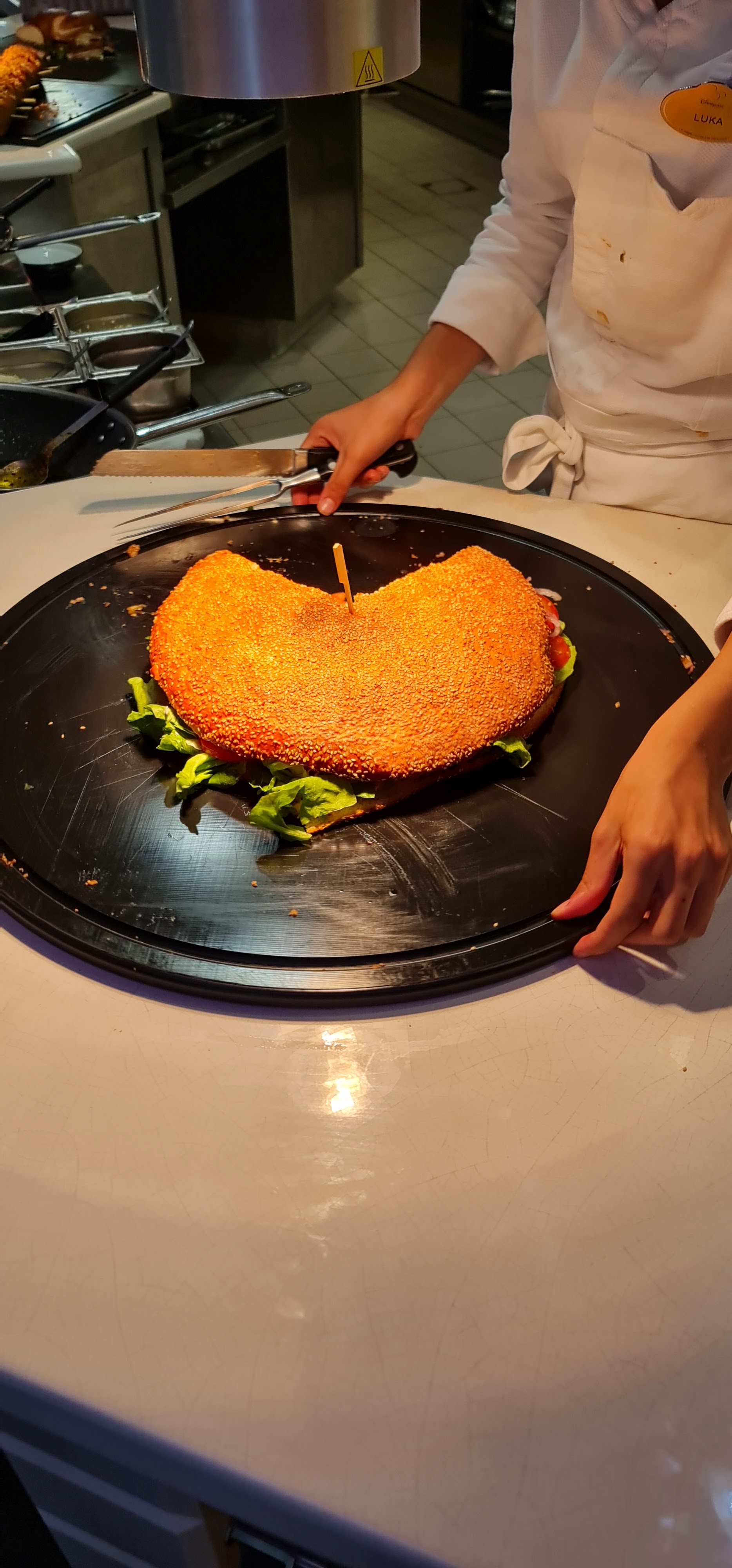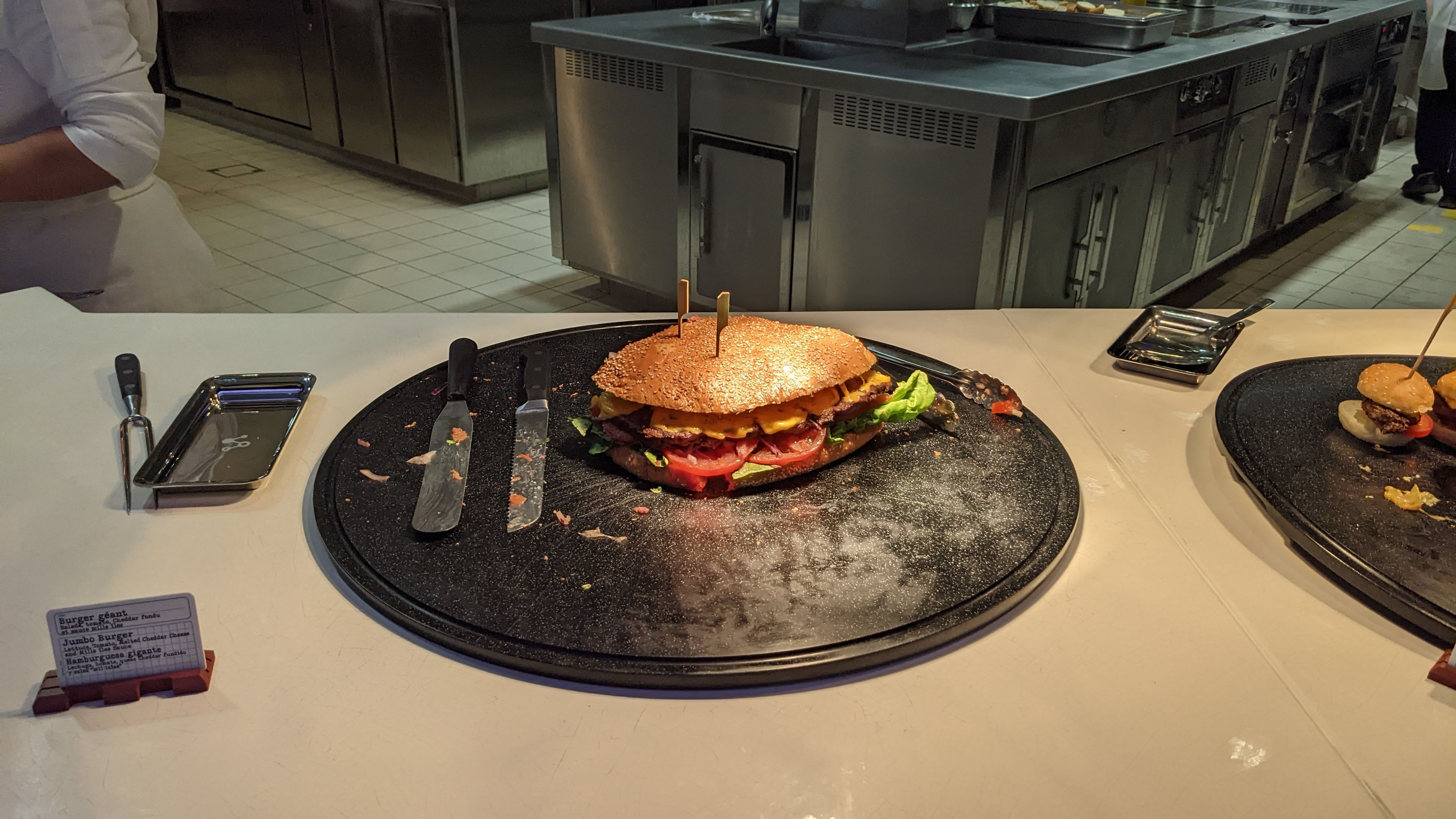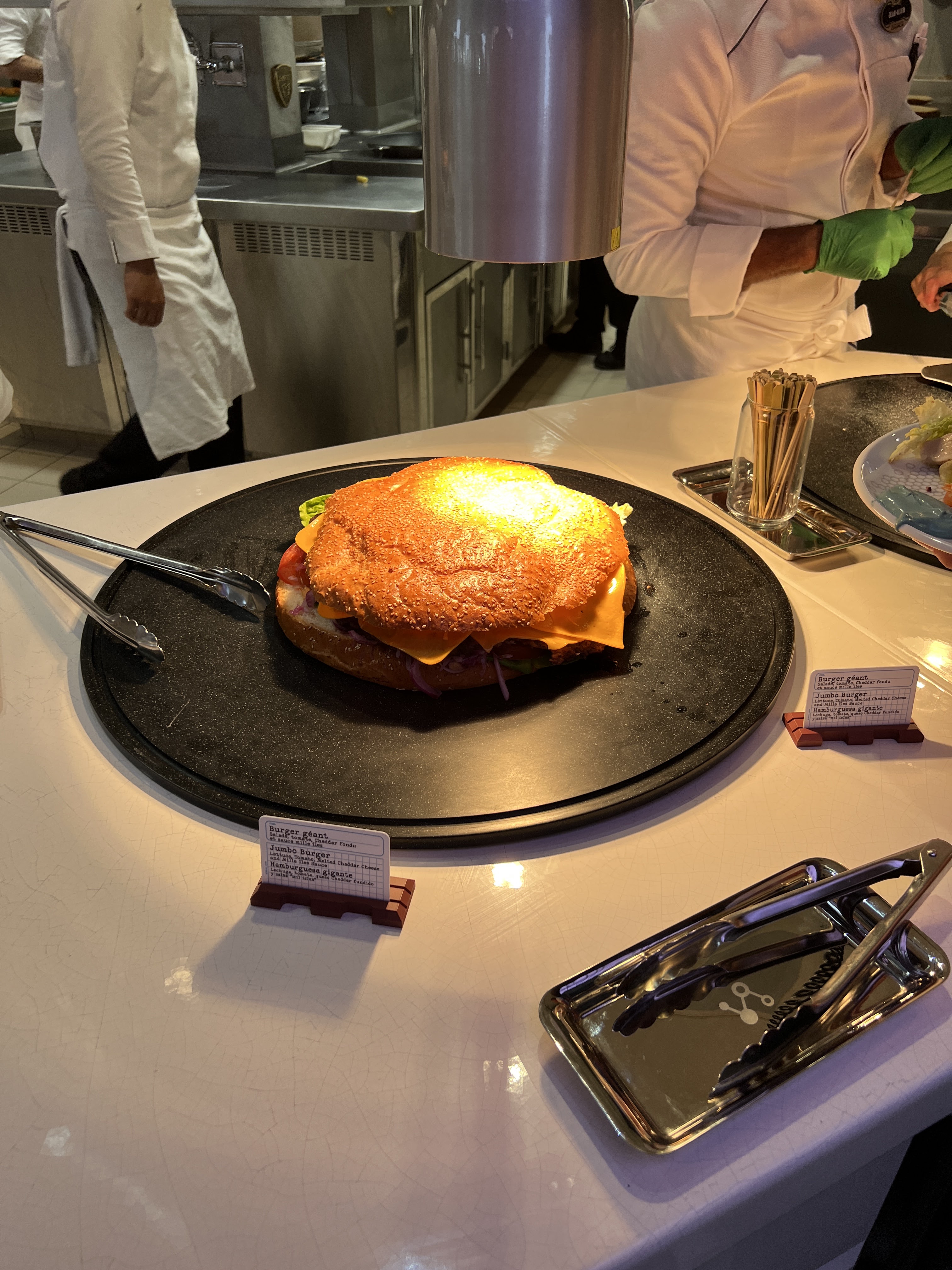 Première fois dans ce restaurant buffet de Disneyland Paris. Les decors sont vraiment sympa dès l'entrée, le plus attendu en allant dans ce restaurant ce sont les portions de nourriture soit géante, soit minuscule. Les enfants ont adoré et nous aussi. Mention spéciale pour le méga burger qui était très bon.