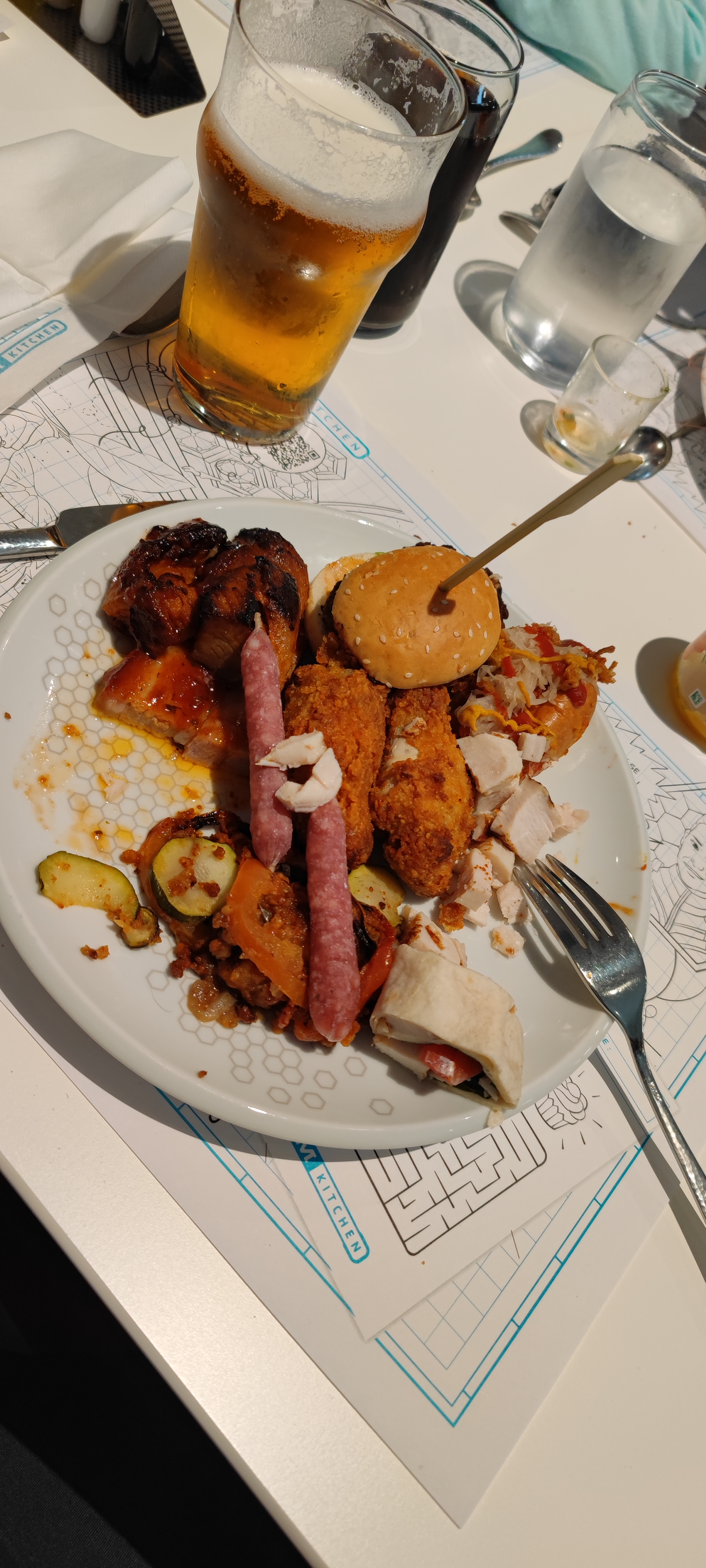 Je vais commencer par le prix ! 140 € euro pour moi, Mme et le petit. Personnellement, j'ai adoré, les hamburgers géants, les hot-dogs, les mini-dogs, les ailes de poulet, les corndogs et le porc BBQ que j'ai mangés autant que je pouvais 🤣 La Mme et l'enfant ne sont pas tellement des morceaux et c'est fini, pour l'argent, cela n'en valait tout simplement pas la peine. S'il s'agissait d'un restaurant ordinaire avec des prix raisonnables, cela aurait eu cinq étoiles de ma part car le personnel était sympathique, l'atmosphère était agréable.