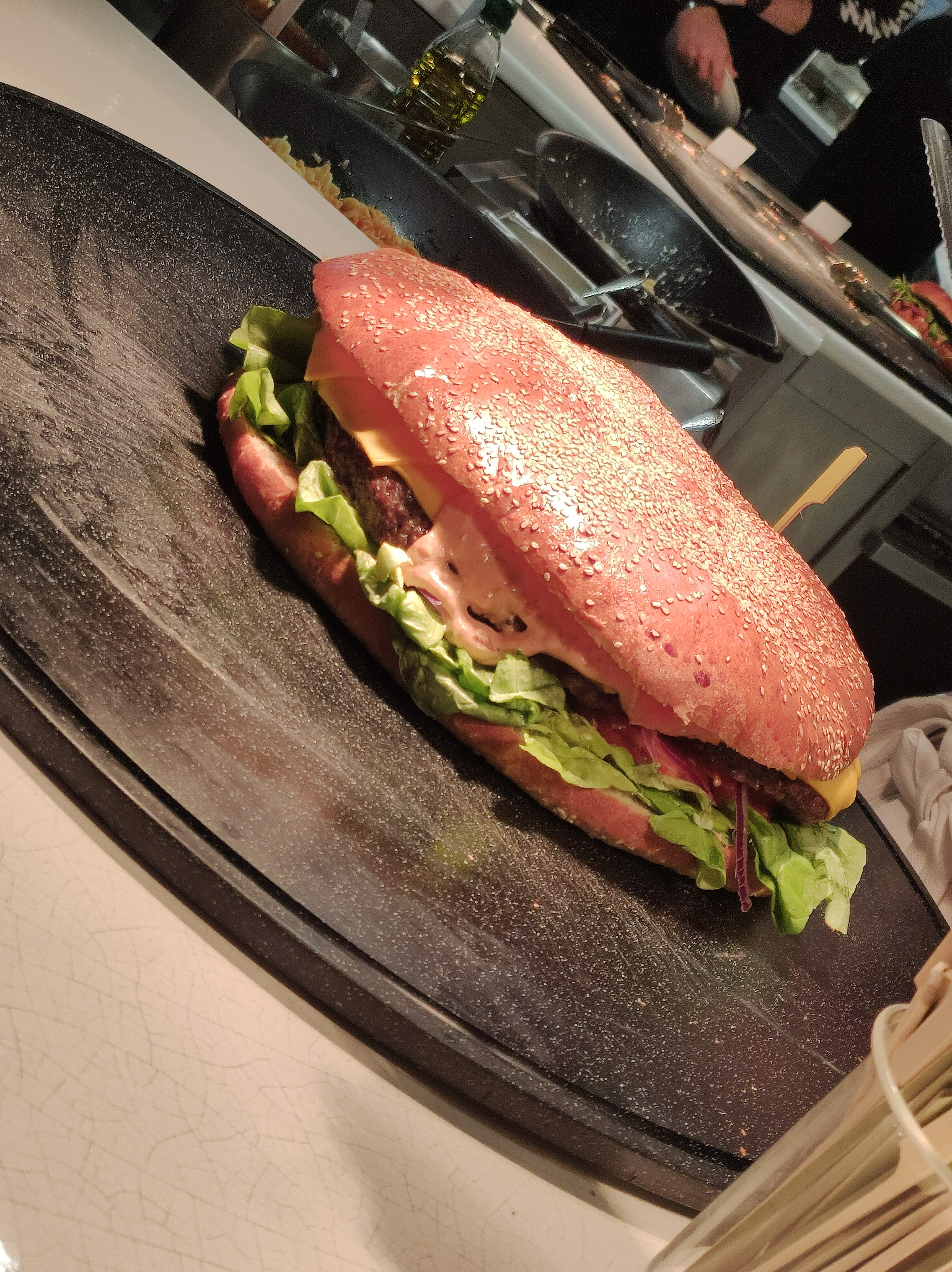 J'ai vraiment aimé la nourriture ici, elle était assez variée et très différente de l'habituelle. Le burger est délicieux, différents types de plats, différents fromages, salades, friandises et j'ai essayé un peu de tout et tout était très savoureux. J'ai juste trouvé le service un peu bâclé et la table était très sale avec des restes de nourriture. Aucun membre du personnel n'a fait l'effort de nettoyer quoi que ce soit.