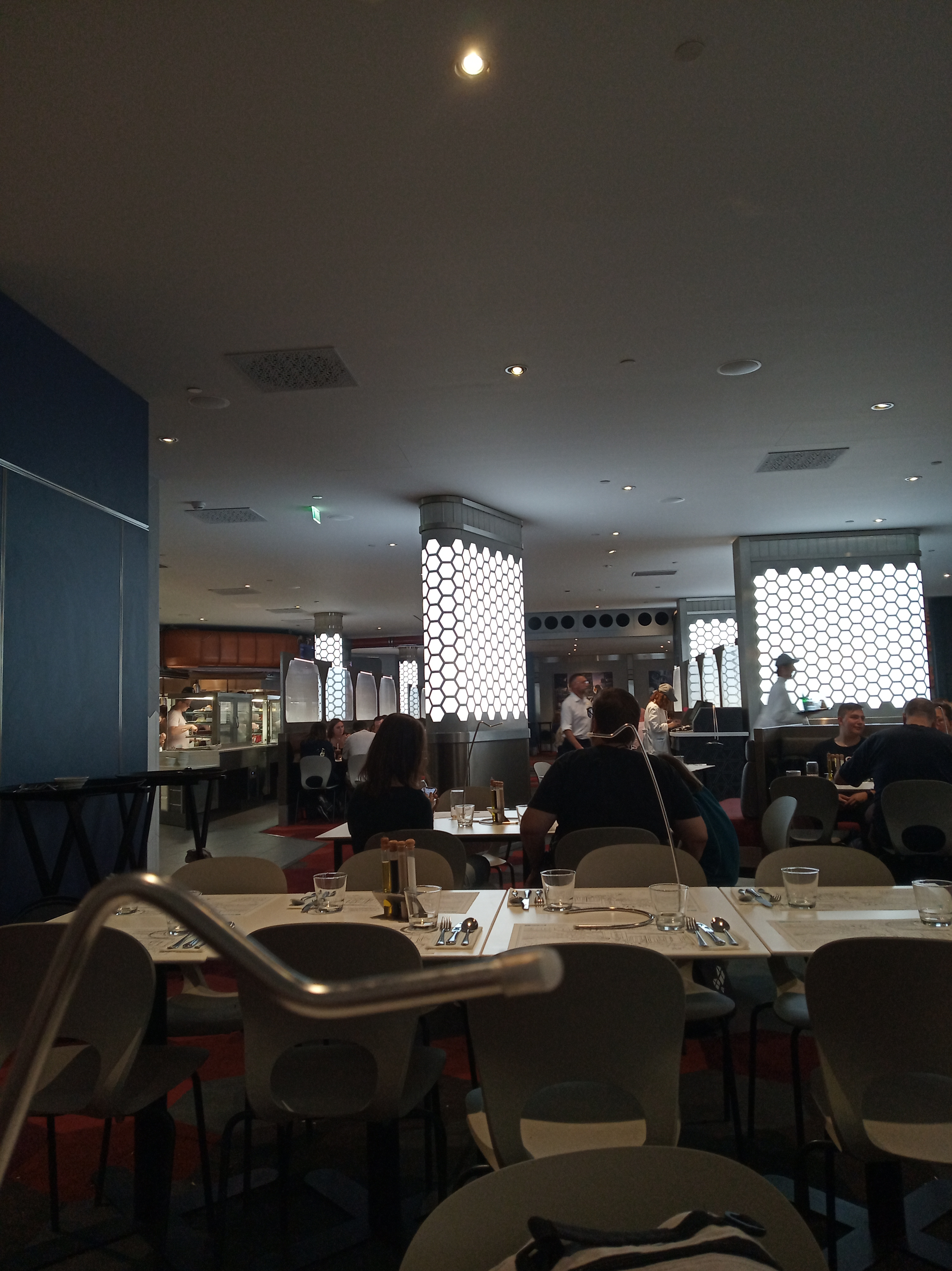 Nous avons trouvé ce restaurant différent des autres dans tous les domaines. Tout d’abord dans la déco , très moderne et futuriste. Le buffet à volonté avec des mini plats ( mini burgers , mini hot-dog) les enfants ont adoré !! Boissons servit dans des fioles de chimi ( original ) et des plats plus grands ( haricots géants, Burger géants) .. c’est le thème du restaurant. Le serveur a été à l’écoute et souriant. Et enfin, de très grands toilettes où on a pas à faire la queue contrairement aux autres établissements..nous ne connaissions pas ce restaurant, ce fut une bonne surprise !