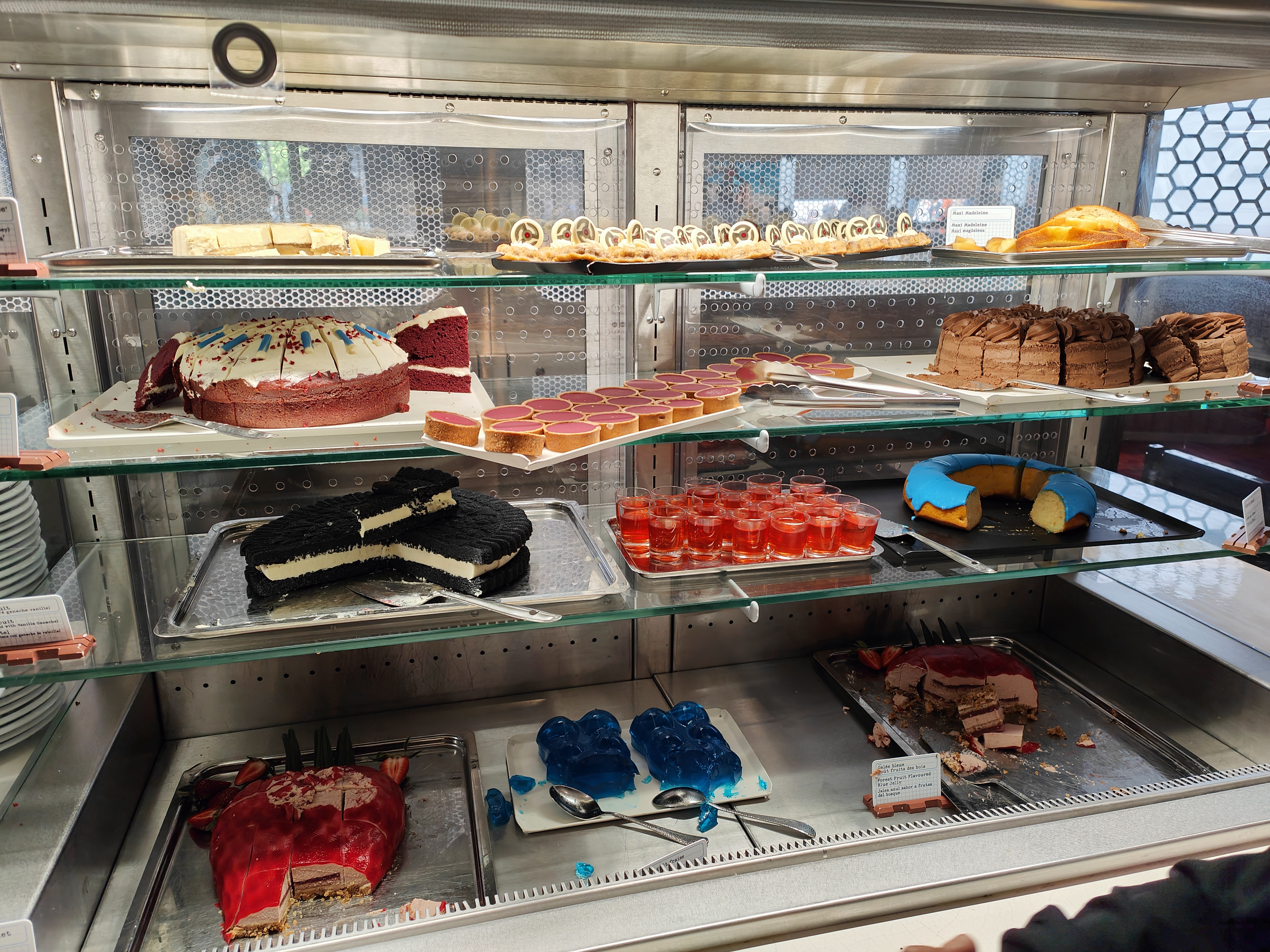 Un buffet qui fait parti de mon top 10 des restaurants à Disneyland Paris. L'immersion est le point fort de ce restaurant. Divers aliments présentés de façon géante ou miniature ( bretzel, burger, hot dog ..) , de couleur différente ( chardonnay bleu, mayonnaise bleue ... Gelée etc)