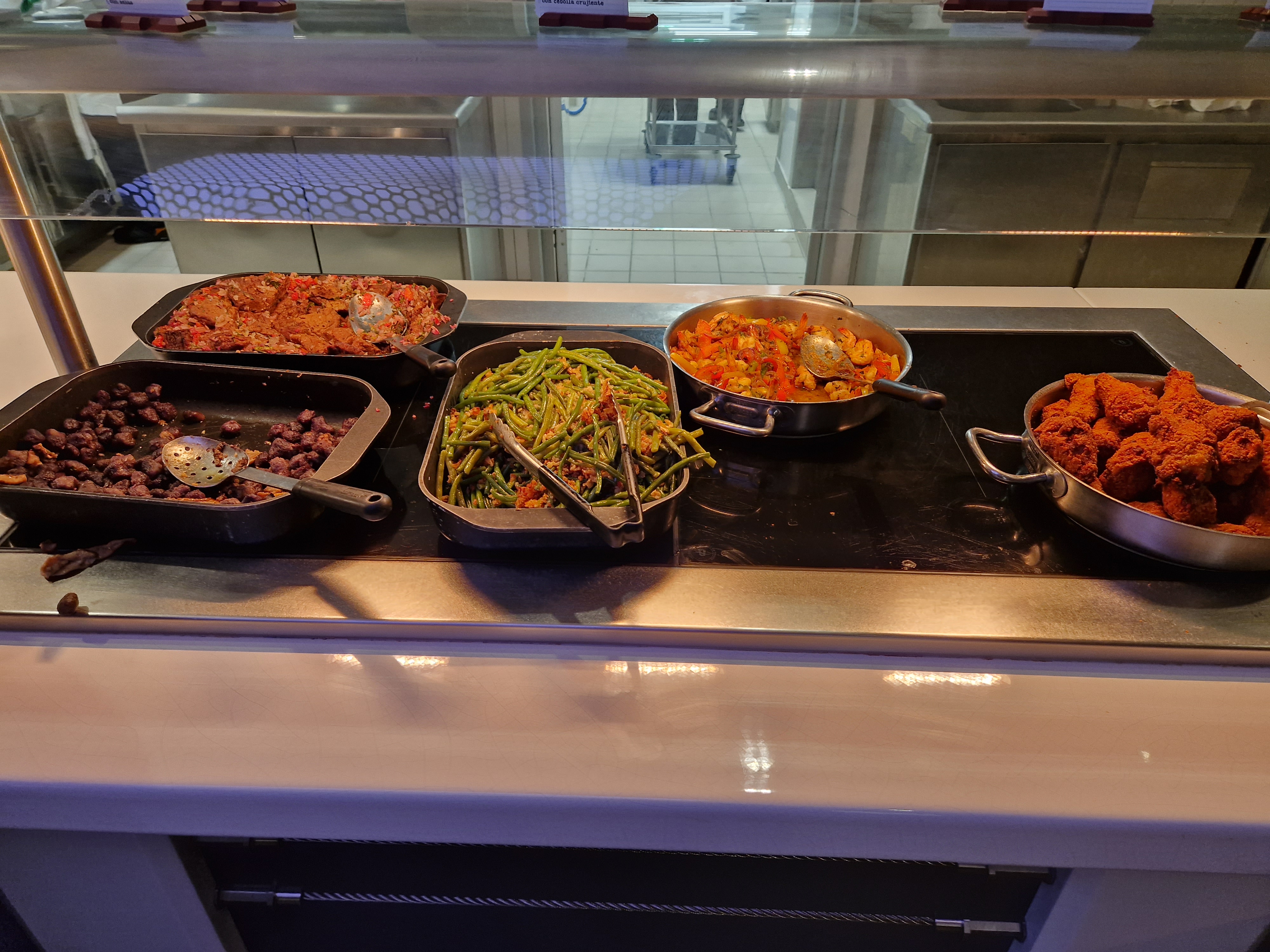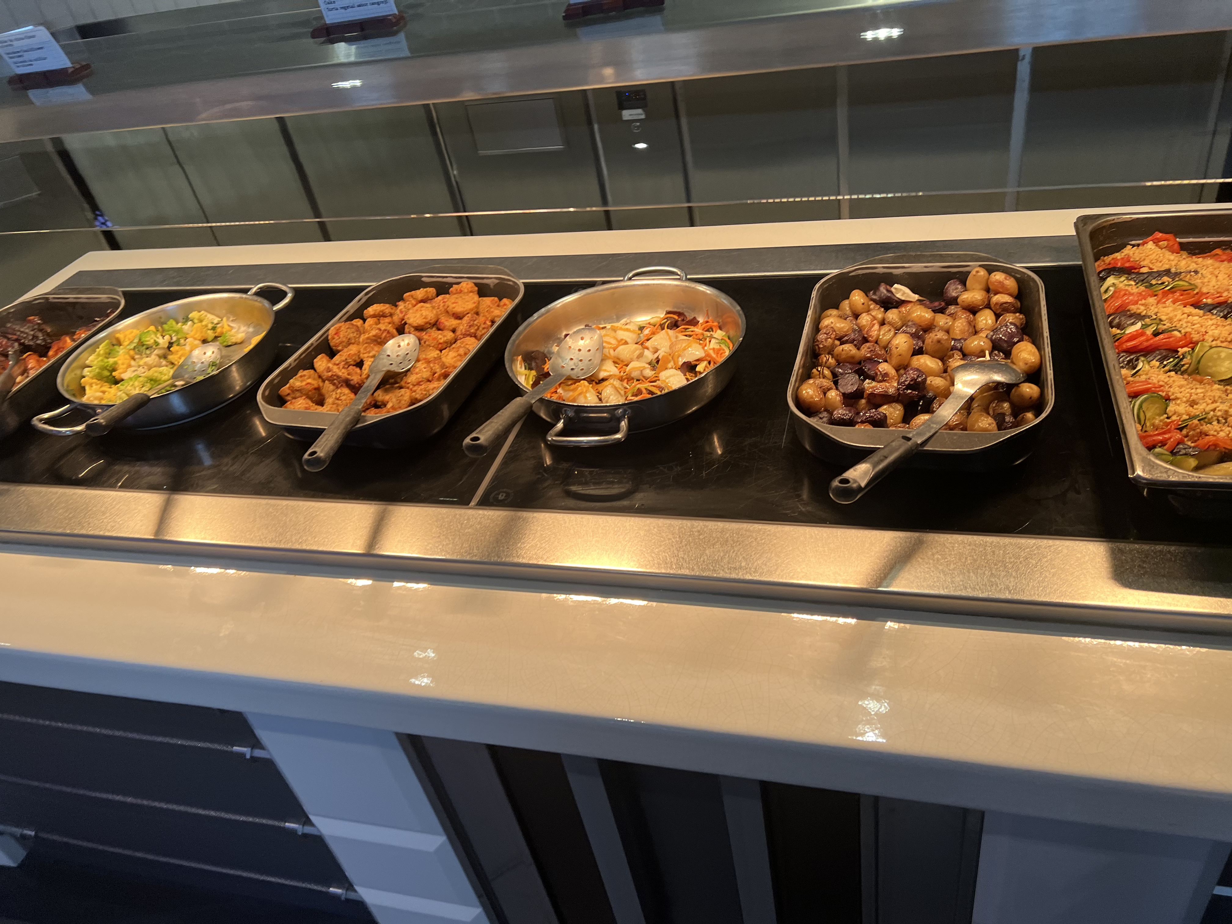 Grande variété de plats, il y avait un peu de tout (viande, poisson, vengan, hamburgers, hot-dogs et plein de desserts). Le service était rapide et n'a pas eu à attendre la table (sur réservation).
