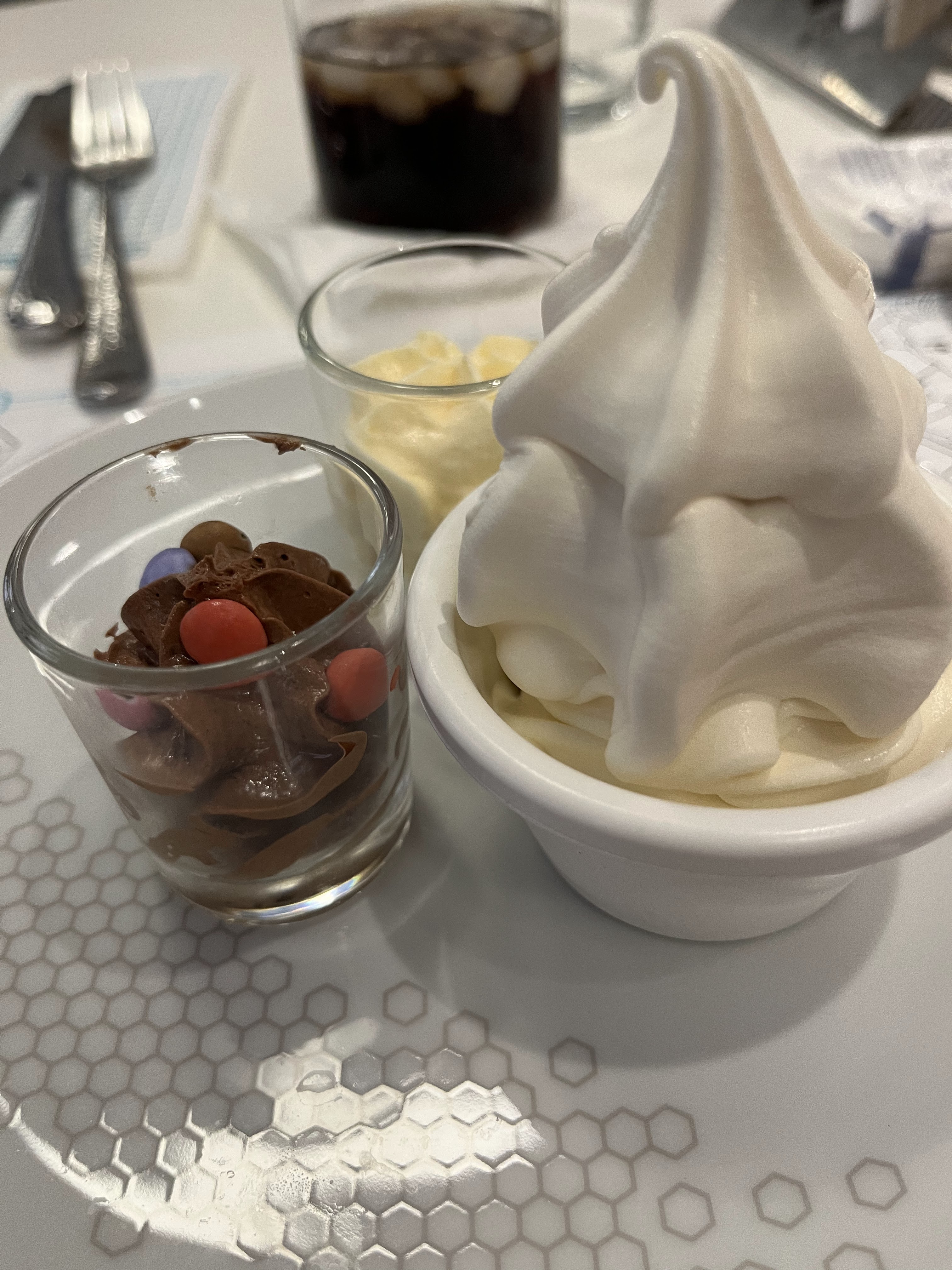 On est allé pour un dîner tôt afin de pouvoir profiter du spectacle nocturne de Drones. Le concept est super sympa, les enfants s’amusent beaucoup avec les plats miniature (hot dog miniature, burger miniature et autres), ainsi que les plats géants comme le burger ou hot dog géant. Les serveurs ont une blouse blanche pour paraître des scientifiques, les boissons sont servis dans des flacons de laboratoire. On n’a pas trop aimé notre serveuse, cassante et malpolie, peut-être trop fatiguée, peut-être elle n’aime pas son travail, aucune idée. Et les toilettes sont vraiment trop sales, dommage.