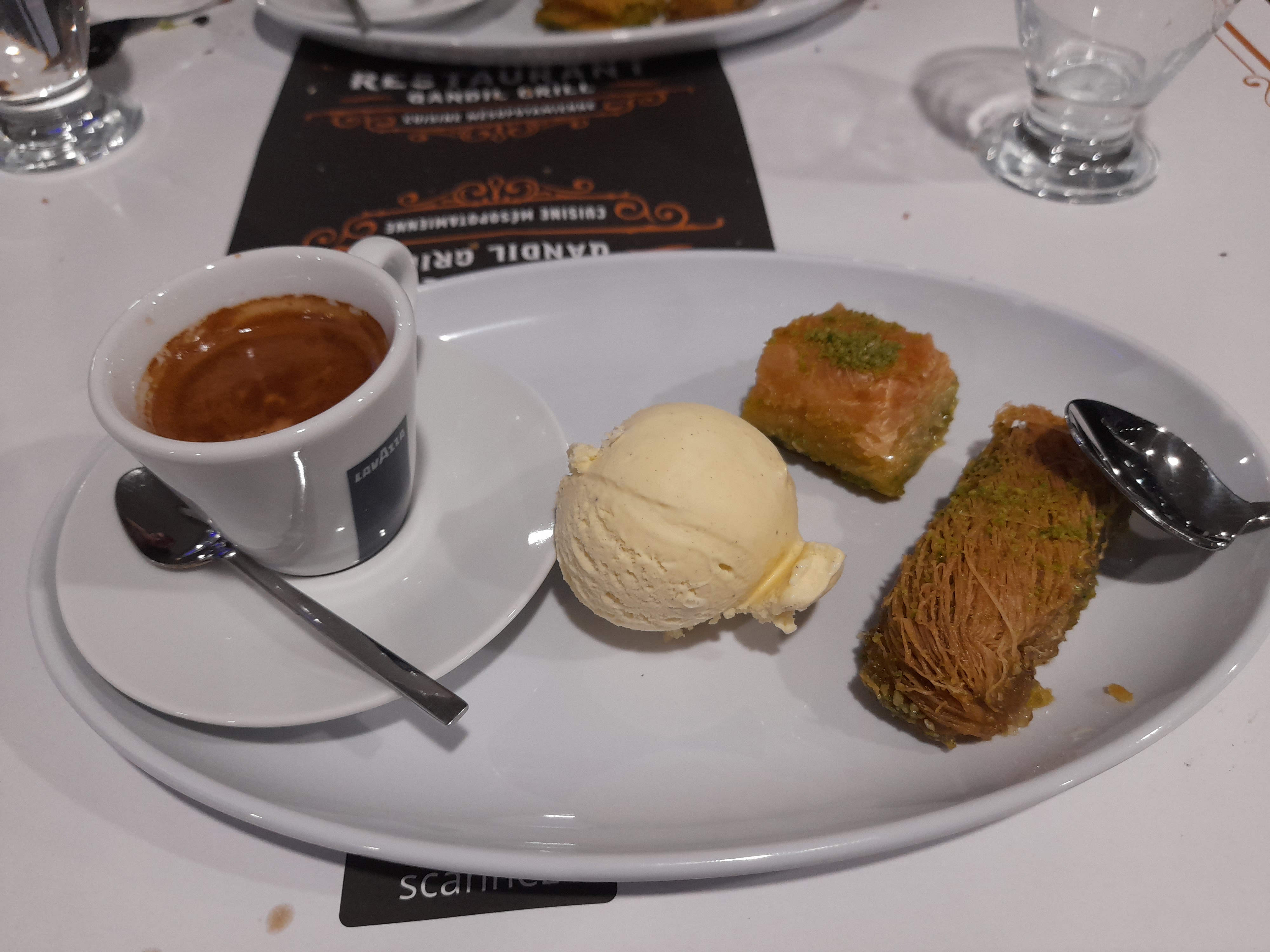 Agréable surprise le restaurant est magnifique et propre l'accueil chaleureux les plats excellent et copieux le kunefe un délice pas trop sucré. Une très belle terrasse à tester aux beaux jours