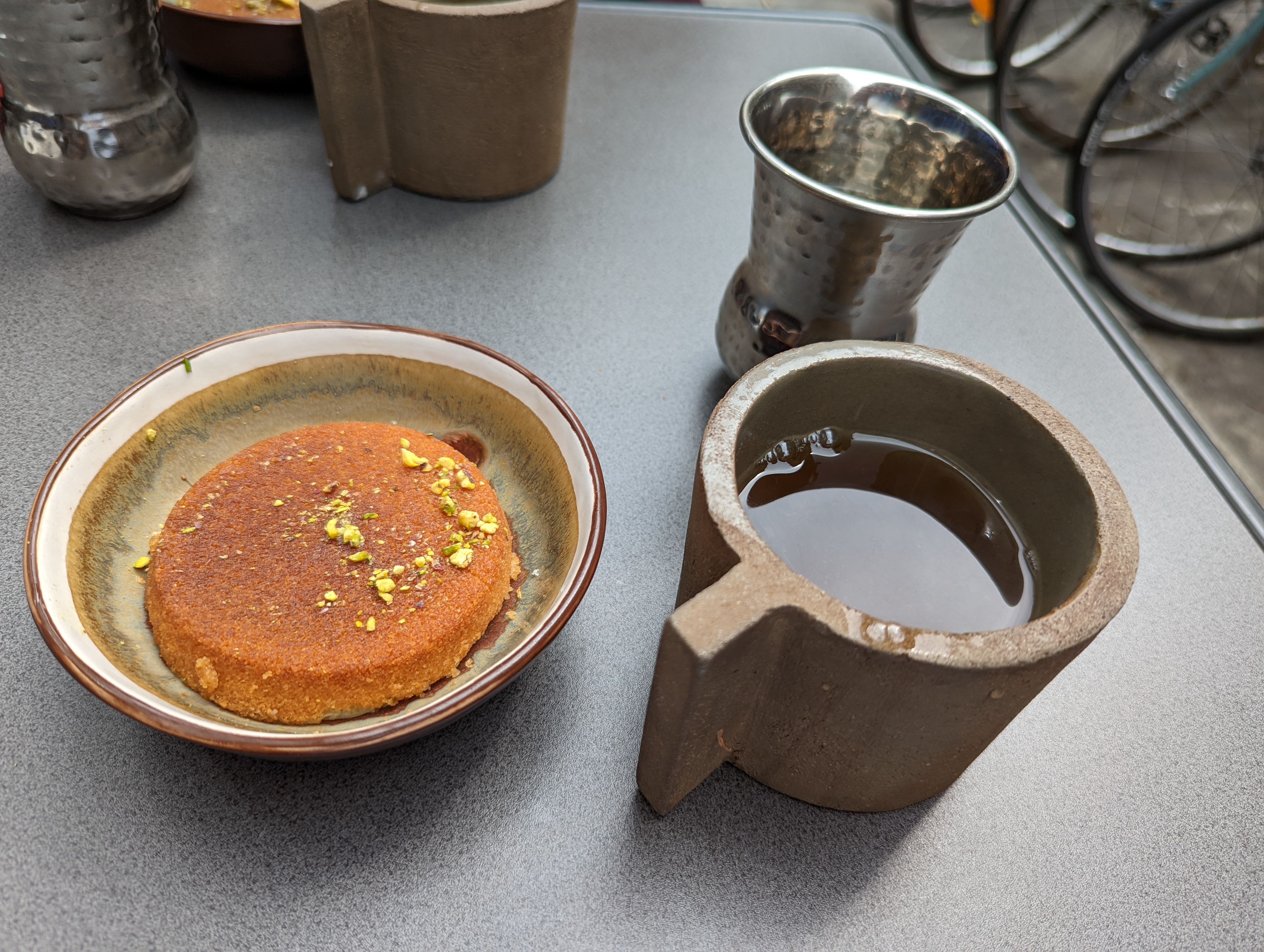 Quel régal que cet assortiment de saveurs variées et vraies que nous avons eu la chance de déguster ce dimanche ! Le lieu est un peu exigu à l'entrée, et c'est un peu mal commode car tout le monde se croise à cet endroit stratégique où se trouve tout l'assortiment des mets proposés façon self-service dans des saladiers, des bols, sur des plateaux. On paye une formule et ensuite chacun se sert et se ressert comme il le veut. Une boisson chaude et une boisson froide sont comprises, je suggérerais de demander aux clients quand ils souhaitent consommer chacune d'elles, car il me semble vraiment que la boisson chaude accompagnerait mieux les desserts, or quand on arrive à ce point du repas la boisson chaude est... froide 🙂 Idem, il serait peut être judicieux de signaler plus clairement dans les pâtés / friands / fatayers et autres boulettes lesquels contiennent de la viande ou pas, je me suis laissée avoir et ai demandé confirmation au serveur avant de manger, bien m'en a pris car je me serais laissée 'avoir'. Alors en toute honnêteté je n'ai pas tout apprécié, mais je ne le mets pas du tout sur le compte des talents du cuisiner / de la cuisinière, simplement sur celui de divergences de goûts: avec une telle variété, il semble difficile d'être également satisfait de tout. Les serveurs ont été attentionnés et pleins d'humour, ce qui ne gâche rien 😁 Je reviendrai avec plaisir.