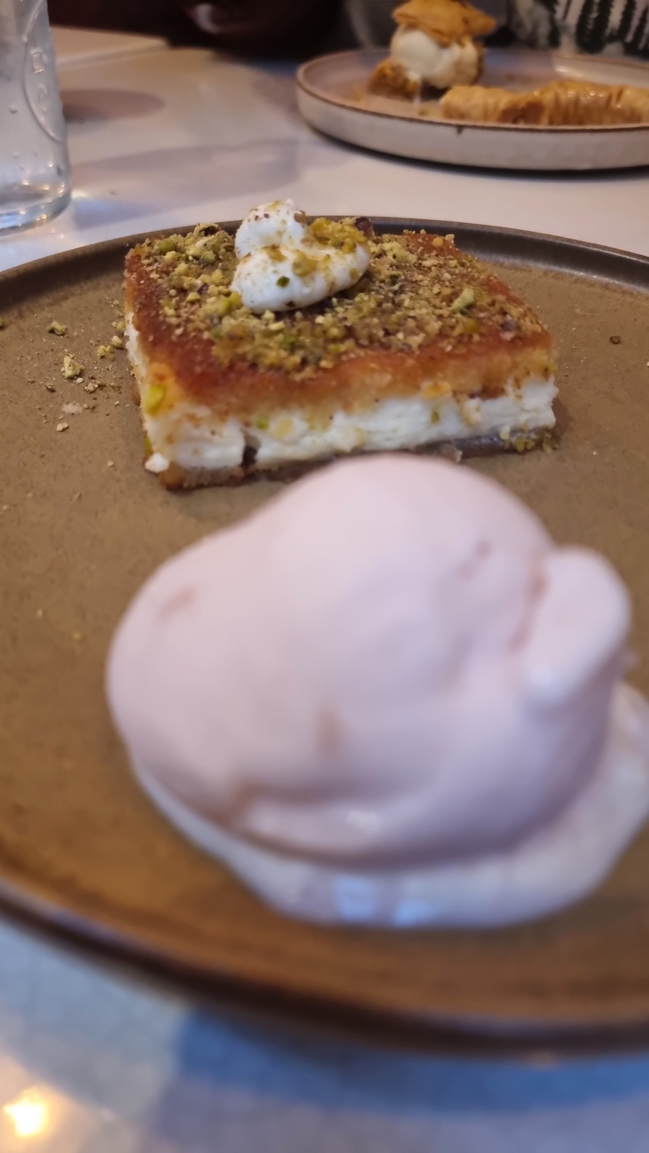 Excellent 👌🏻 ! A 4 nous avons pris 4 menus Qasti pour déguster 12 mezze différents en « pica pica » : difficile de dire ce que nous avons préféré entre les sambousseks, makkaneks, soujouks ou le poulpe laqué avec une sauce à la grenade, magnifique ! 😋 En dessert assortiment égaleyavec notamment un mouhalabieh « évidemment » et une glace achta soyeuse… ! 💫 Essayez d’avoir la petite table de 4 au fond, plus tranquille