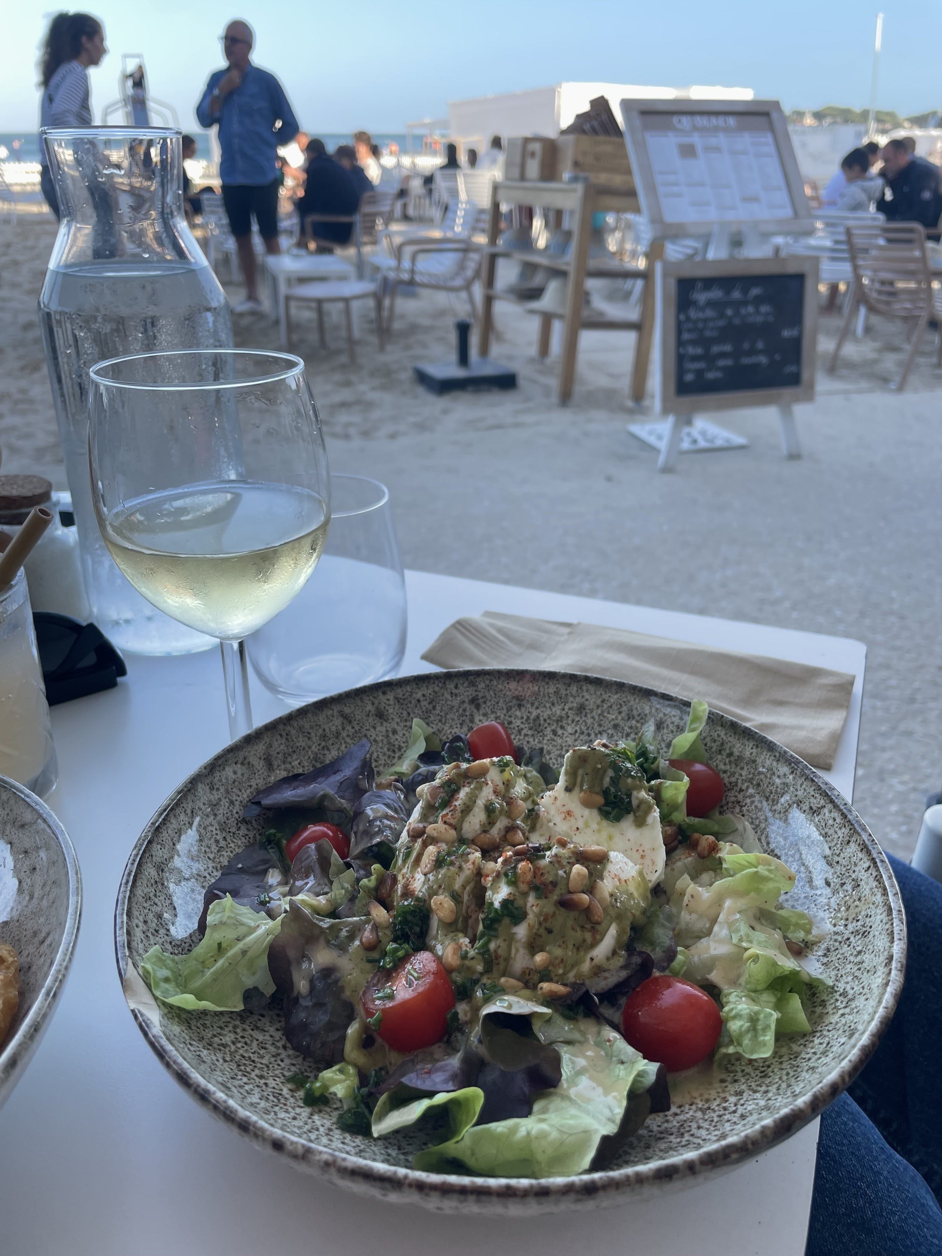 Sur la plage, en mode vacanciers, des plats locaux de poissons, du bon vin, un super service... Ca c'est les vacances