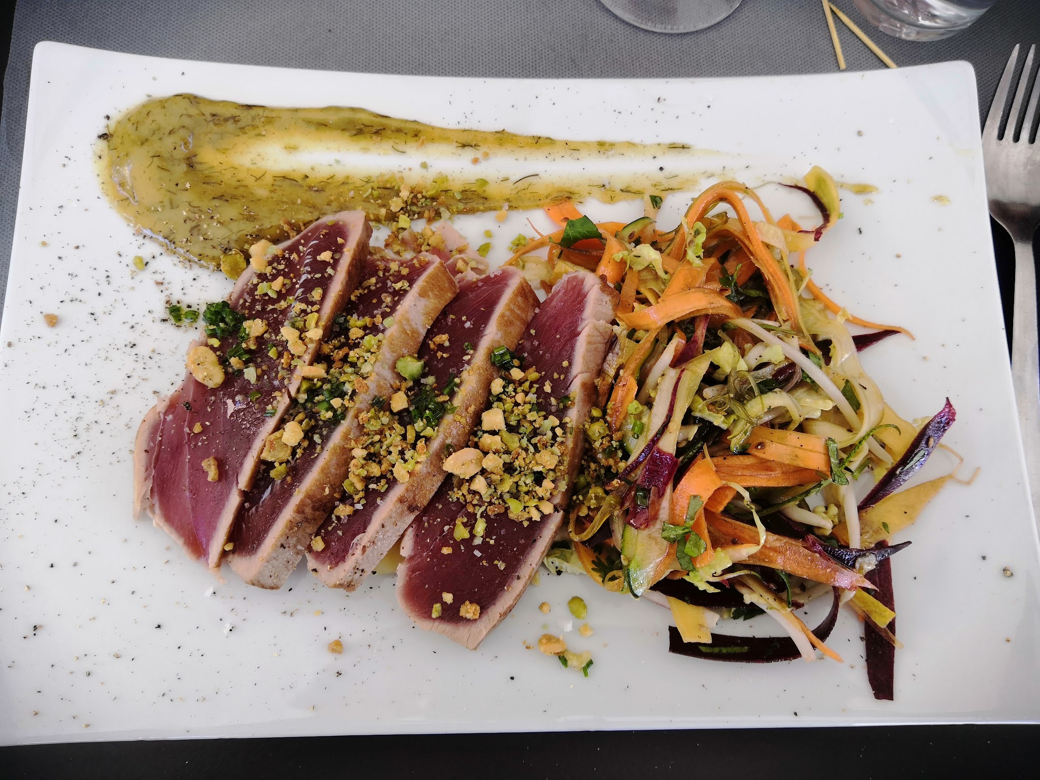 En un seul mot : Venez découvrir ce restaurant ! Une belle vue sur la plage du Pouliguen, nous avons pris le Tataki de Thon: c'était excellent pour les papilles. Service rapide 😊 On recommande vivement cette adresse.