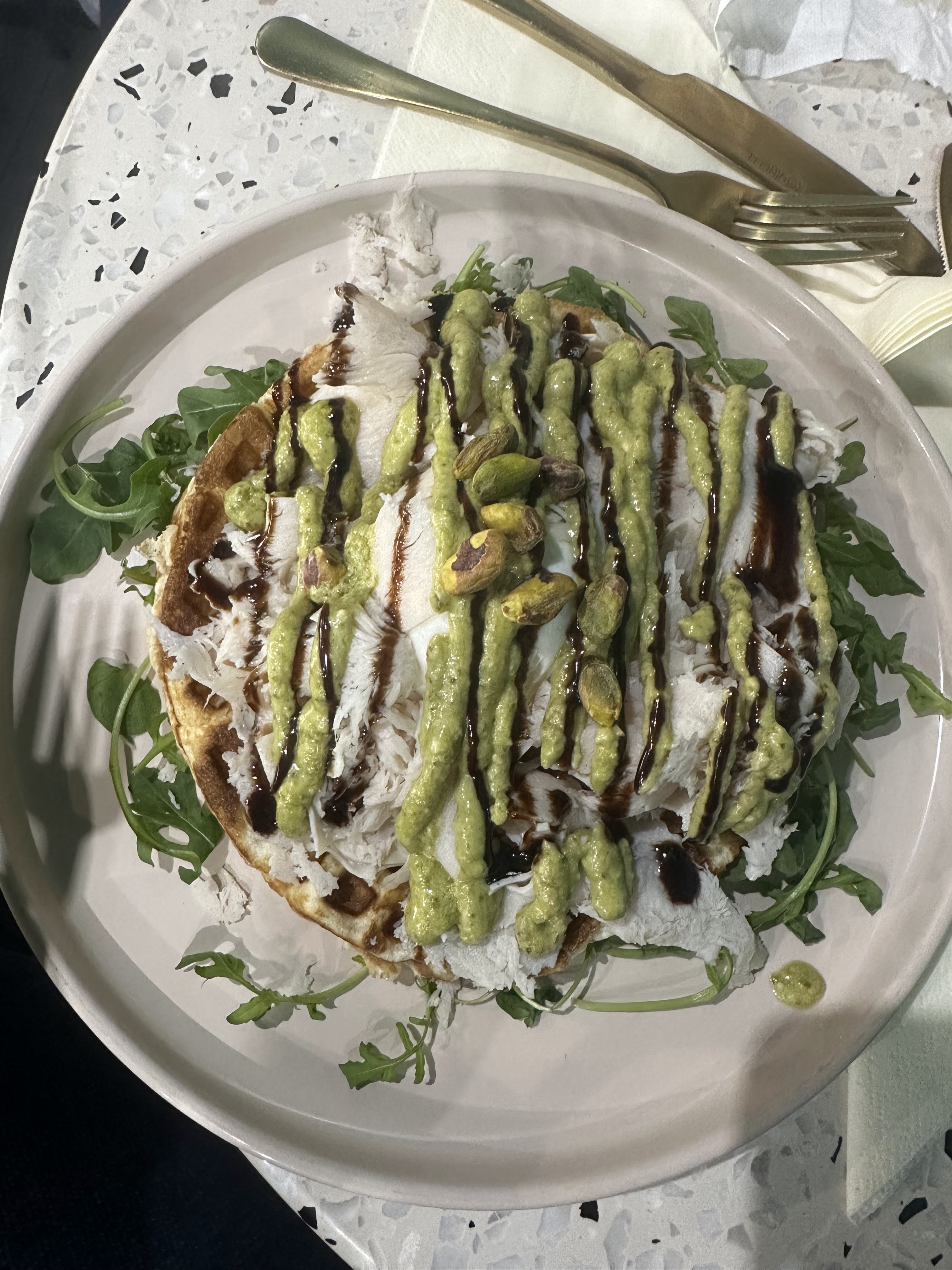 Super découverte, nous nous sommes régalés avec ce brunch ! Beaucoup de choix de boissons, les gaufres sont moelleuses. J'ai adoré les saveurs originales de la végétarienne au caviar d'aubergine ! Côté sucré c'est très gourmand également 🤤