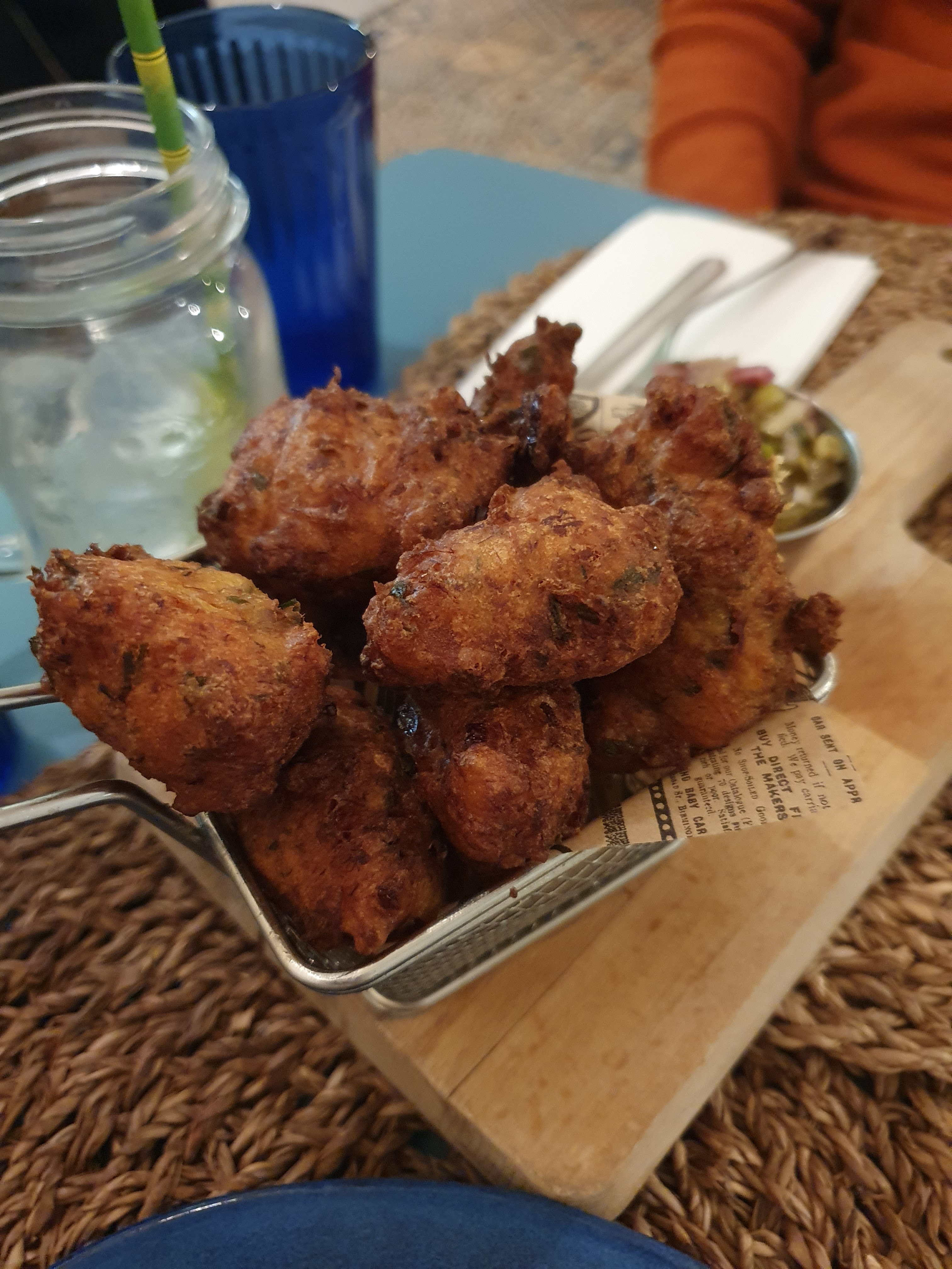 Un repas tellement fabuleux. Ma femme et moi avons partagé 4 plats et ils ne cessaient de s'améliorer. 1. Accras de morue, sauce créole 7€ 2. Maki croustillant saumon, fromage frais avocat - 13 euros 3. Camembert ENTIER rôti au miel, croûtons - 12 euros 4. Tartare de dorade à la mangue, frites 20€ Les prix étaient très raisonnables pour la nourriture, le service et l'ambiance exceptionnels. Vérifiez certainement cet endroit si vous êtes dans la région. Vous ne serez pas déçu.