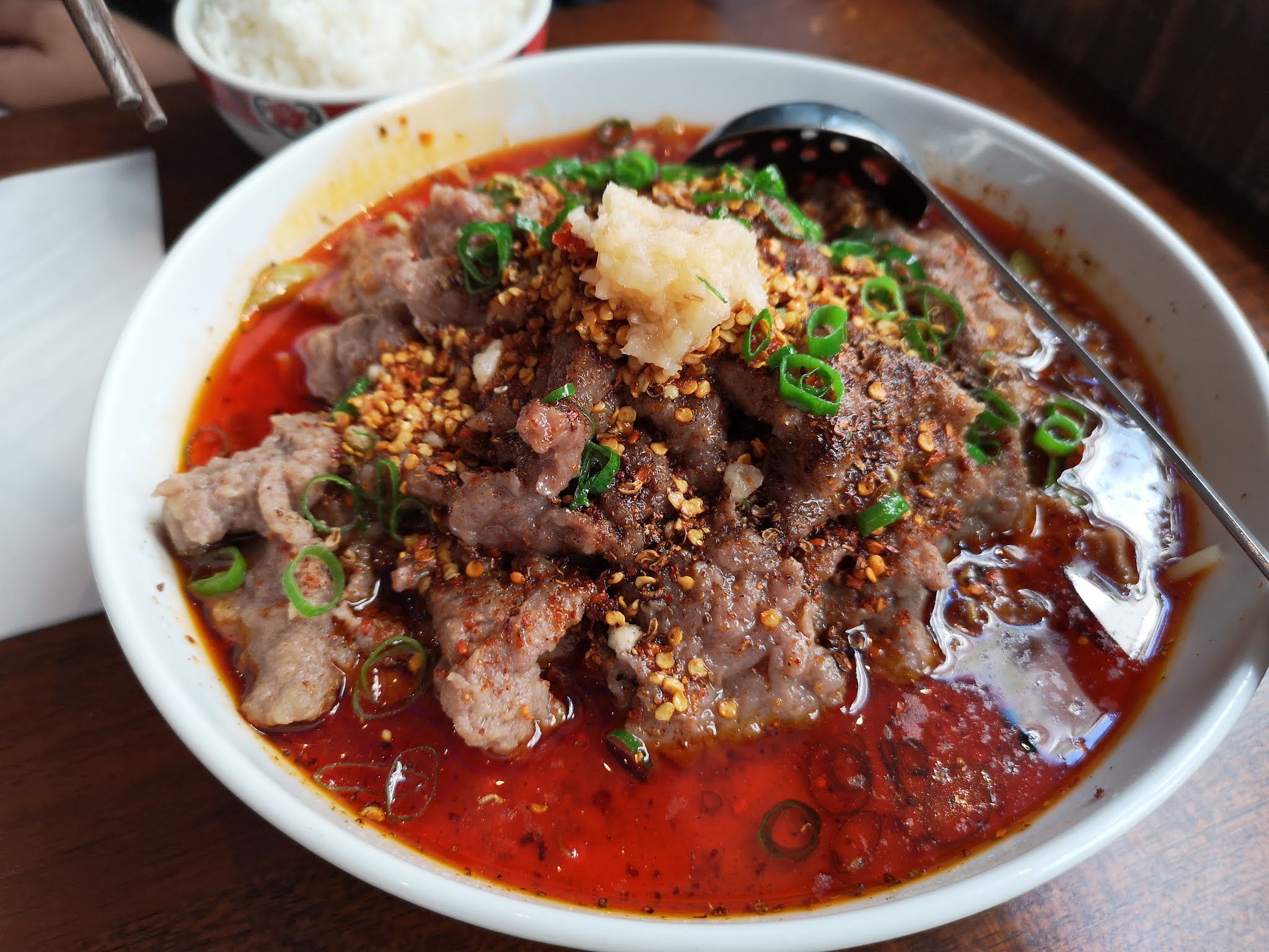 Restaurant super sympa, le staff est super gentil, les plats son super bons. Le patron et les serveurs sont très gentils, et le riz est bien cuit. Le poisson bouilli, le bœuf bouilli et le Maoxuewang sont tous délicieux !