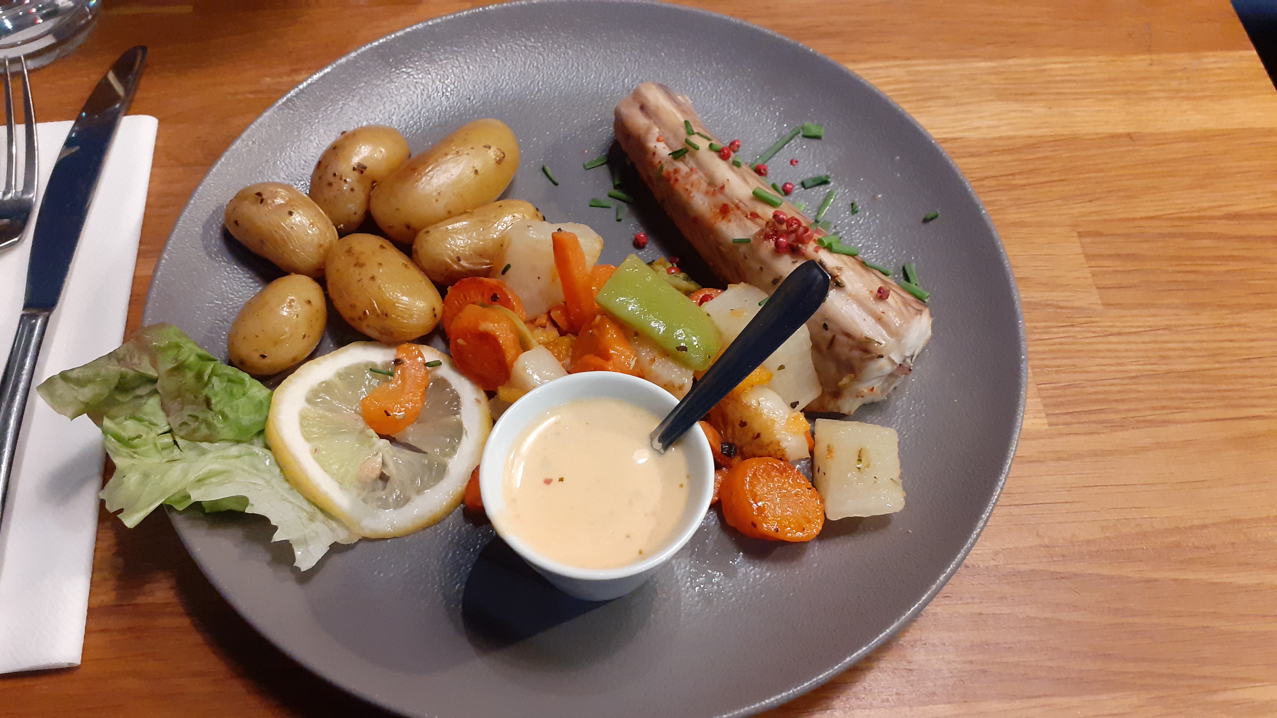 Accueil sympathique à part la serveuse qui n a aucune compassion. Je pense que nous n avions pas choisi le bon plat (marmite de légumes de saisons avec poisson du jour). Fade,trop cuit, trop de sauce. Un service beaucoup trop long et une note trop salée.
