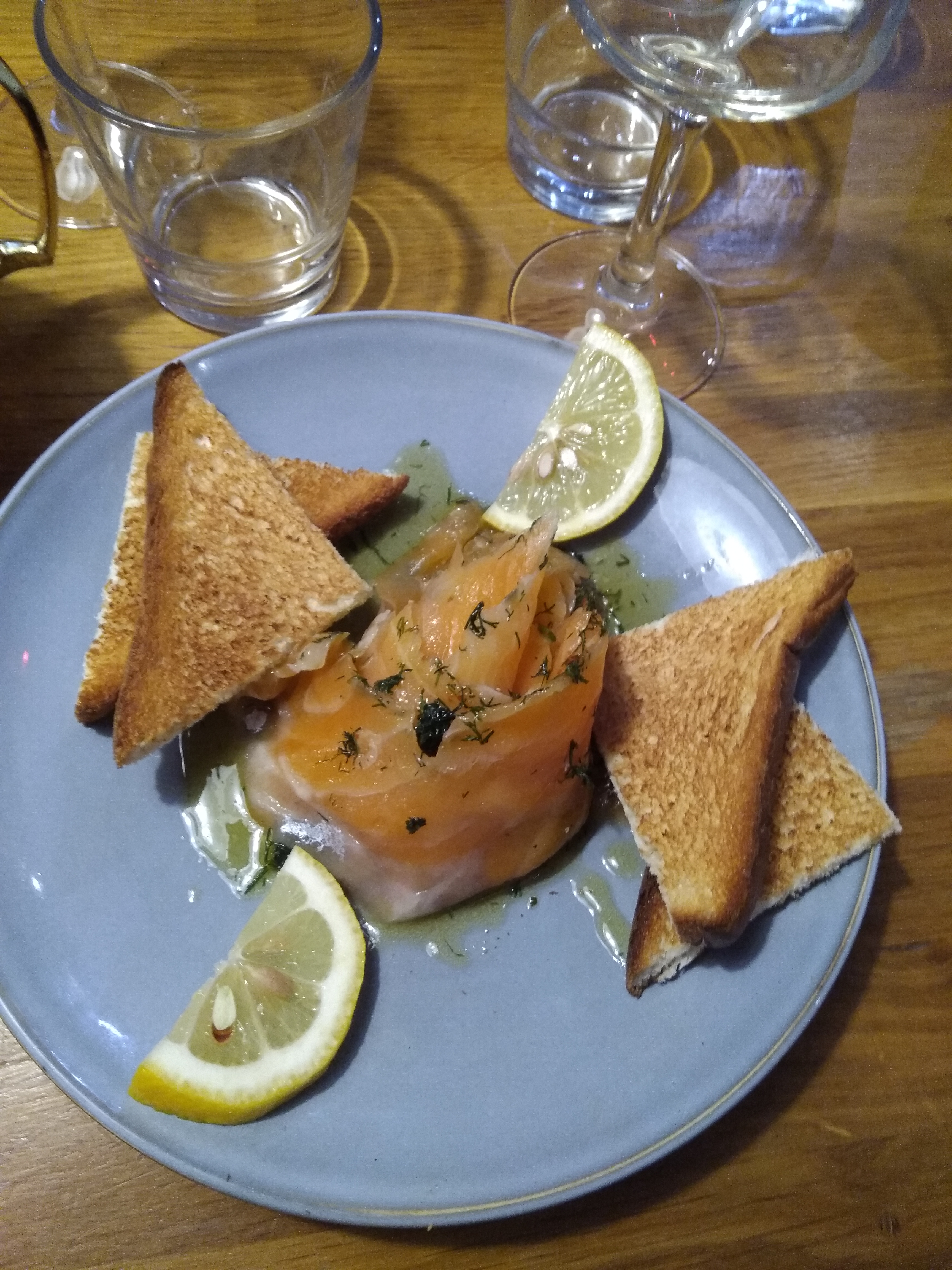 Le restaurant est sympa, la cuisine est plutôt bonne (saumon gravlax pas ouf mais le reste était bon) En revanche mettez une serveuse qui ne donne pas l’impression d’avoir envie de se pendre s’il vous plait. On avait de la peine pour elle. Enfin bon on a passé un moment agréable donc 4 ⭐️