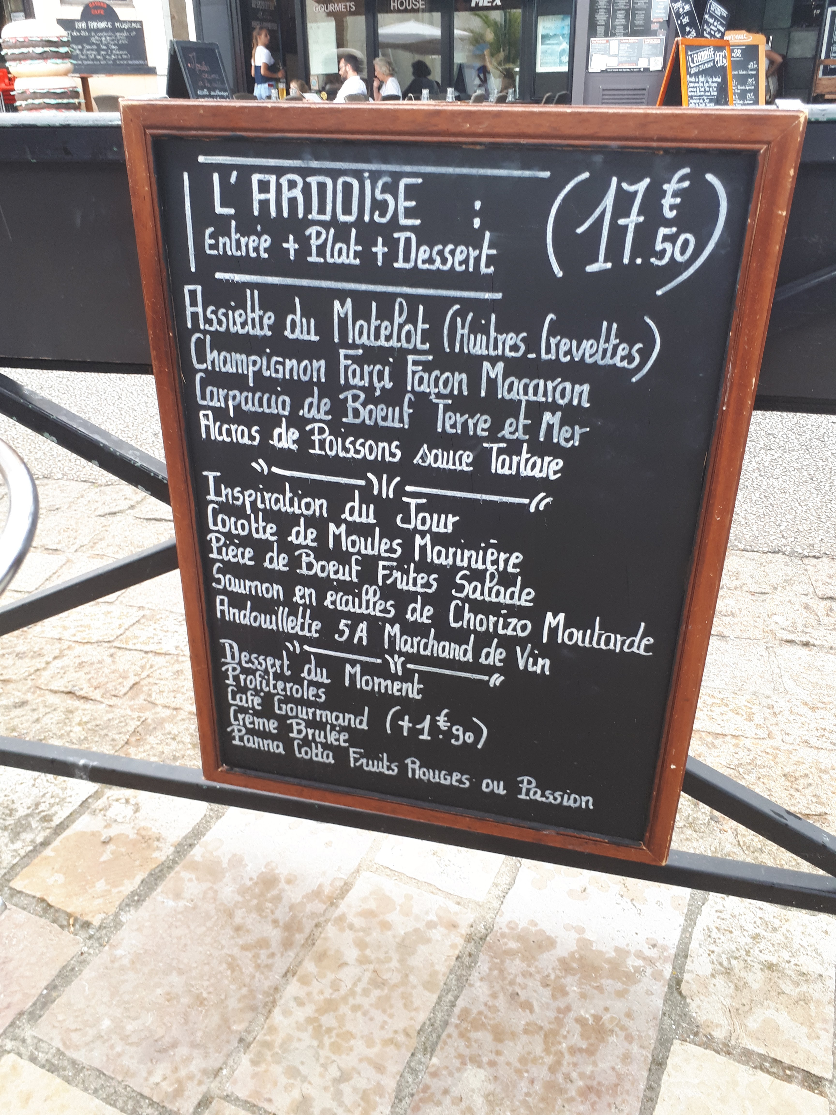 Ardoise du midi . Prix correct et mets originaux. Nous recommandons avec mon épouse et reviendrons.