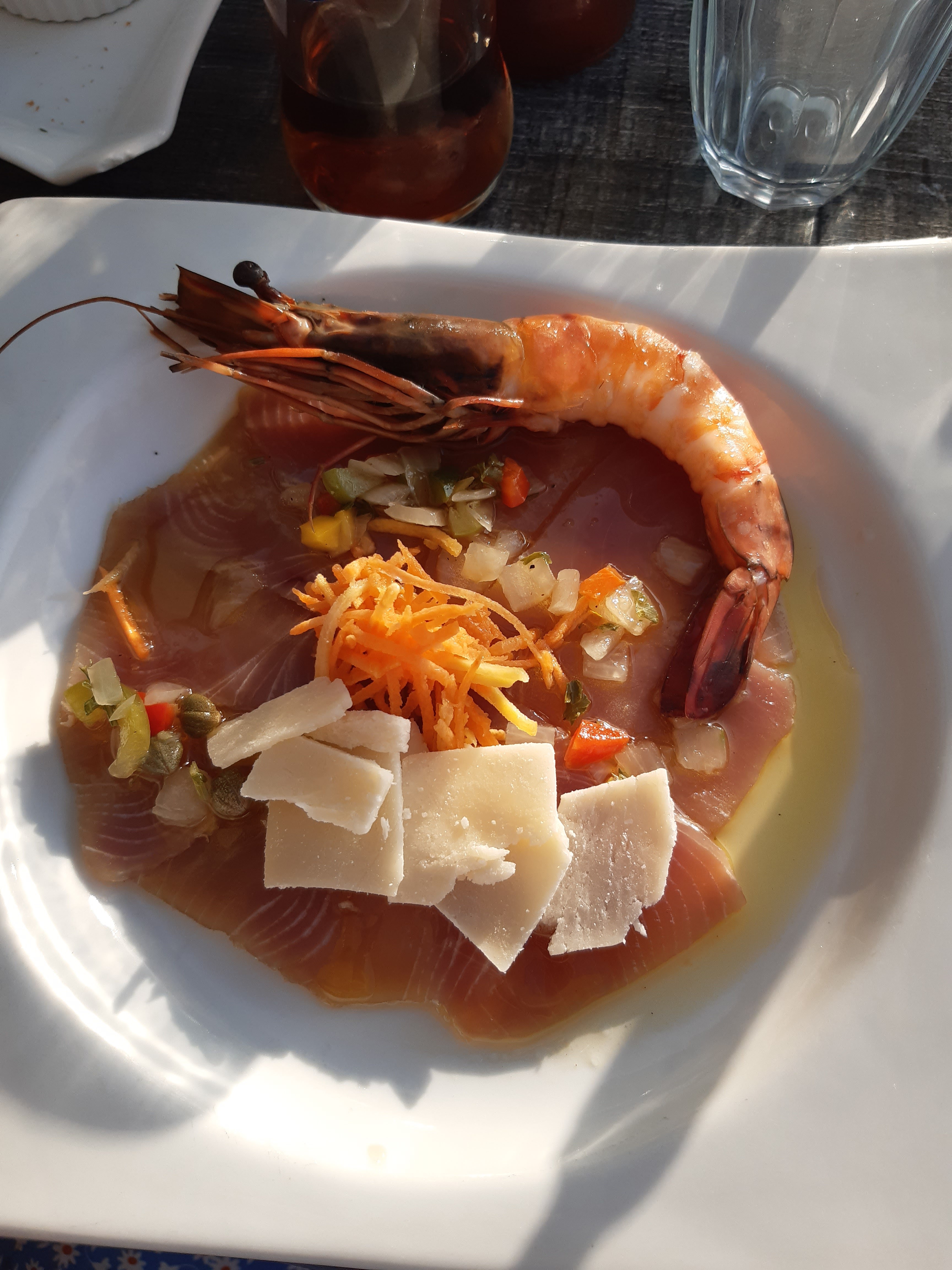 Personnel accueillant et souriant cadre sympa avec vu sur le coucher de soleil sur le port service rapide et bon plats fait avec simplicité .