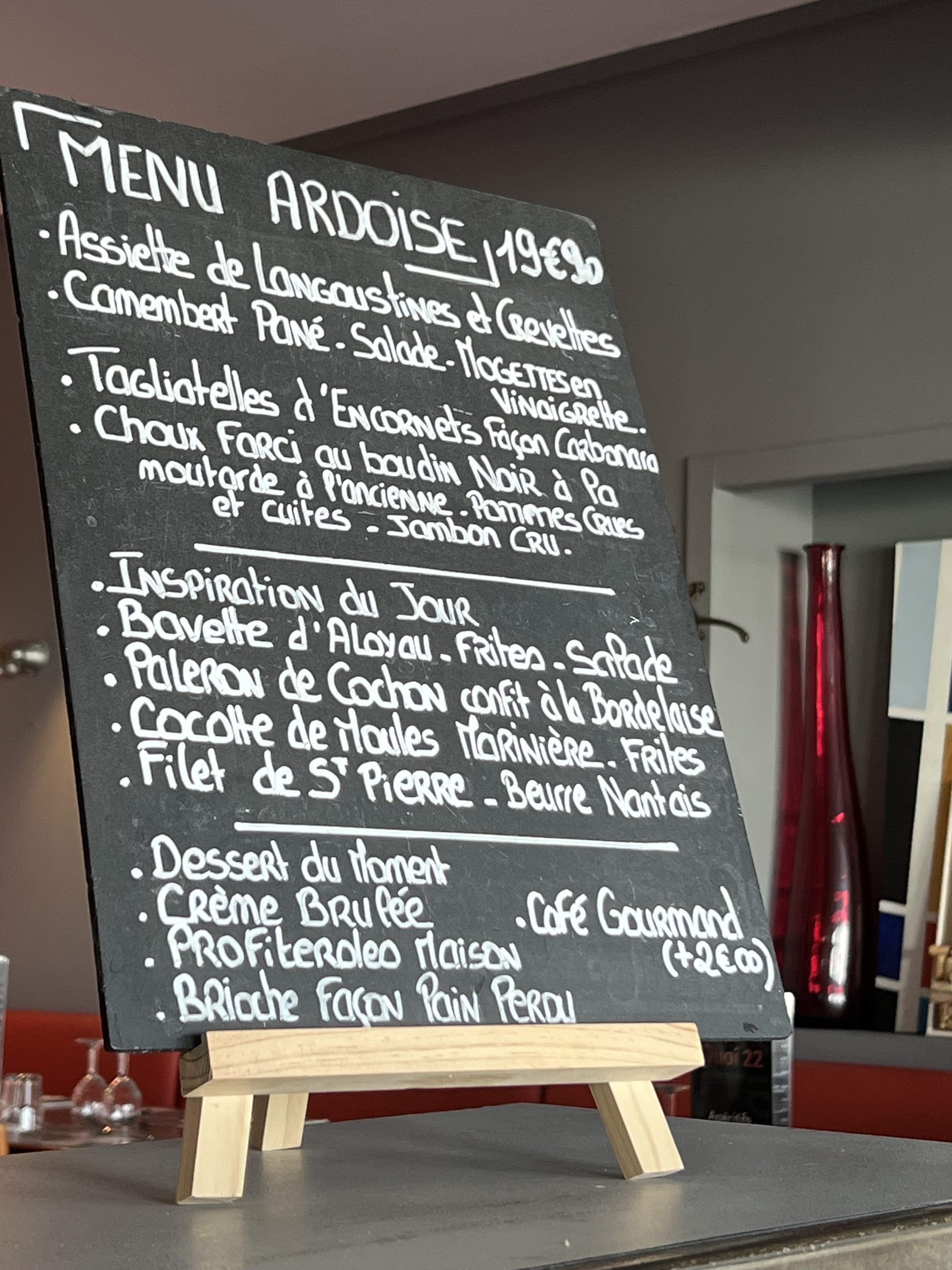 Jolie adresse avec un menu ardoise savoureux à seulement 19€90. Que demander de plus! Service très agréable. Nous avons indubitablement aimé et y retournerons durant notre séjour.