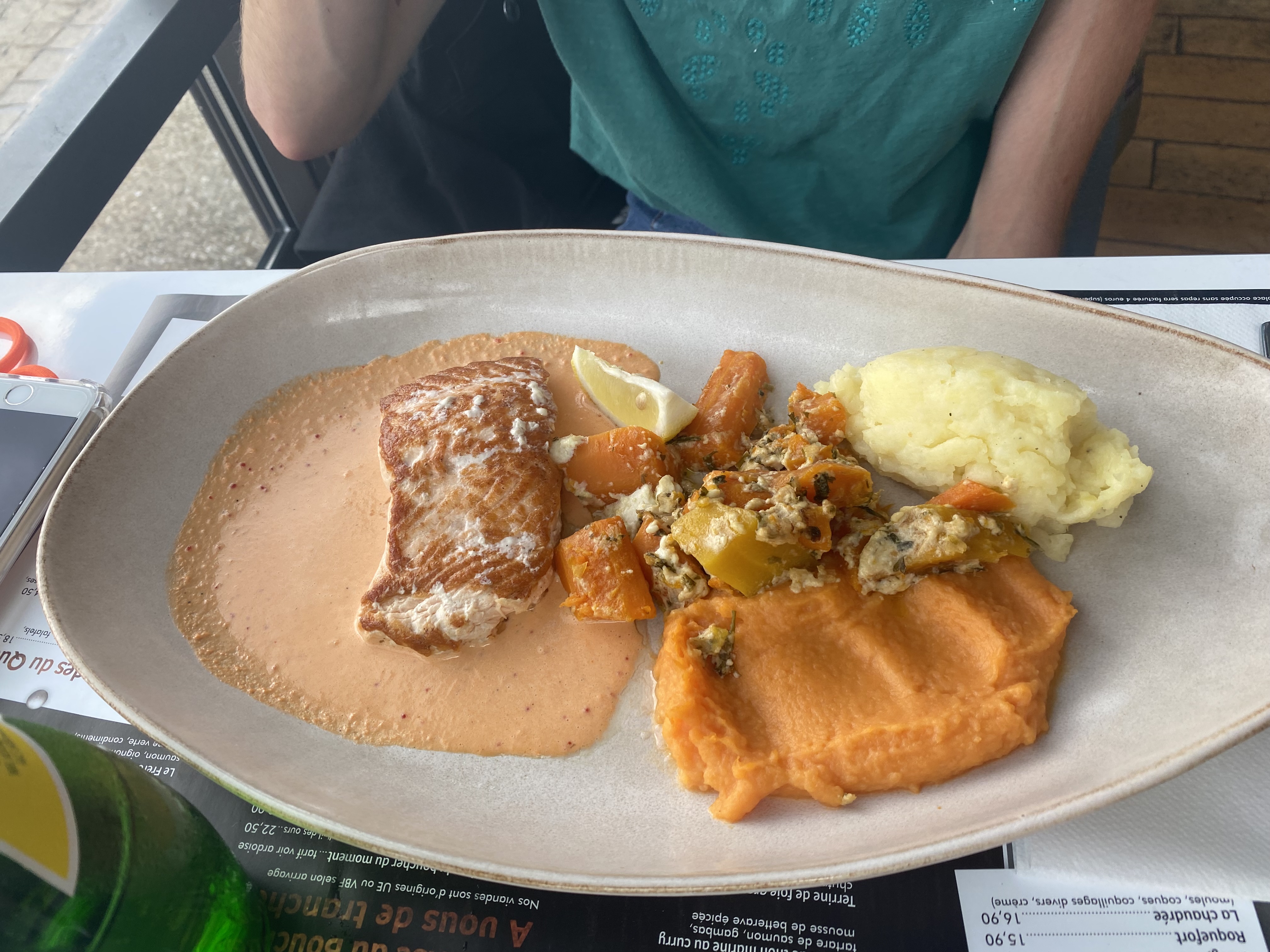 Bien mangé, par contre nous sommes arrivés avec 2 enfants et comme beaucoup de fois nous avons pris un menu du jour pour deux à 19€80 contre 21€ pour 2 menus enfants. À notre grande surprise, pour la première fois de nos vacances, on nous annonce un supplément de 4€ (écrit en petit en bas de la carte) pour les couverts supplémentaires !!!! Ils ne nous l’ont pas appliqué mais pas de changement d’assiette du deuxième enfant entre l’entrée et le plat principal (je trouve cela petit). C’est dommage la cuisine était bonne pour le prix mais avec cet état d’esprit, nous ne reviendrons pas.
