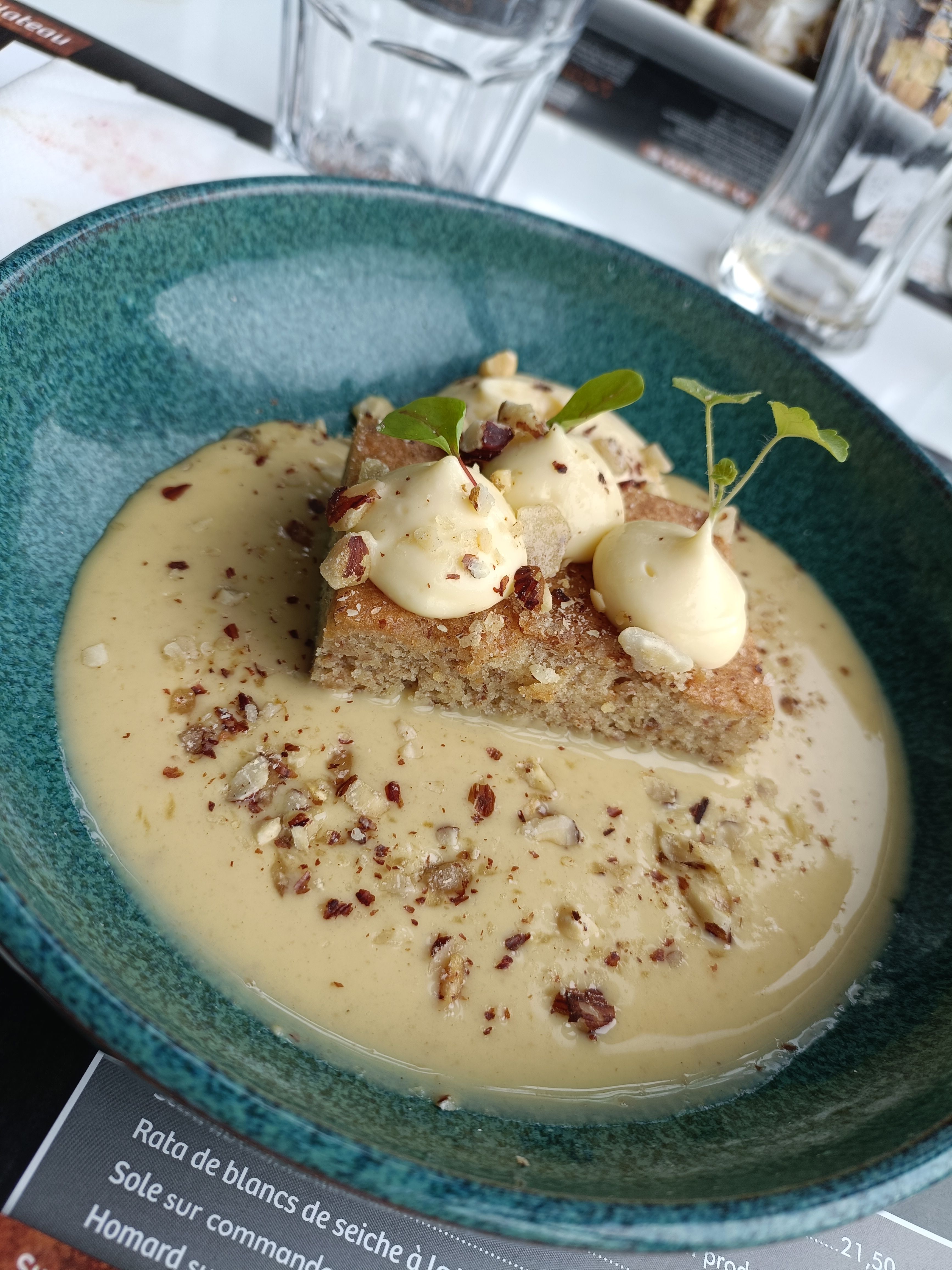 Bon restaurant parmi les dizaines présents sur ce quai Guiné. Menus à 16 (Semaine) 24 et 31.5 €. Cuisine fait maison avec des plats originaux servis dans de belles assiettes (chaudes pour le plat). Ce midi là : navarin de joues de lotte/ petites langoustines, un peu fade, qui mériterait un dosage subtil d'épices. Bons Desserts dont duo de profiterolles chocolat et caramel très goûteux 👏 et gros baba au rhum. Vin au verre à partir de 4,20 €. Bon rapport Q/P.