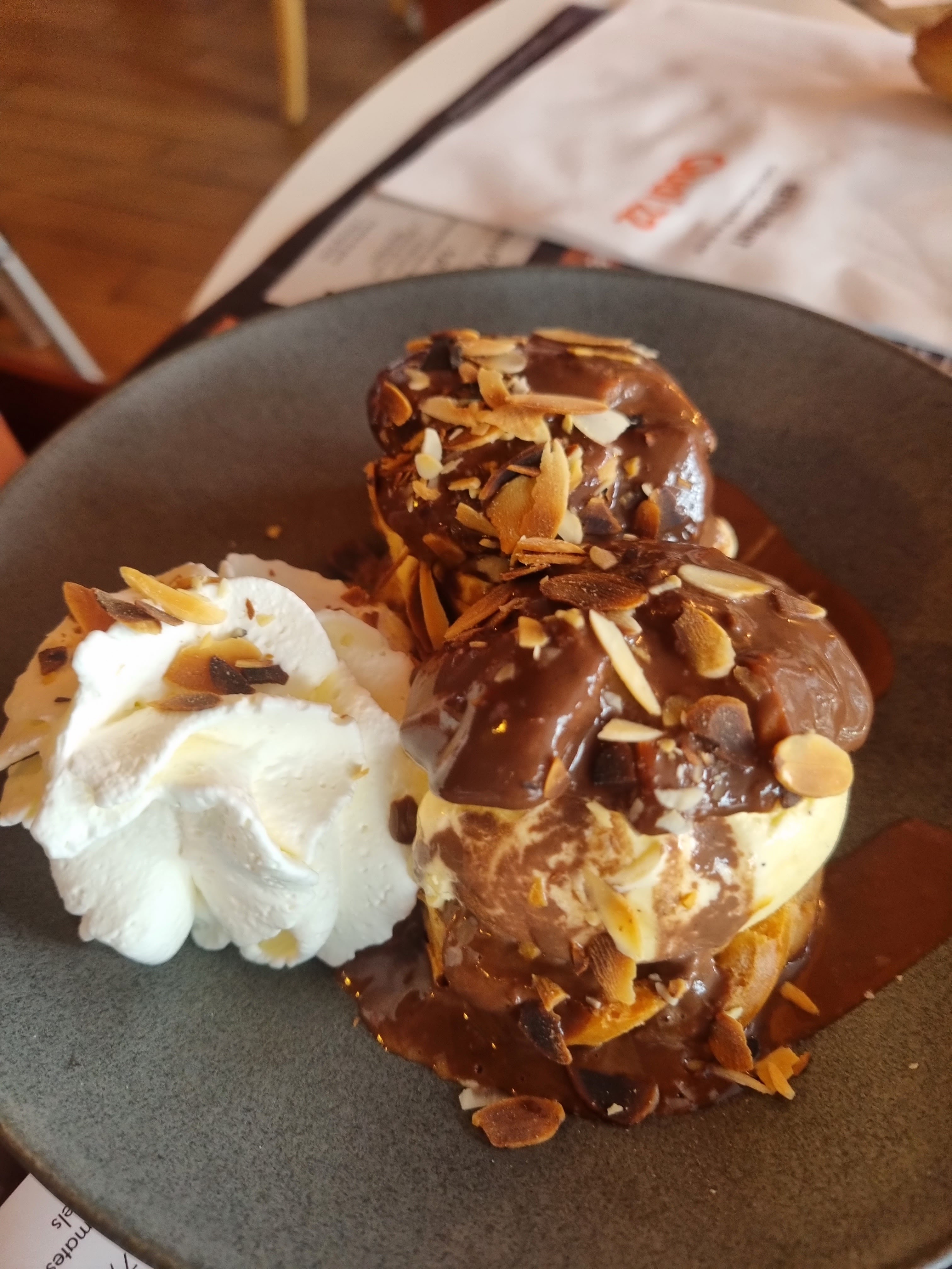 Déjeuner un dimanche midi. Très bien. Accueillant, souriant, très bon. J'espère que la jeune fille qui faisait son essai a obtenu le poste car elle était très bien. Dommage en revanche que les profiterrolles ne soient pas à la crème pâtissière 😉.