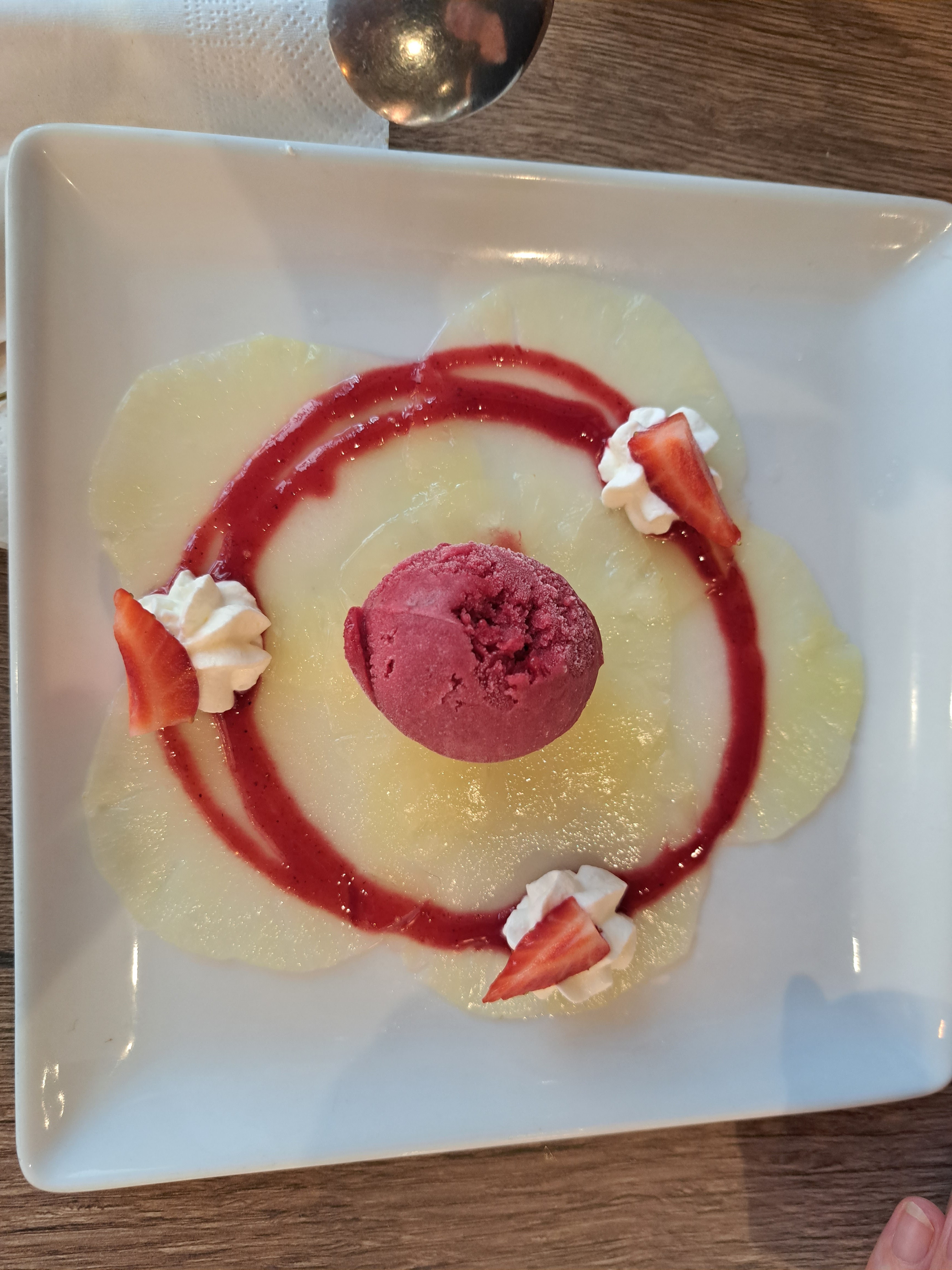 Service très convivial .cuisine correcte mais le dessert composé d une tranche d ananas et une boule de glace et d un peu de chantilly pour 8 euros ....ce restaurant reste très cher pour la cuisine proposée