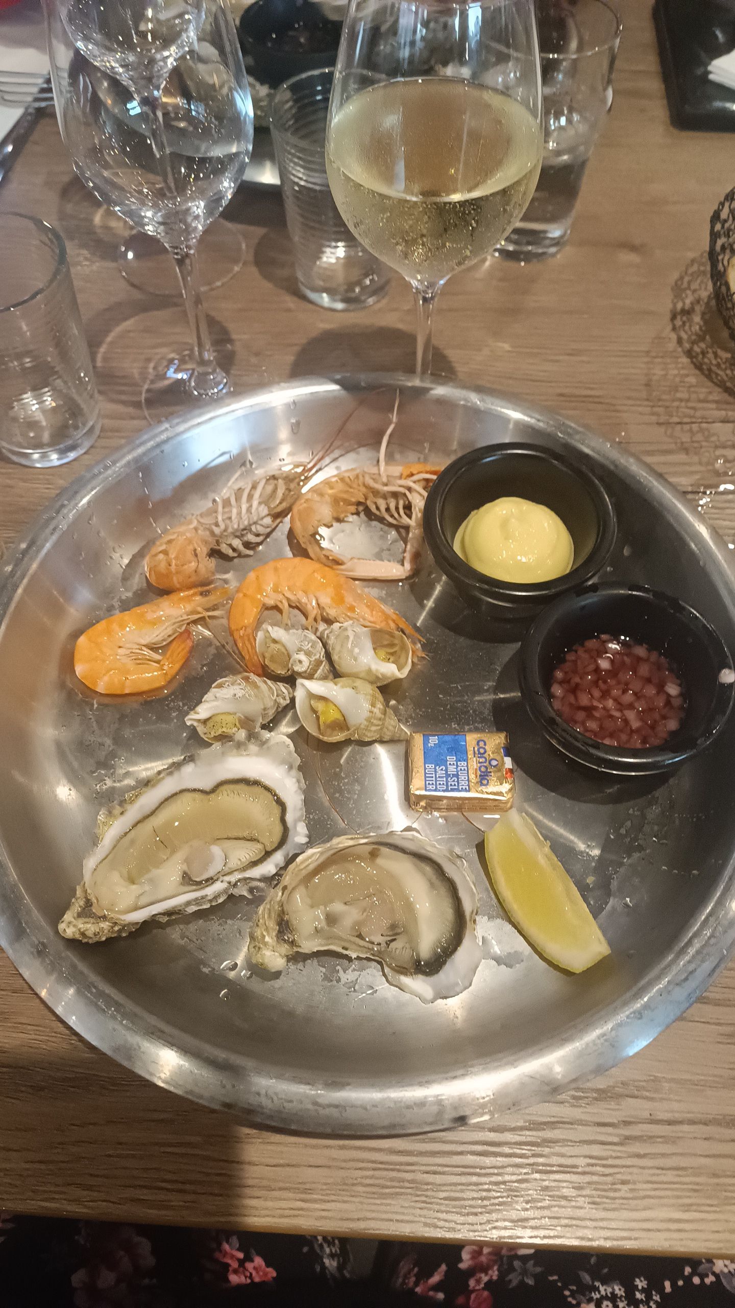 Repas limite pour 29€ 2 huitres, 2 bulots, 2 langoustines 1 palourde. On a réclamé 3 fois notre vin notre entrée bien commencée Quand aux déserts il faut regarder à la loupe les tranches d'ananas sur une mini boule de glace aucune présentation. Nous avons été plusieurs fois à ce restaurant mais là très mauvaise surprise on n'y reviendra plus.