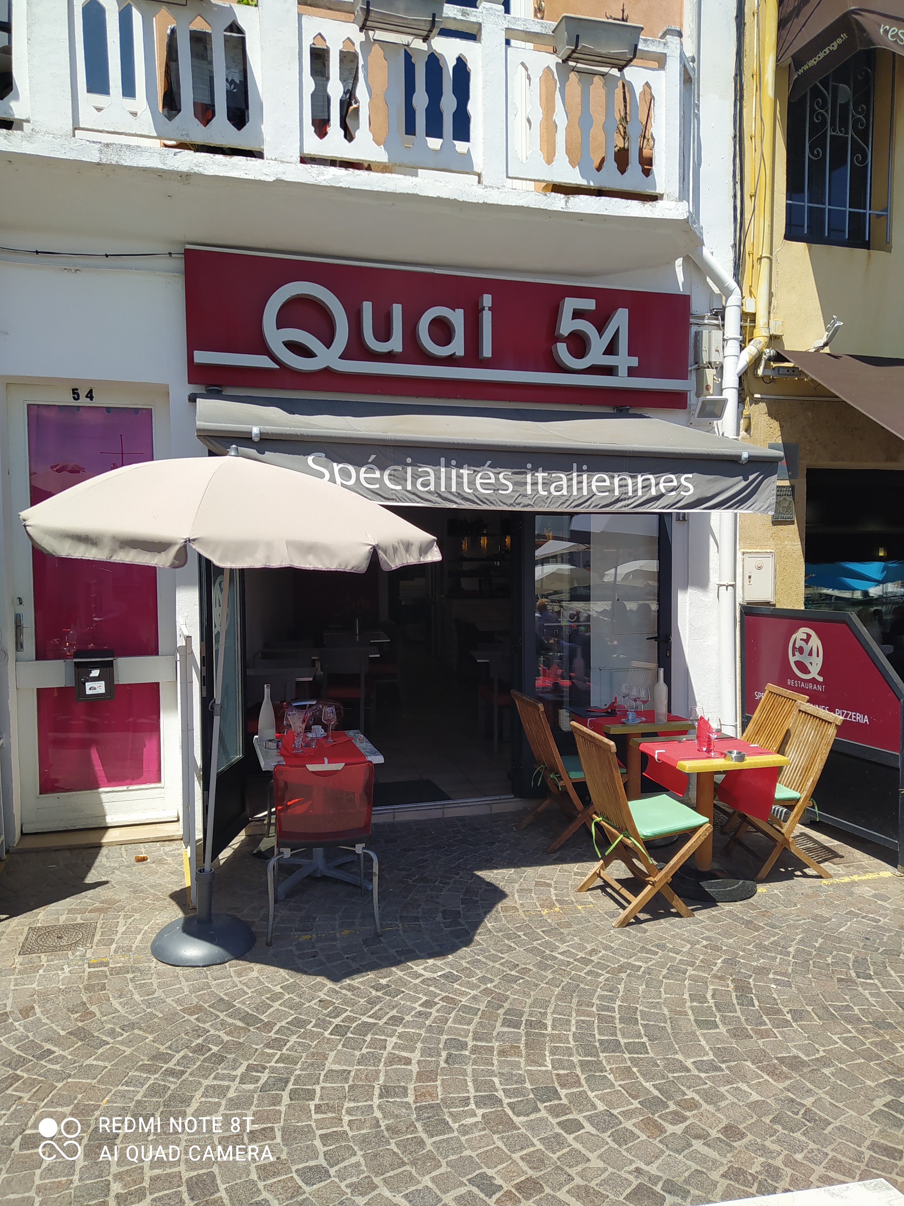 Excellent restaurant italien, sympathique et convivial. La pizza « Quai 54 » est délicieuse et copieuse. L’entrecôte est également très bonne. Service agréable. Le prix de la pizza Quai 54 est un peu chère : 22€ mais celle-ci est tellement bonne que cela en vaut son prix.