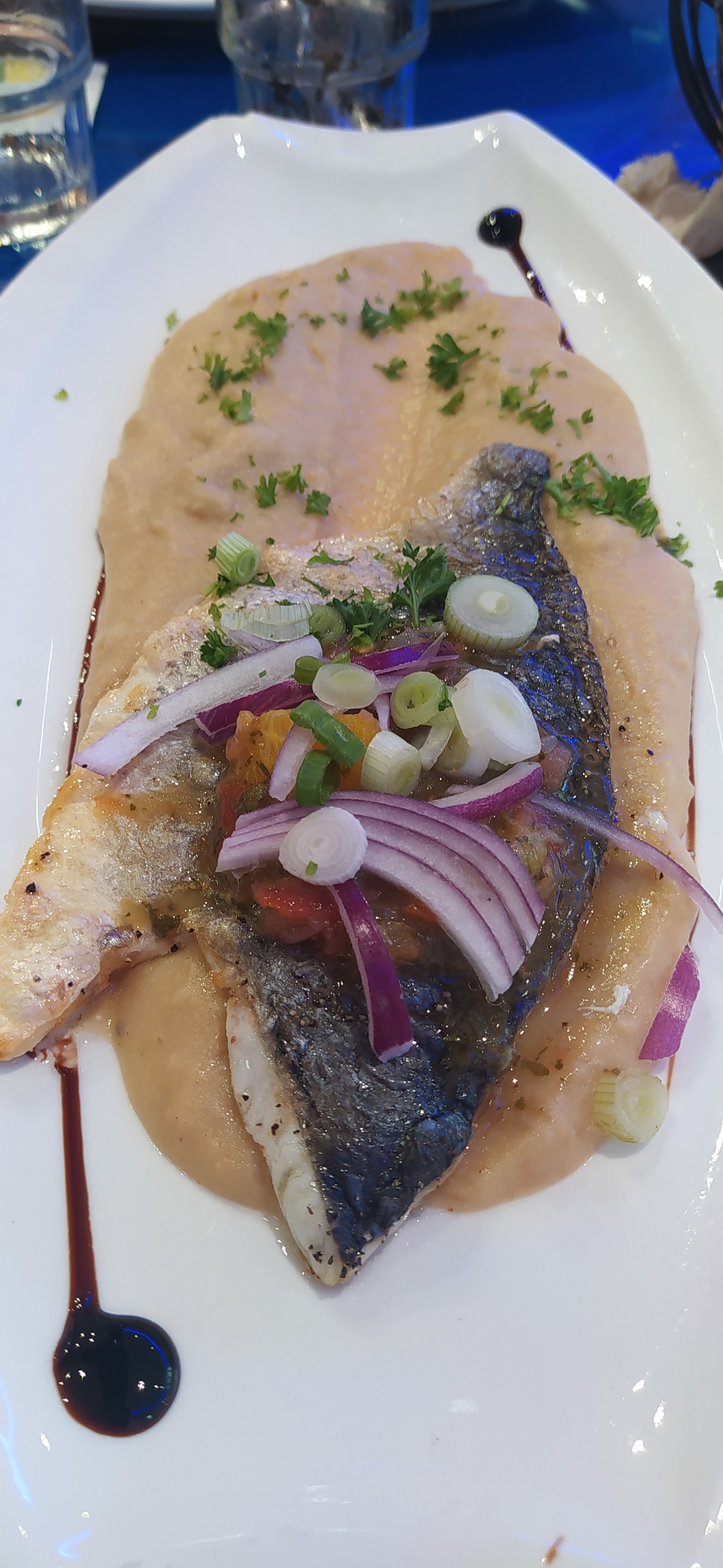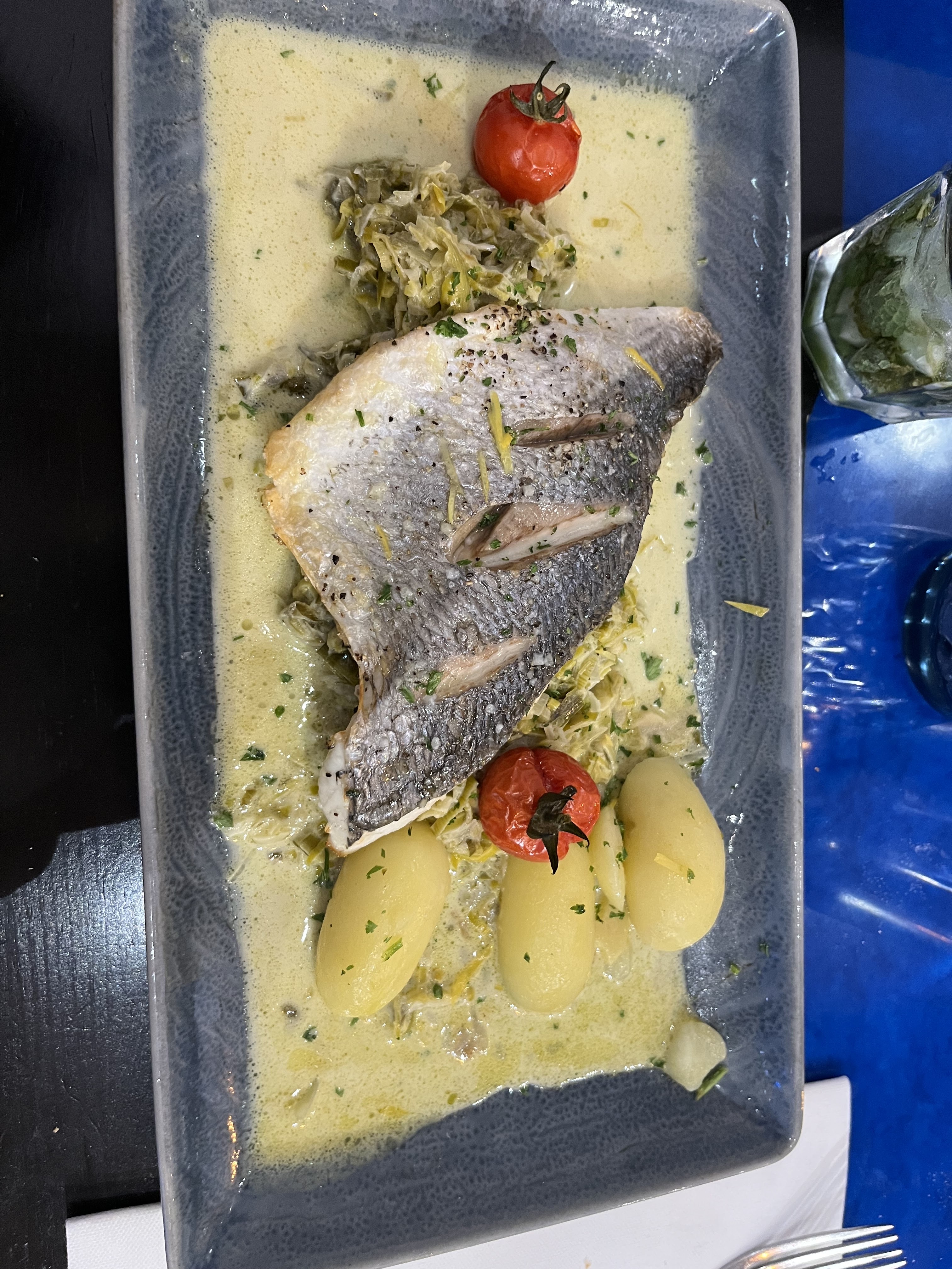 Lieu très sympa, 'pus avons passé un bon repas mais les quantités ne sont pas énormes....déçu par la taille du filet de dorade...pour le reste c était bien.