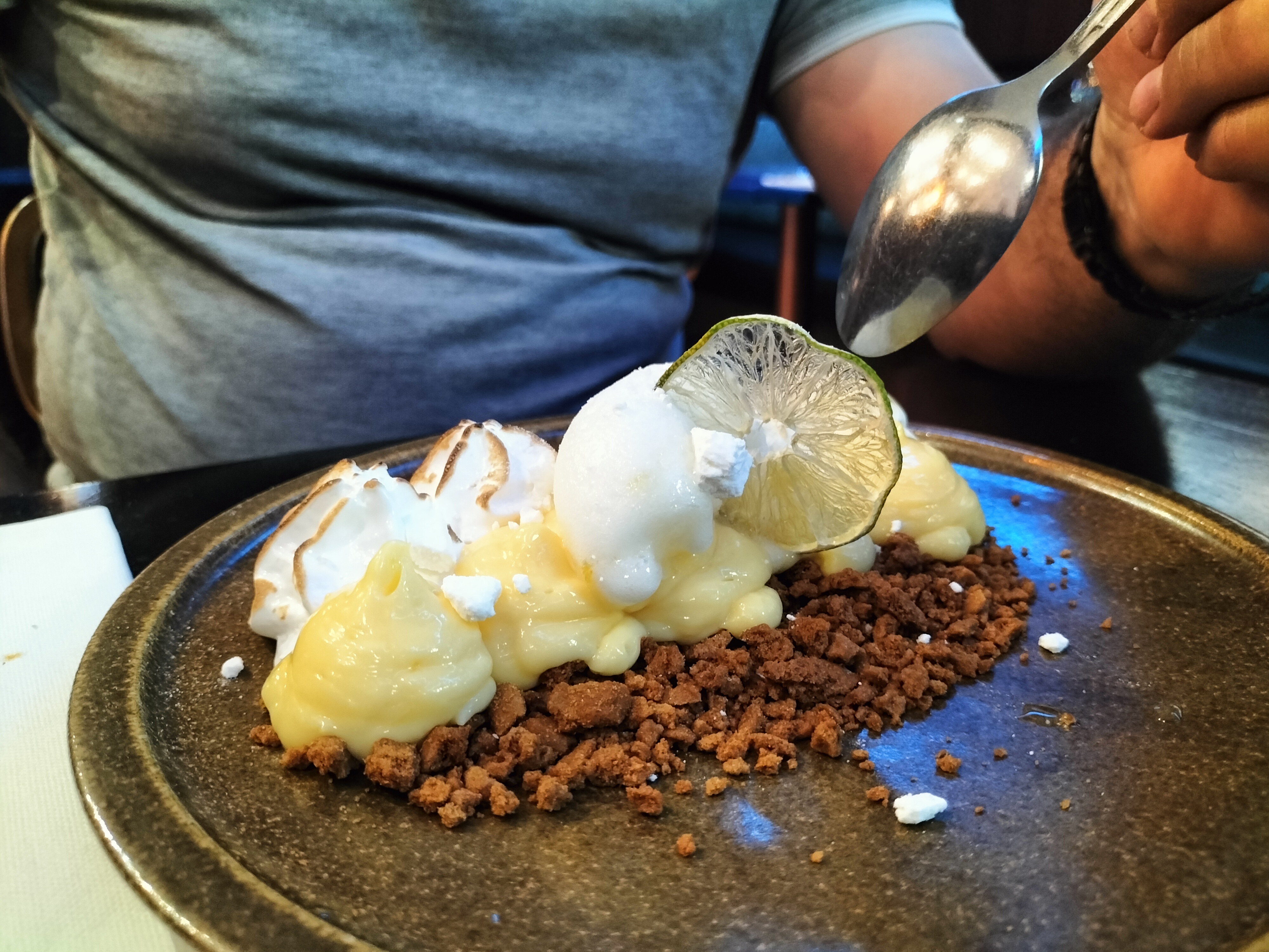 Excellent fish and chips, au vrai goût anglais. La tarte au citron revisitée est une vraie découverte. Merci à Julianne pour son sourire.