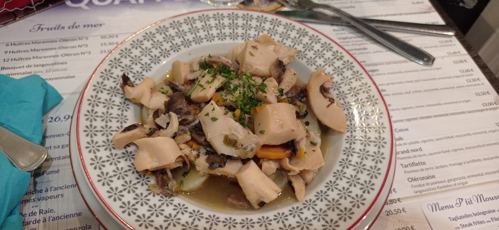 Les plats sont familiaux, copieux et faits avec des produits de qualité, (n'en déplaise aux pisse froid la carte annonce honnêtement ce qui n'est pas le cas partout, que les frites ne sont pas maison.-... 😊personnellement je ne vais pas au restau pour manger des frites !), le service féminin, souriant, rapide et réactif. Soupe de poisson délicieuse, aile de raie très bien cuite et ragoût de seiches goûteux ! Les meilleurs œufs au lait au caramel de ma vie ! Reçoit après 20h 30, rare sur Oleron. Bravo, continuez ainsi.