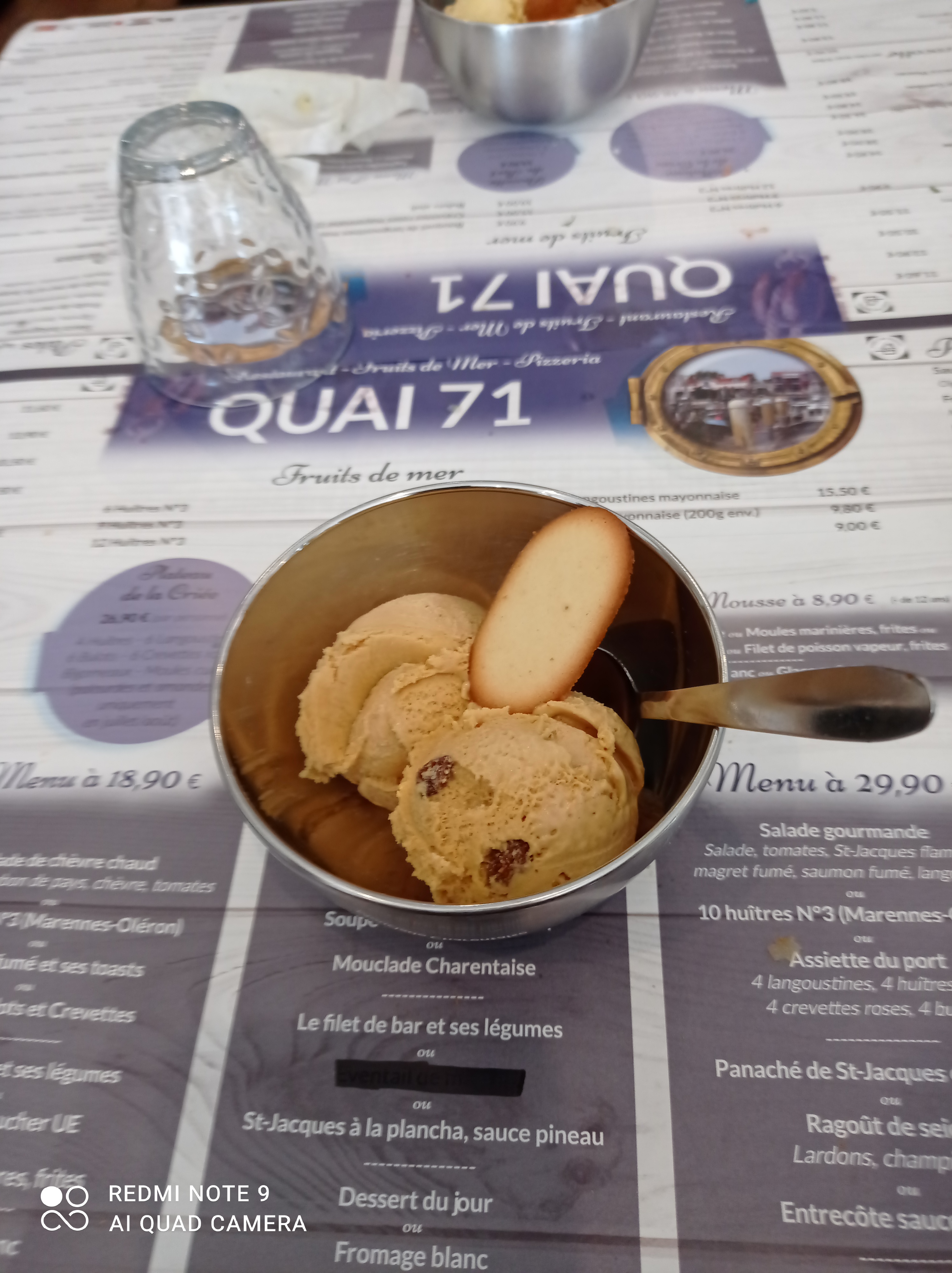 Dimanche 23 août, un an jour pour jour, j'ai eu le plaisir de revenir à l'île d'oleron et de re-manger au Quai 71. Quel plaisir de retrouver cette équipe de serveuses si agréables et souriantes ! Sans compter sur les bons petits plats à prix très raisonnable.