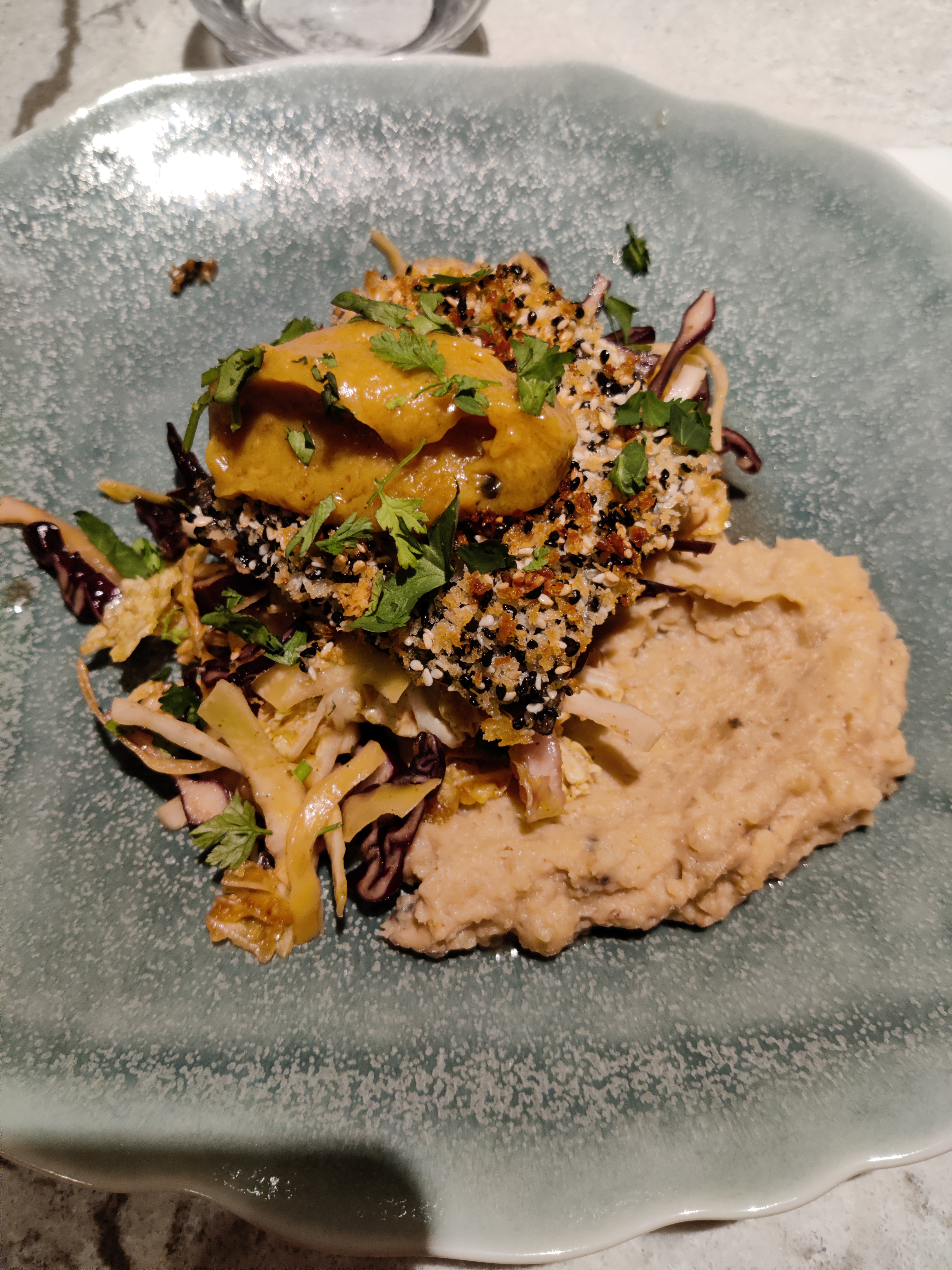 Un voyage culinaire extraordinaire dans les saveurs et la présentation. Originale mais savoureux. Des chips de peau de tomate, idée originale et c'était super bon. Un dessert carotte, un régal. Merci pour ces découvertes. On va revenir.