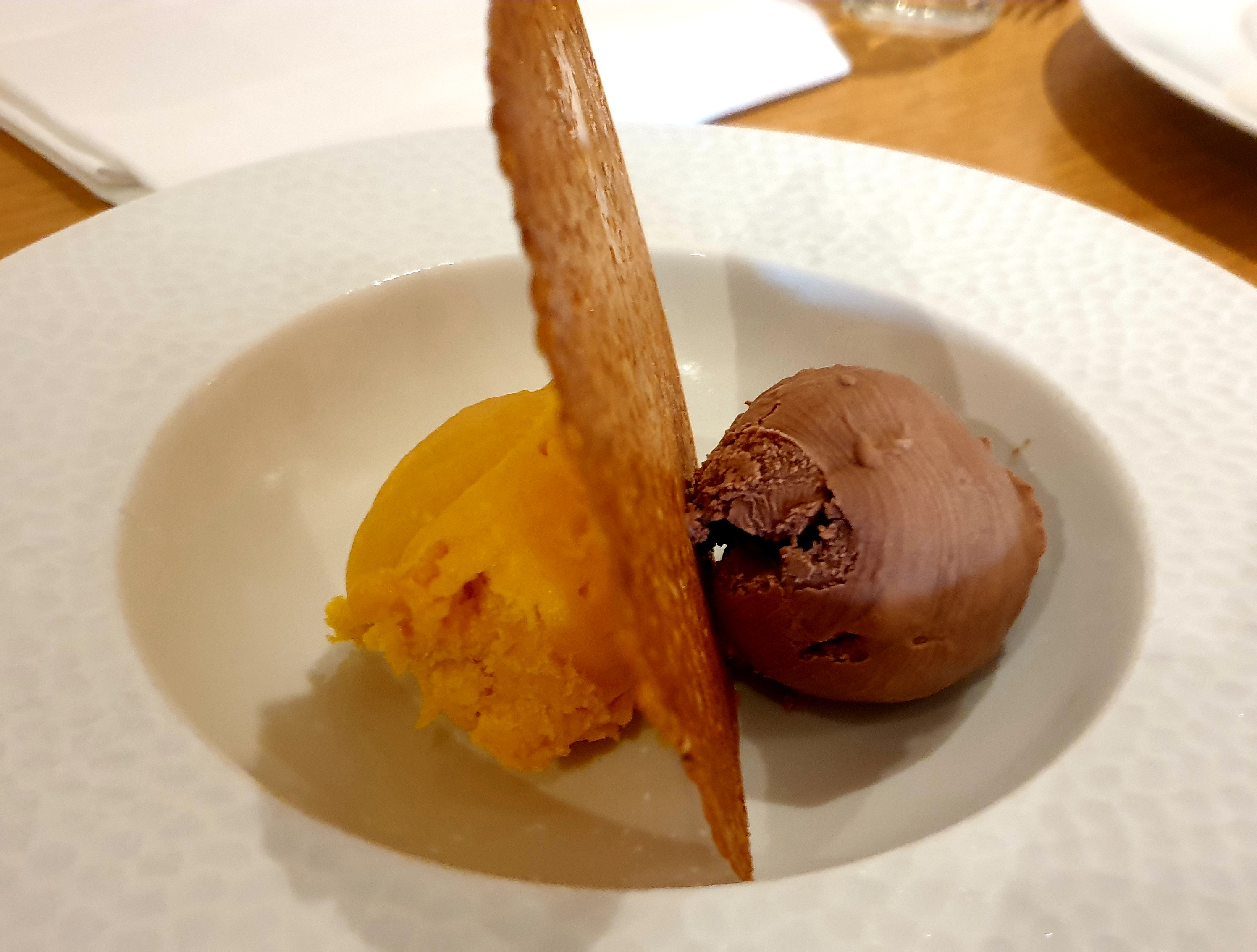 Un serveur aimable, bien organisé, de bon conseil. Niveau cuisine, c'est plus que mitigé : un carpaccio de poisson mal assaisonné, on ne peut pas apprécier suffisamment le carpaccio. L'entrecôte était peu tendre, dommage. MAIS les profiteroles conseillées par le serveur étaient délicieuses et généreuses. La carte des vins est attirante avec de beaux noms.