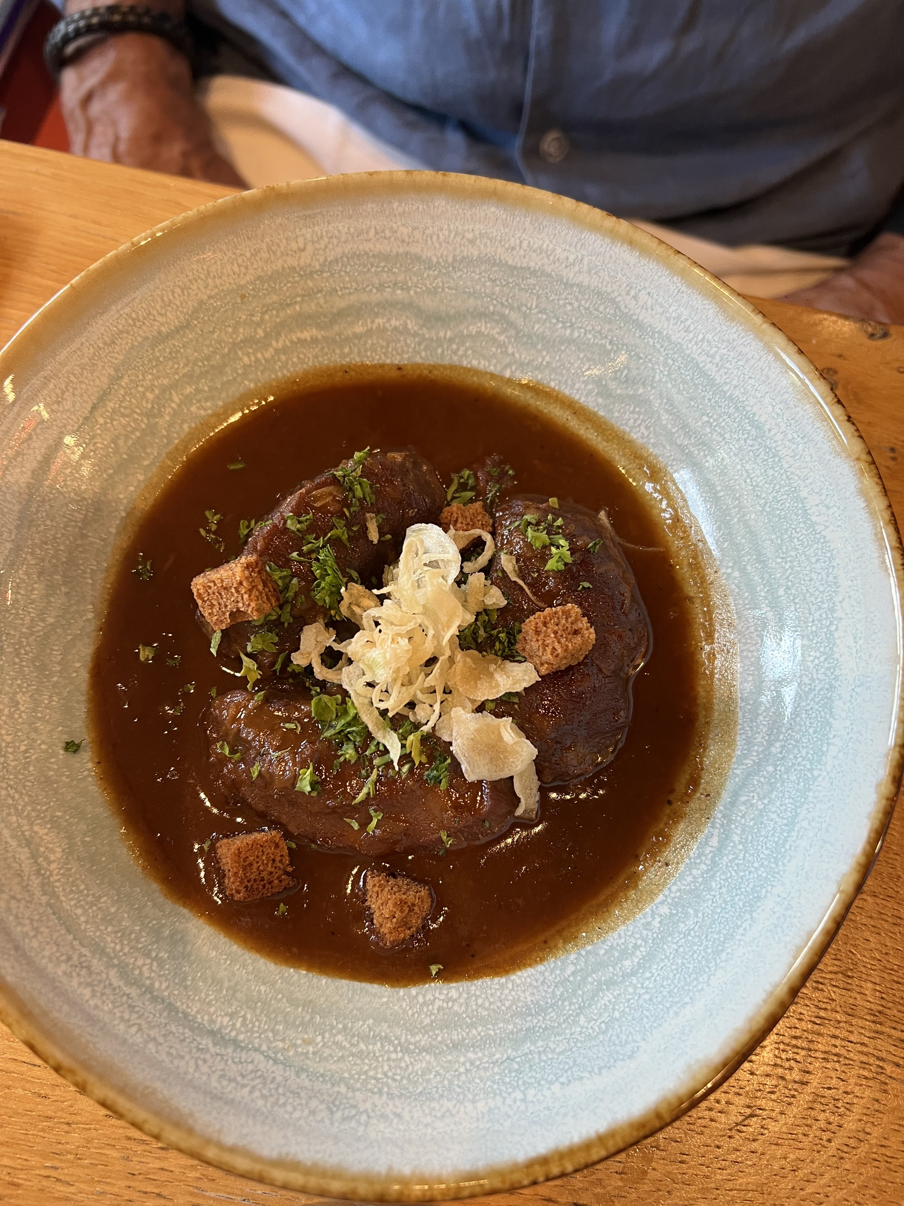 Le cadre beau et insolite. Acceuil chaleureux. Grand bravo pour la cuisine. Les plats faites maison 100% soignés et savoureuses. La viandes meme blanches cuites parfaitement sur commande (avec ça on ne peut pas tricher). Merci chefs, c´était la meilleure pause déjeuner que j´ai eu dans ma vie :))