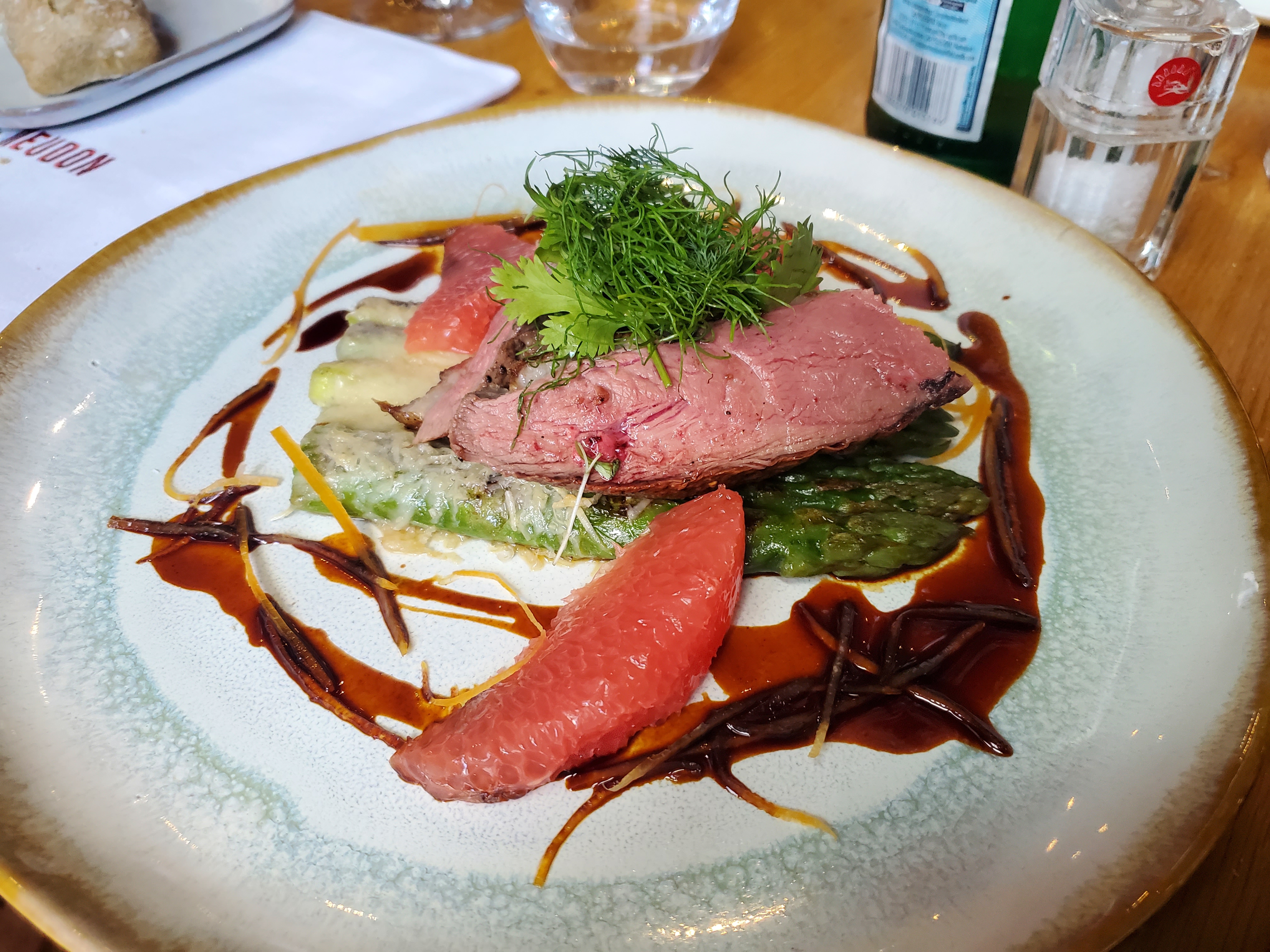 Très bonne cuisine - cuisson, présentation, qualité des produits Table prévue donnée à d'autres convives, vin oublié, 4 asperges pour 21€. Un peu too much. Agencement et déco de l'ancienne gare réussis.