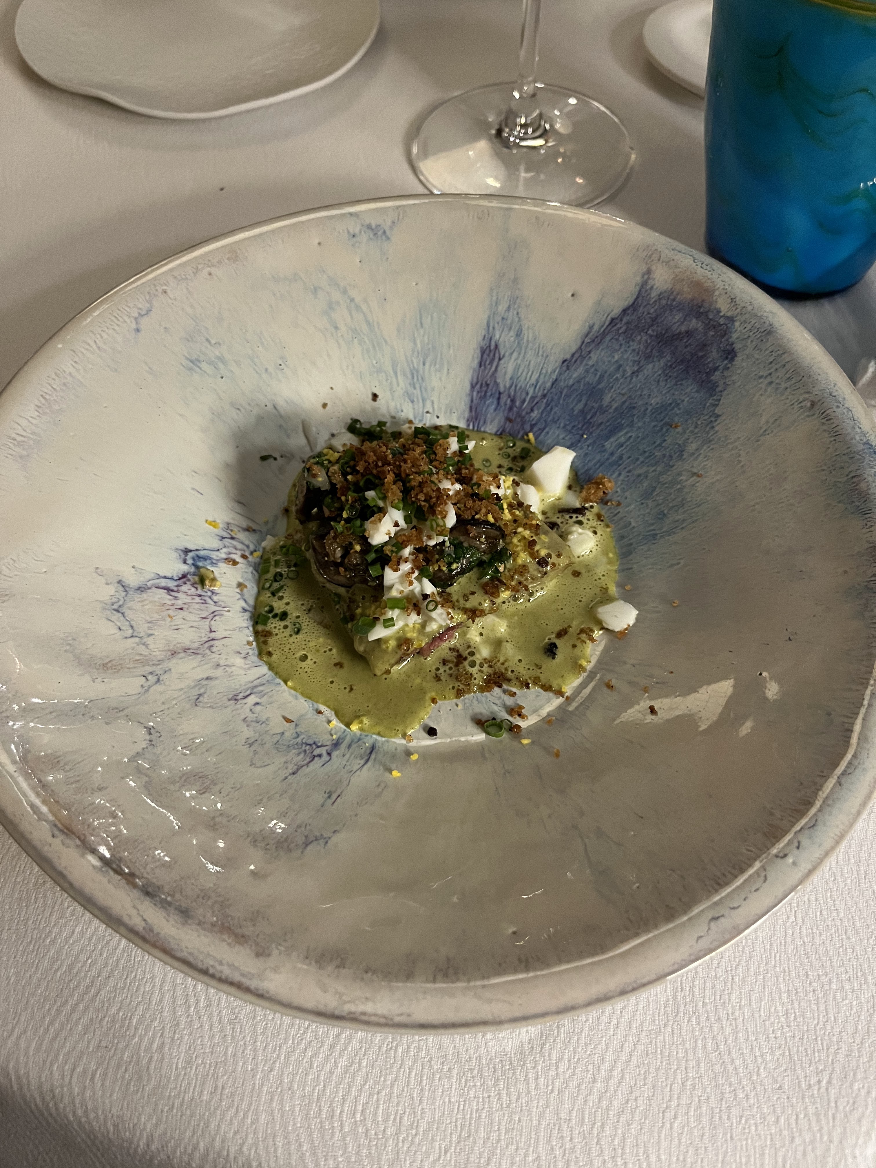 Nous avons pris le menu 7 plats , et nous n'avons pas regretté ! C'est une surprise dans chaque assiette ! Le rapport qualité prix est bon !