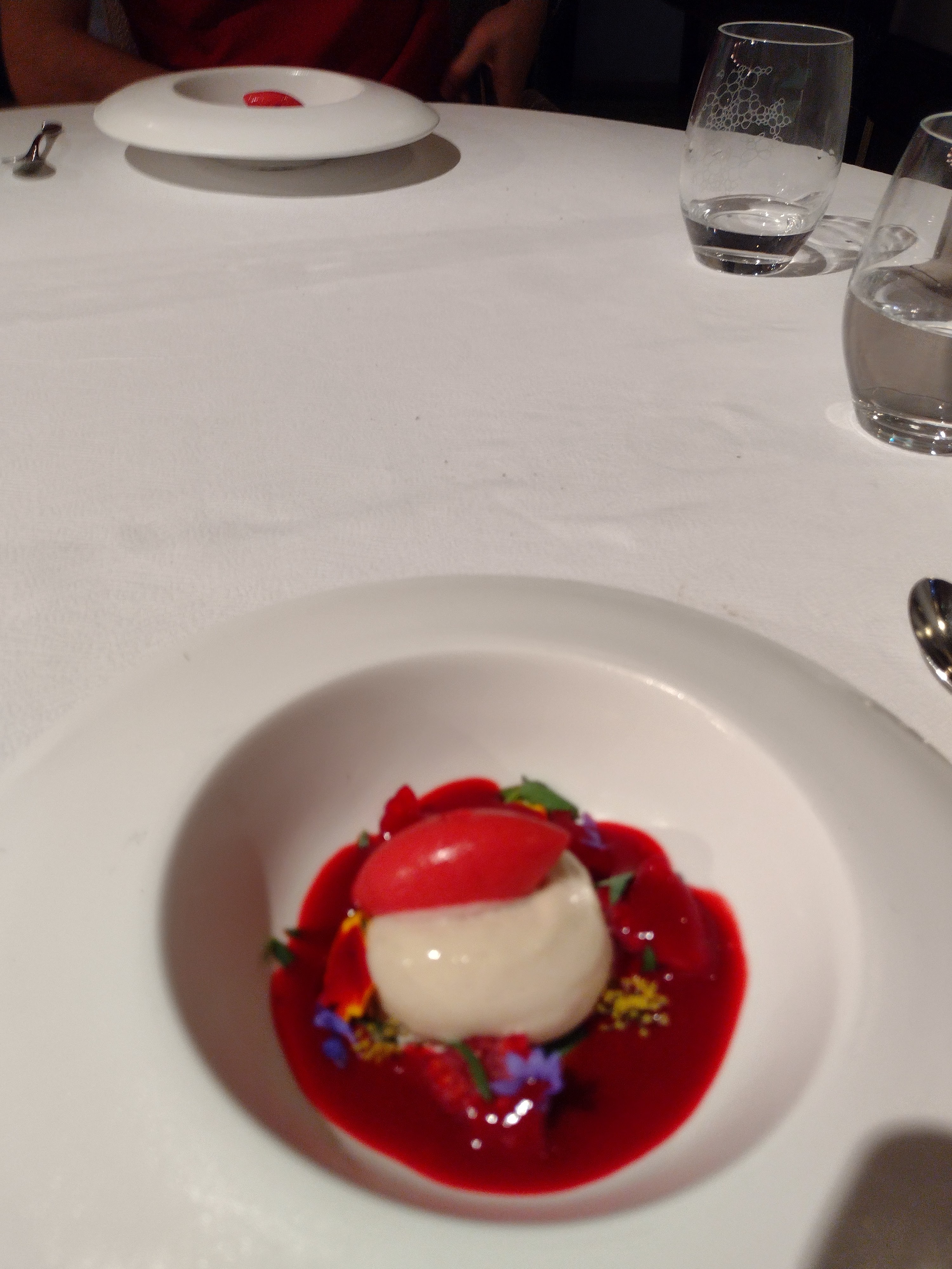 Certes mon choix s'était porté sur le menu simple de midi. Surprise, pas de choix à faire, on nous demande de nous laisser guider. Encore eût-il fallu que ce menu soit un peu équilibré: entre une entrée légère avec de petits artichauts (je ne suis pas contre) et un demi dessert ( l'assiette encore légère avec framboise et sorbet, là encore je ne suis pas contre) il y avait en plat un flan à base de mousse de brochet dont le goût, comme chacun le sait, se limite au bout d'arête que l'on y trouve. Un petit bout de poisson, de volaille ou de viande de base n'aurait rien dépareillé.