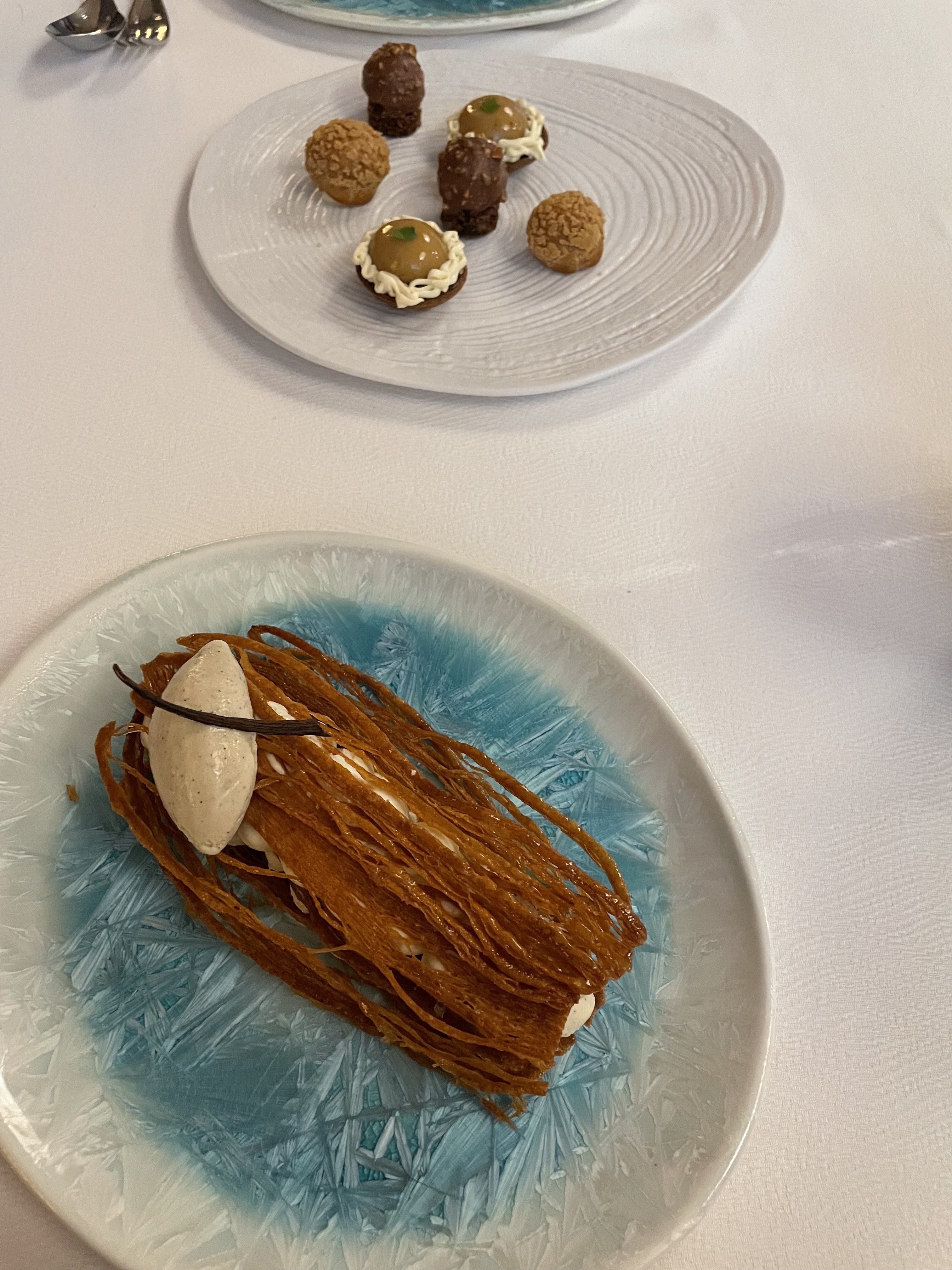 Accueil au top, ambiance feutrée, repas qui donne des frissons tellement c’est audacieux et recherché. Le pâtissier est hors normes tellement il est créatif. Mention spécial au sommelier pour ses conseils affûtés. Merci encore pour ces moments. À recommander sans hésitations.