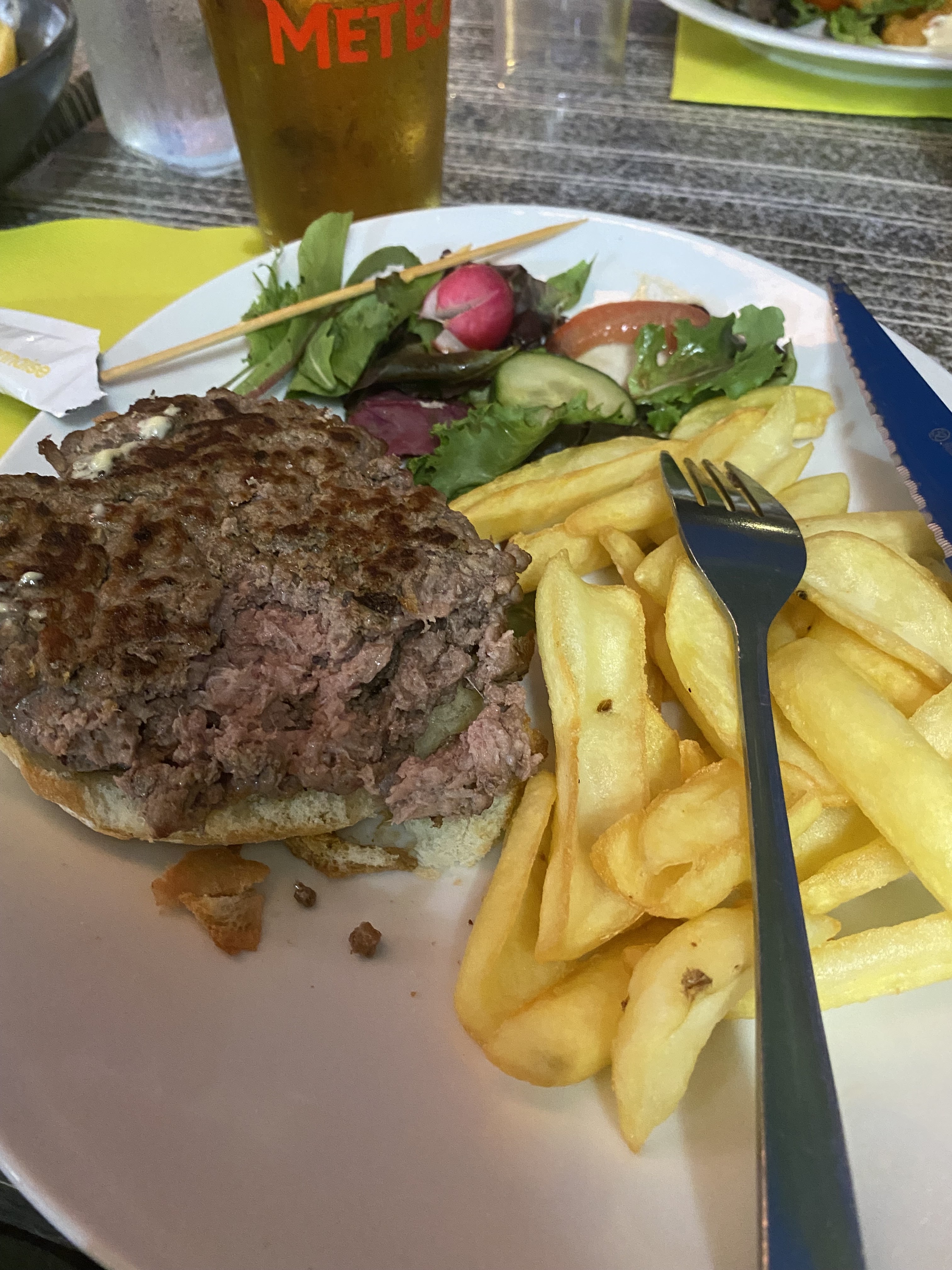 Bon je ne vai pas être aussi méchant que les autres commentaires, mais bon difficile de mettre une bonne note, j’ai commandé un hamburger classique et on me donne un morceau de viande entre deux pains certes bons mais sans garnitures pas de tomates ni de cornichons ni d’oignons…les frites n’étaient pas très bien cuites mais mangeables. Honnêtement, il y a des améliorations à apporter si vous espèrez de meilleurs commentaires. Et je suis très indulgent….par contre la serveuse très gentille et serviable. Ça aide à faire passer la pilule.