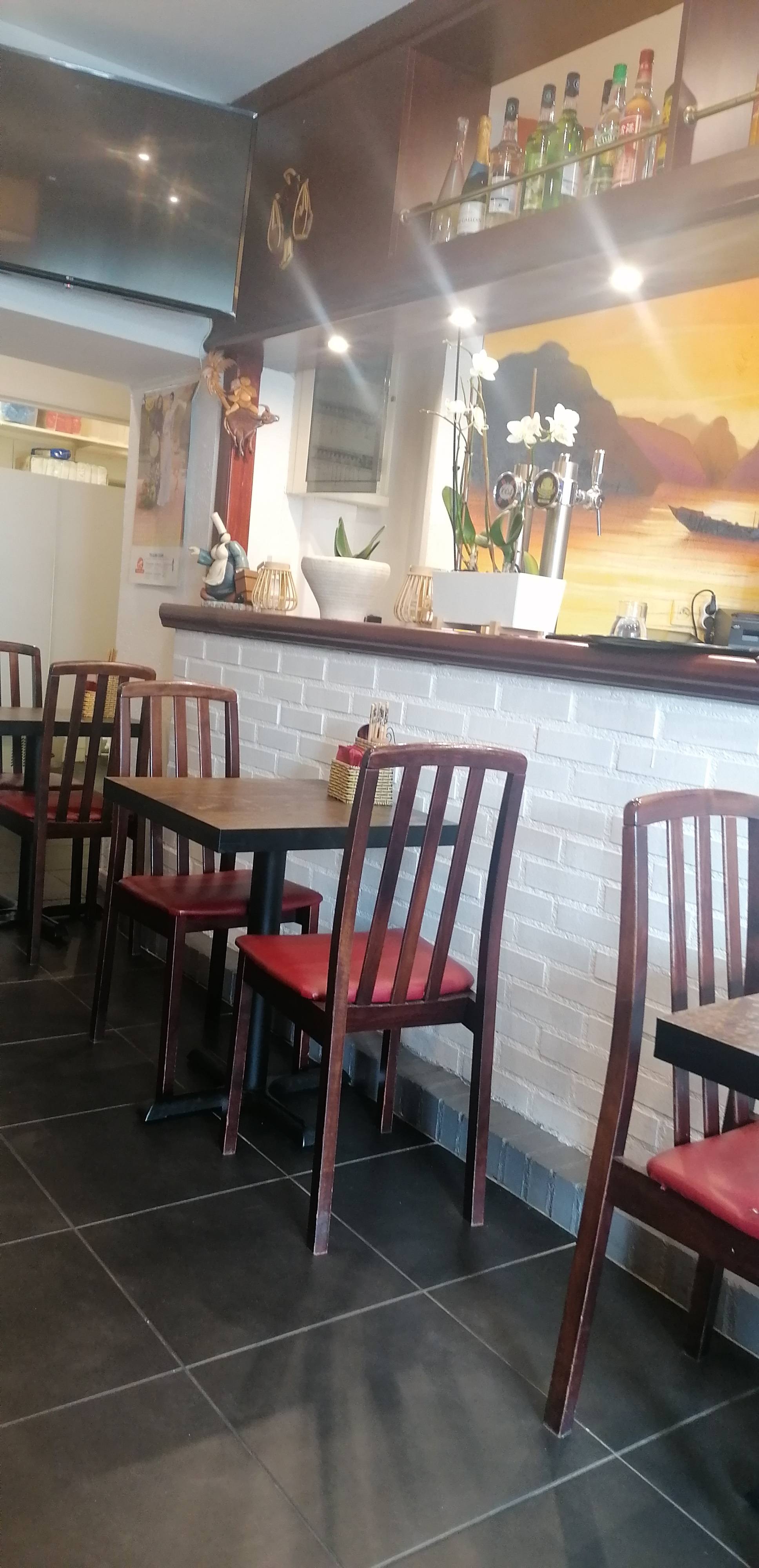 Ce restaurant vietnamien possède une petite salle très petite et très propre. Le personnel est sympathique. La cuisine a base de produits frais est tout à fait honorable et l'addition n'est pas excessive non plus Bref un endroit que je recommande pour déjeuner ou diner vite et bien sans se compliquer la vie ni se ruiner .