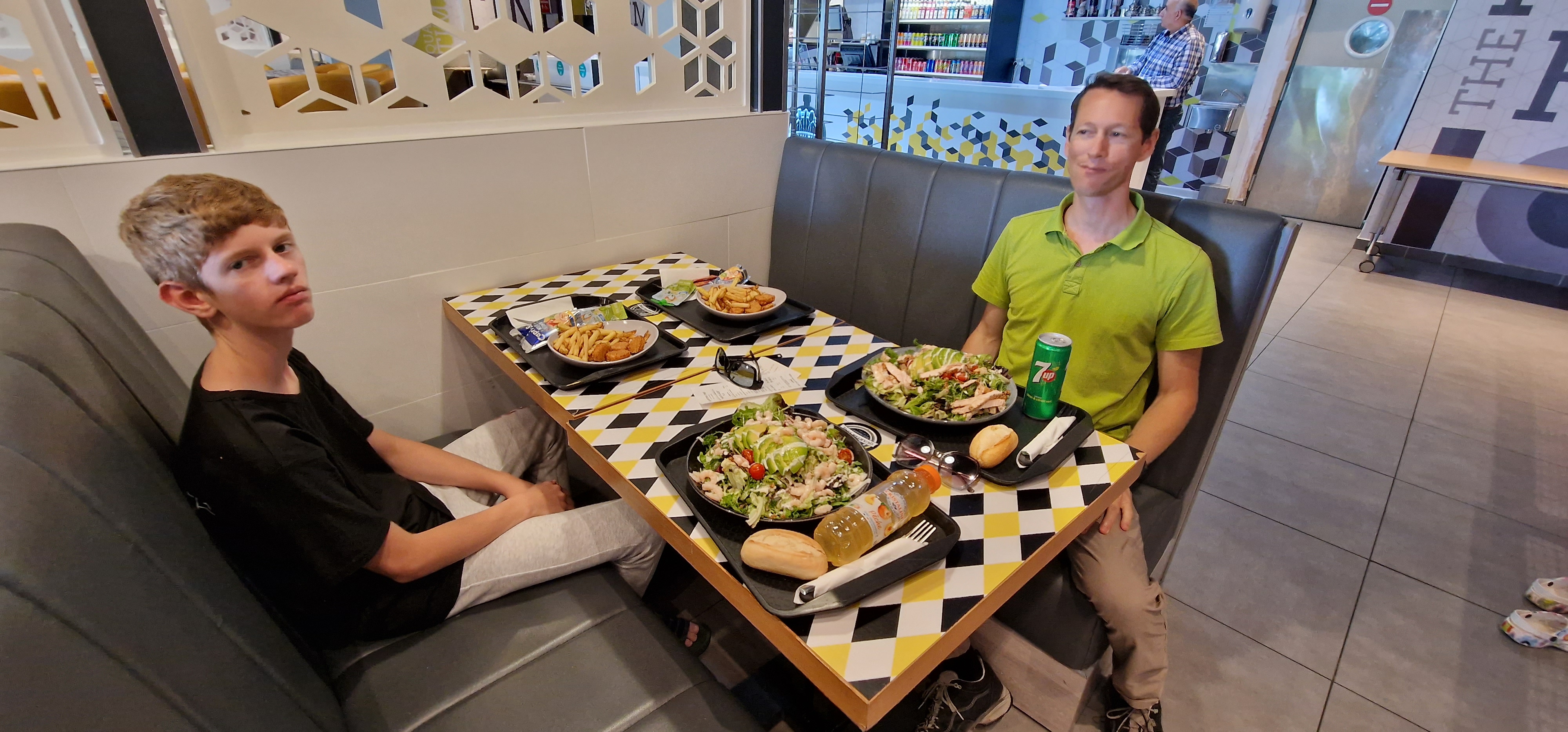 Super restauration rapide fraîche. Des portions énormes ! J'ai adoré ma salade d'avocat et de crevettes. Menus enfants 5eu. Salades 10 UE.