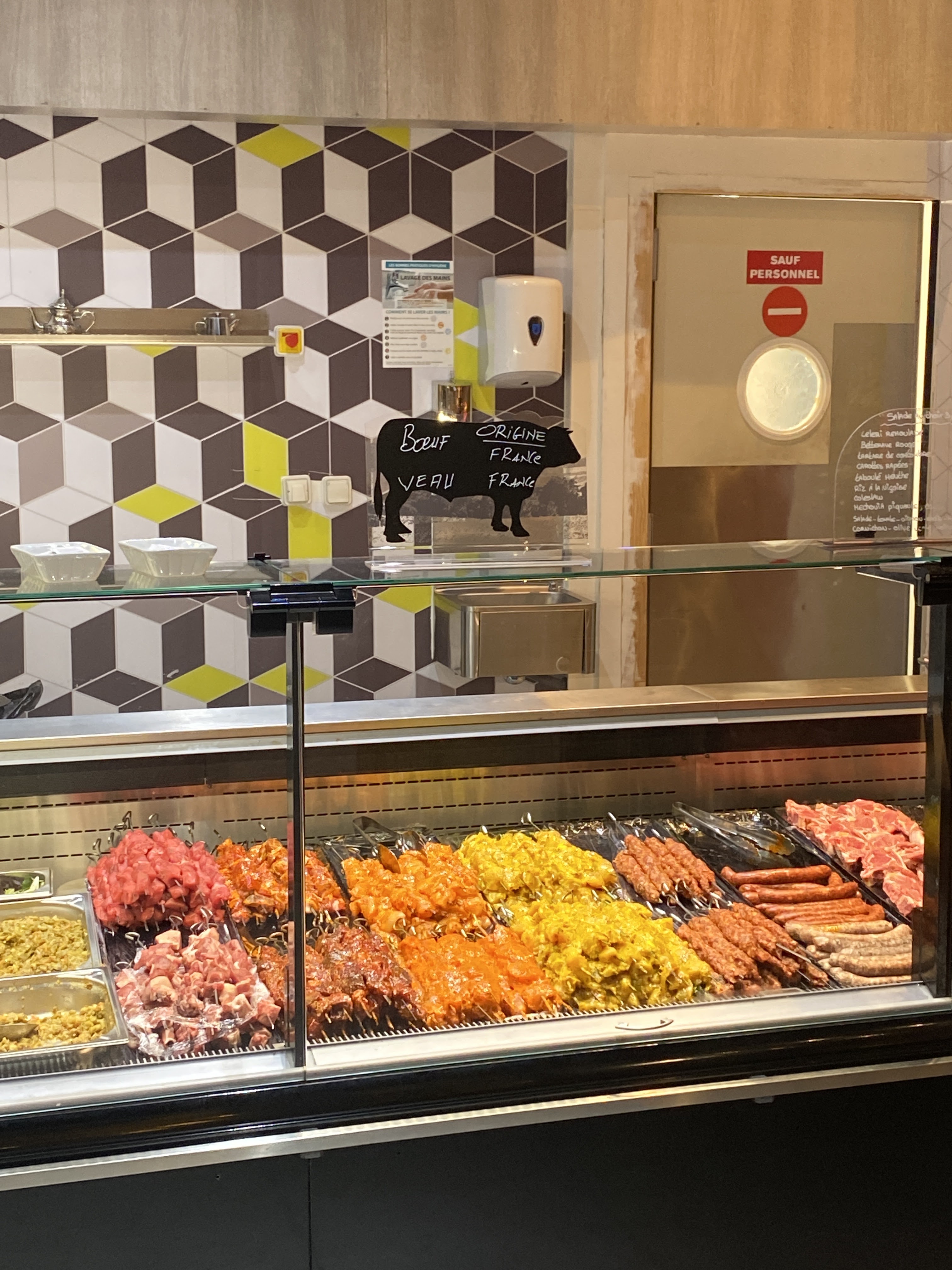 Niveaux nourriture , plat copieux bon 👍 , cependant au niveaux du service très déçus nous somme arriver à 12h15 servie à 13h05 très longue attente pour 4 brochettes et 1 Burger je précise que c’était un mardi midi et restaurant quasiment vide donc pourquoi cette attente 🤷♀️ , et pour l’ambiance que dire personne vous accueil vous faite votre commande sur une tablette a l’entre , et une télé avec votre numéro de commande vous indique qu’elle et prête à aller chercher au comptoir bref pas terrible et surtout il fait super froid 🥶 nous avons manger avec nos manteaux
