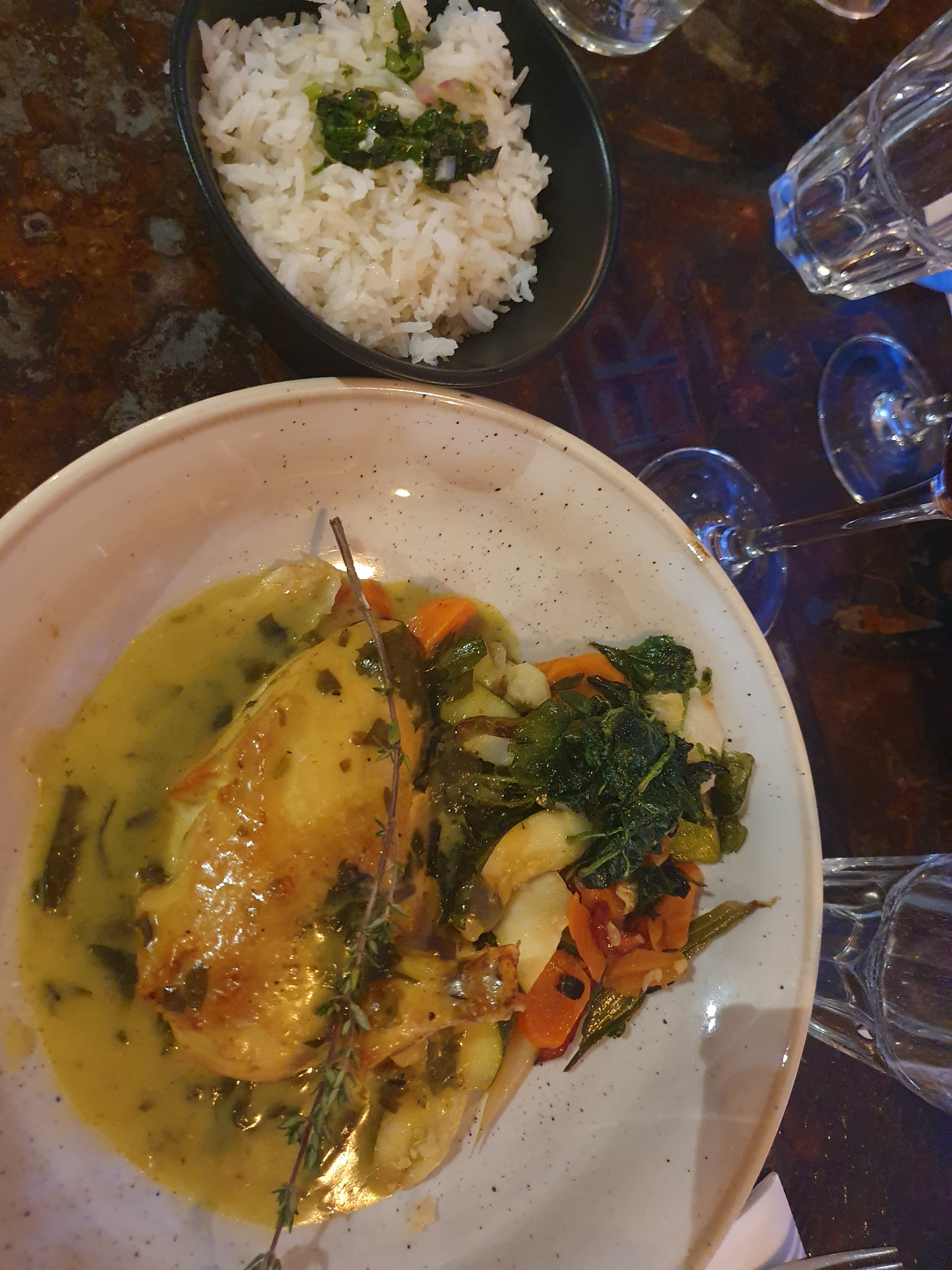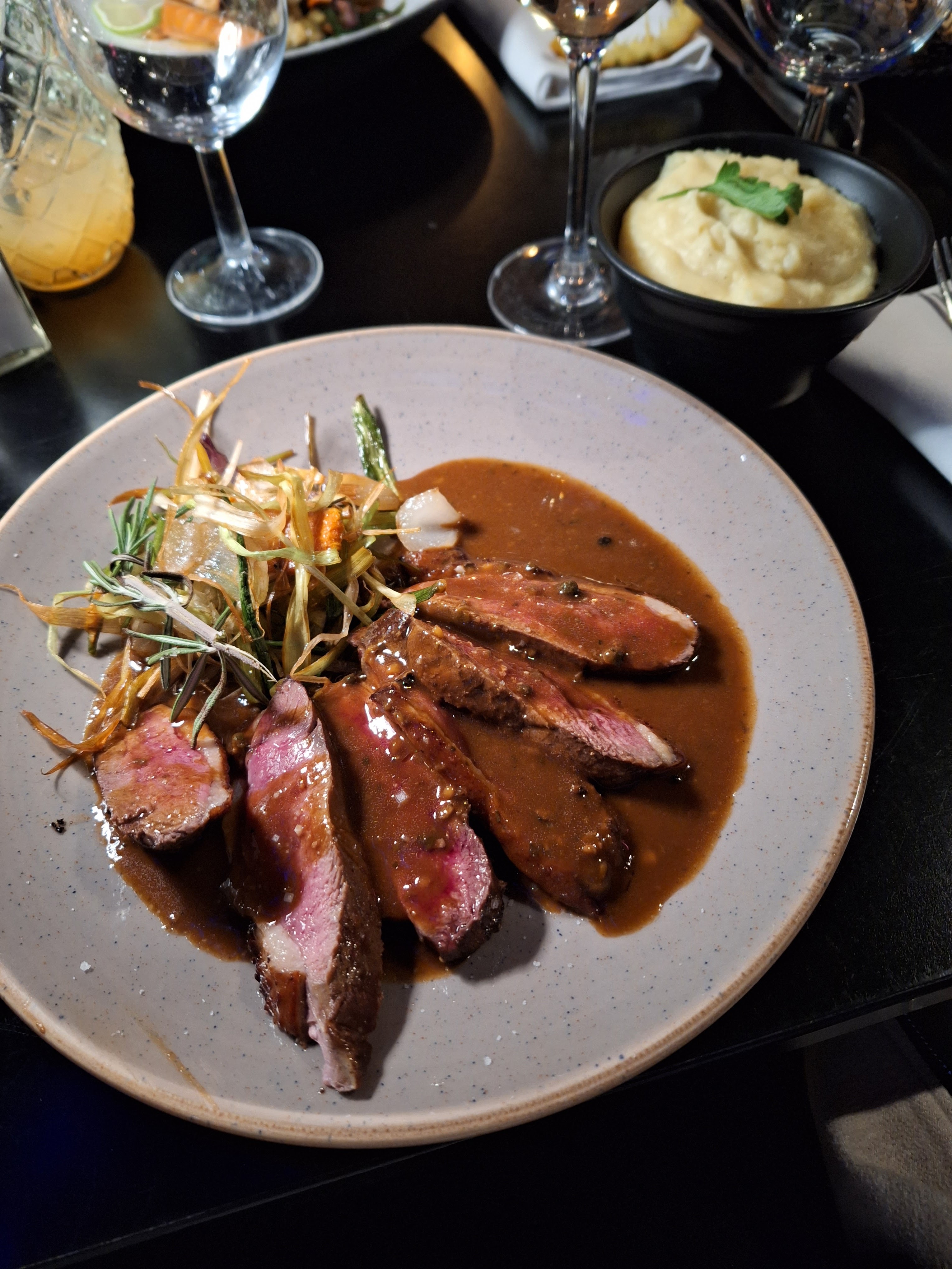 Rien à redire sur la.qualité des plats. Je me suis régalée. Les vins sont un peu chers quand même. C'était soiree 80, j ai beaucoup dansé, bonne ambiance.