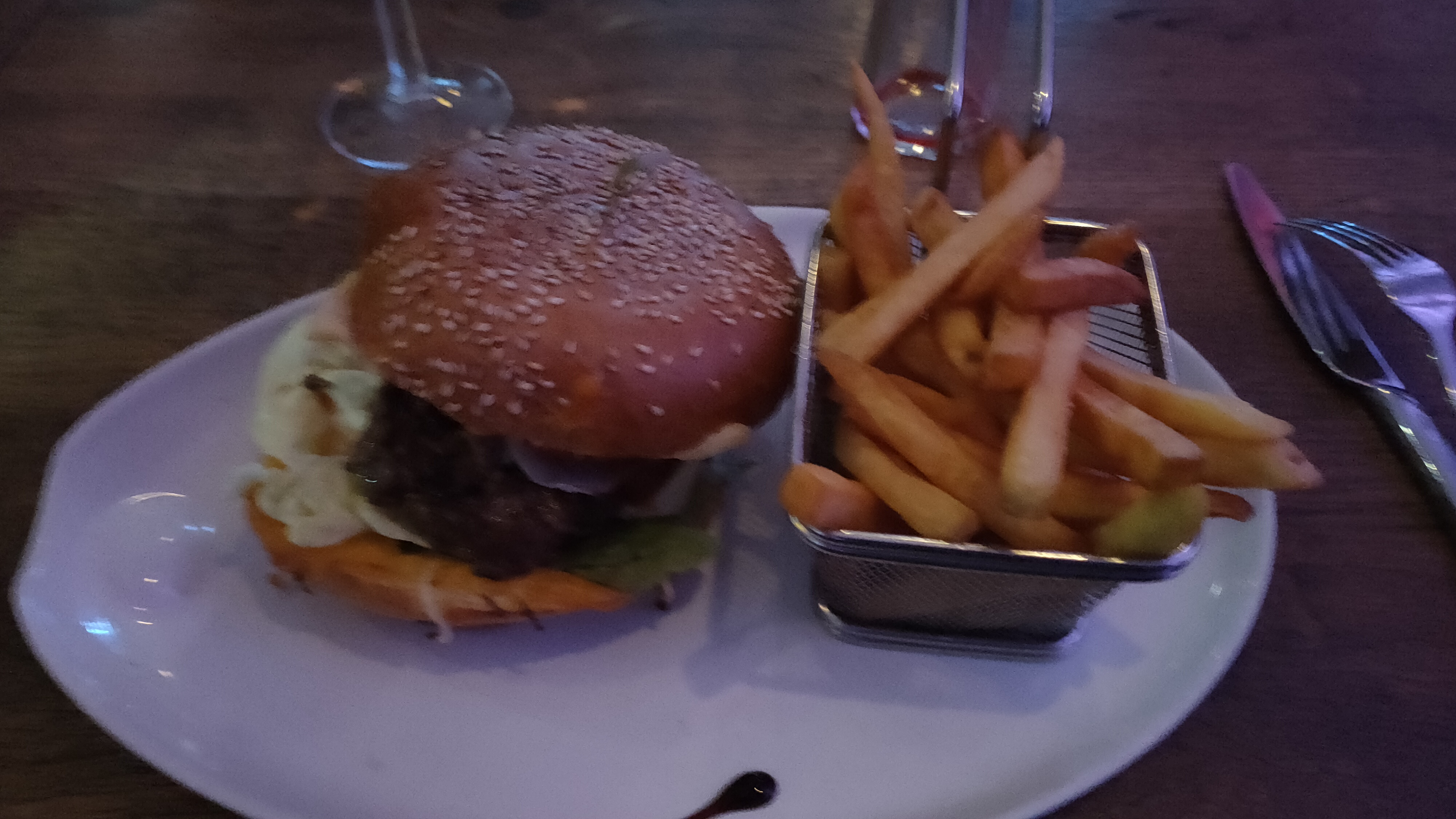 Très bon restaurant, la déco est très bien. Le temps de servuce en heure de pointe pourrait être un peu plus court. Cependant la carte qui propose beaucoup de choix manque VRAIMENT d'options végétariennes. Dans toute la carte il y a un plat végétarien, même dans les entrées il n'y en a pas. Je pense que rajouter simplement une option steak végétal pour les burgers, une simple entrée de légumes, serait déjà un bon début. Cela évite de se sentir frustré avec un plat de pâtes quand on voit les autres avec de superbes assiettes.
