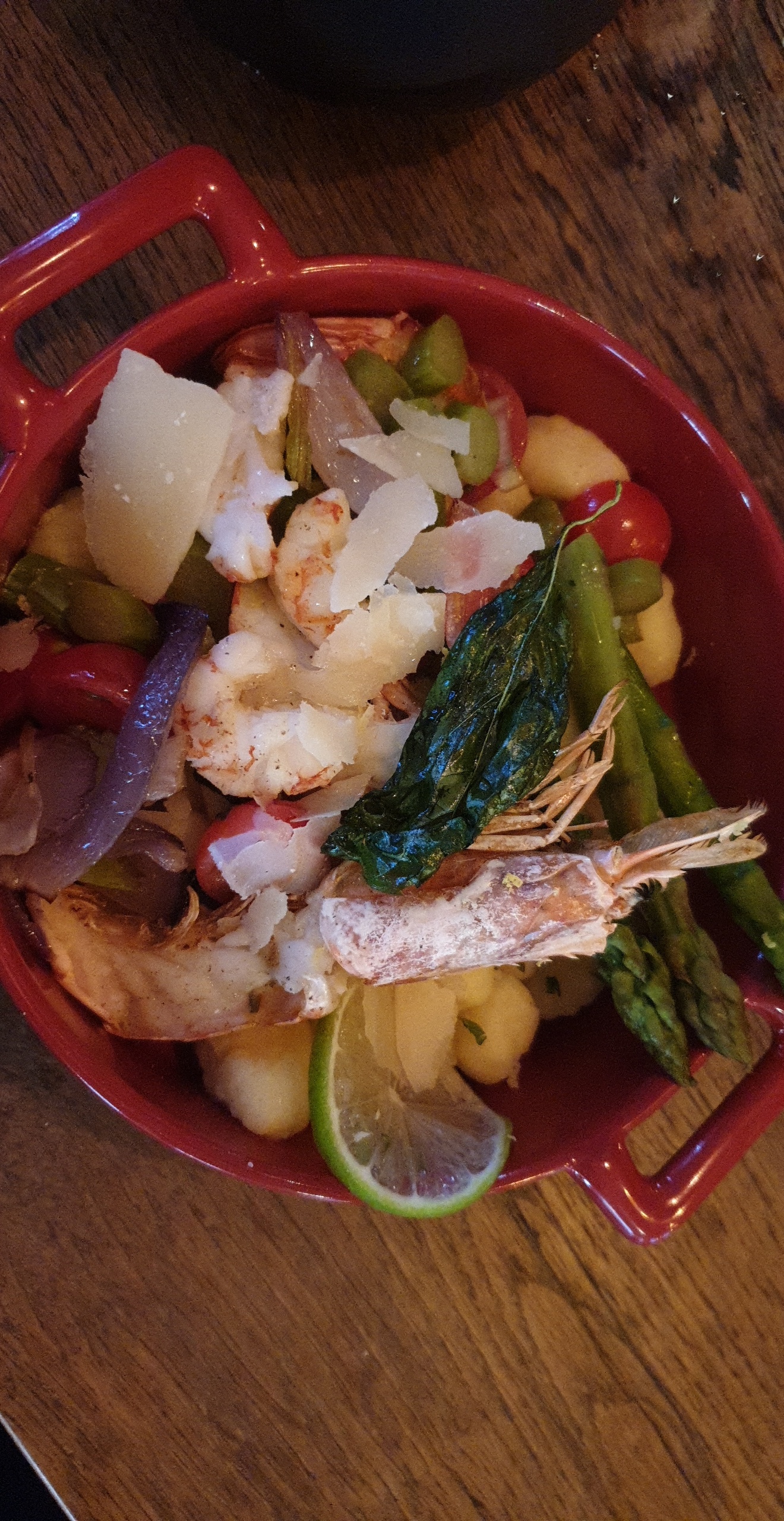 Endroit agréable, très beau, plats un peu chers et les gnocchis aux gambas décevante mais l'entrée à partager ainsi que les desserts étaient bons.