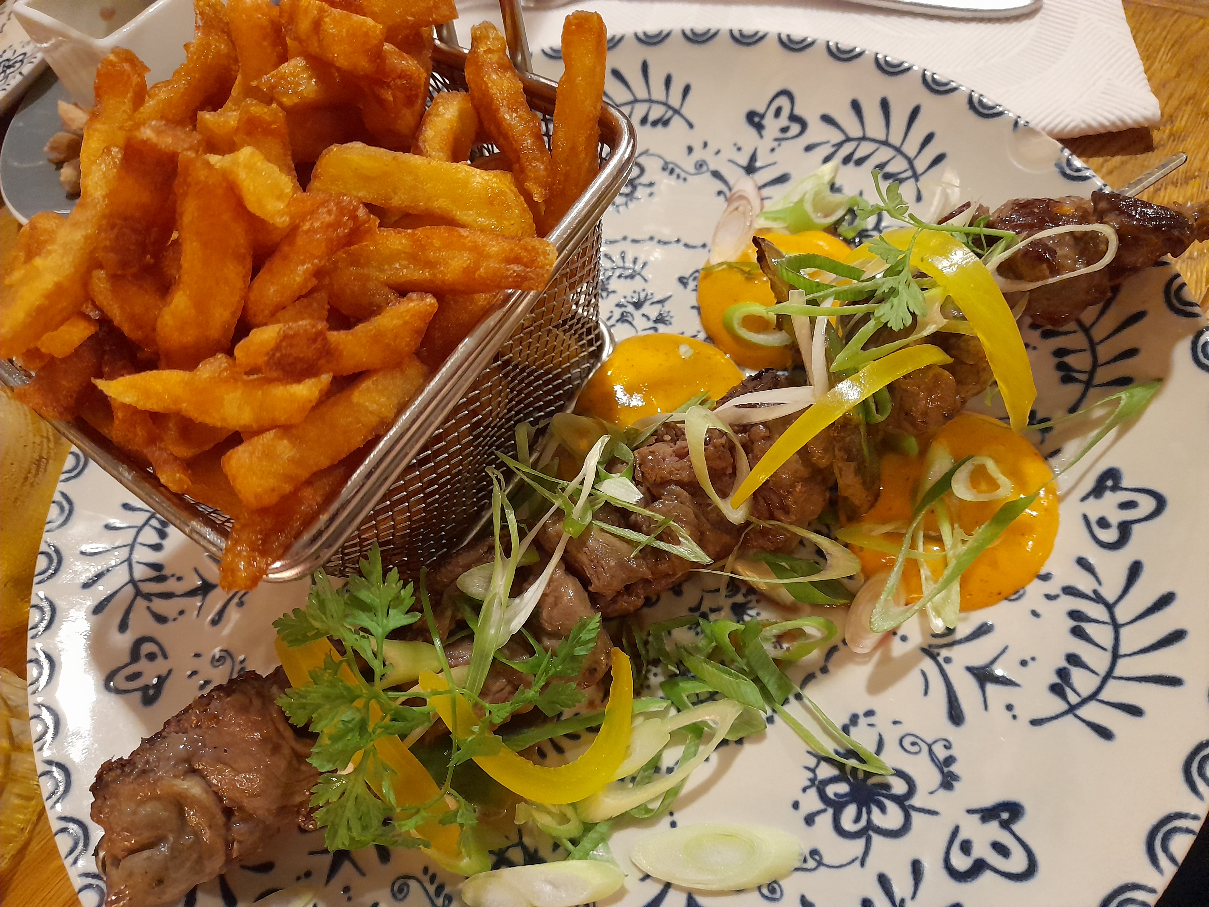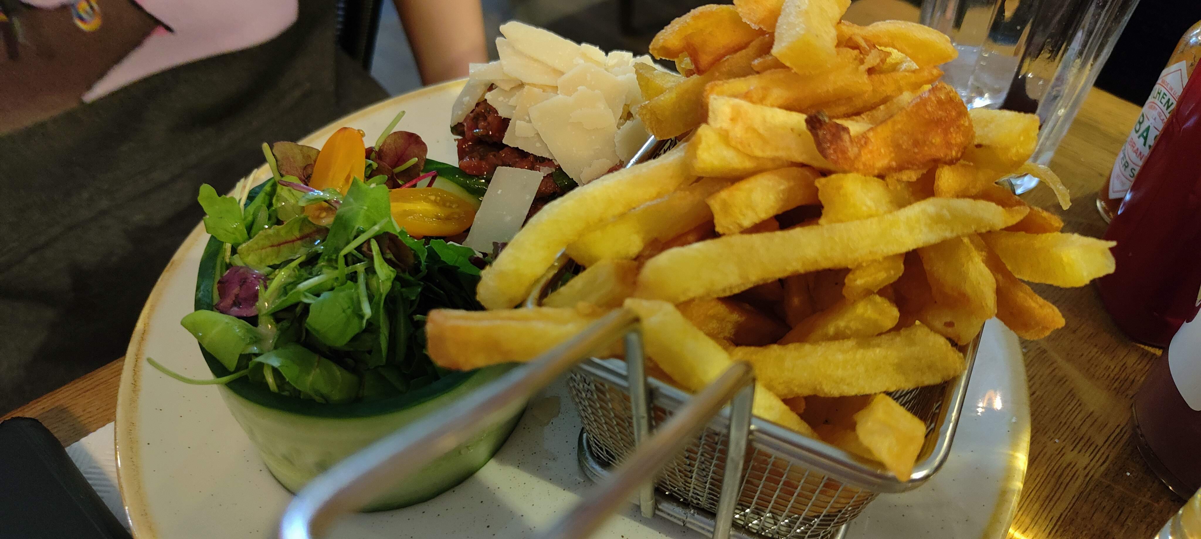 Une adresse trouvée par hasard que je recommande chaudement. Pour ma part, j'ai pris un filet de bœuf bleu parfaitement fondant à l'intérieur et croustillant à l'extérieur avec une super sauce le tout accompagné de pomme de terre dauphinois cuites avec une savoureuse crème. Mon fils s'est régalé sur tartare de bœuf italien avec des frites succulentes. Le décor est charmant avec des petites lumière er pour ne rien gâcher le service est super réactif et très chaleureux. Bref, une adresse enregistrée dans mon téléphone pour une future visite dans le quartier.