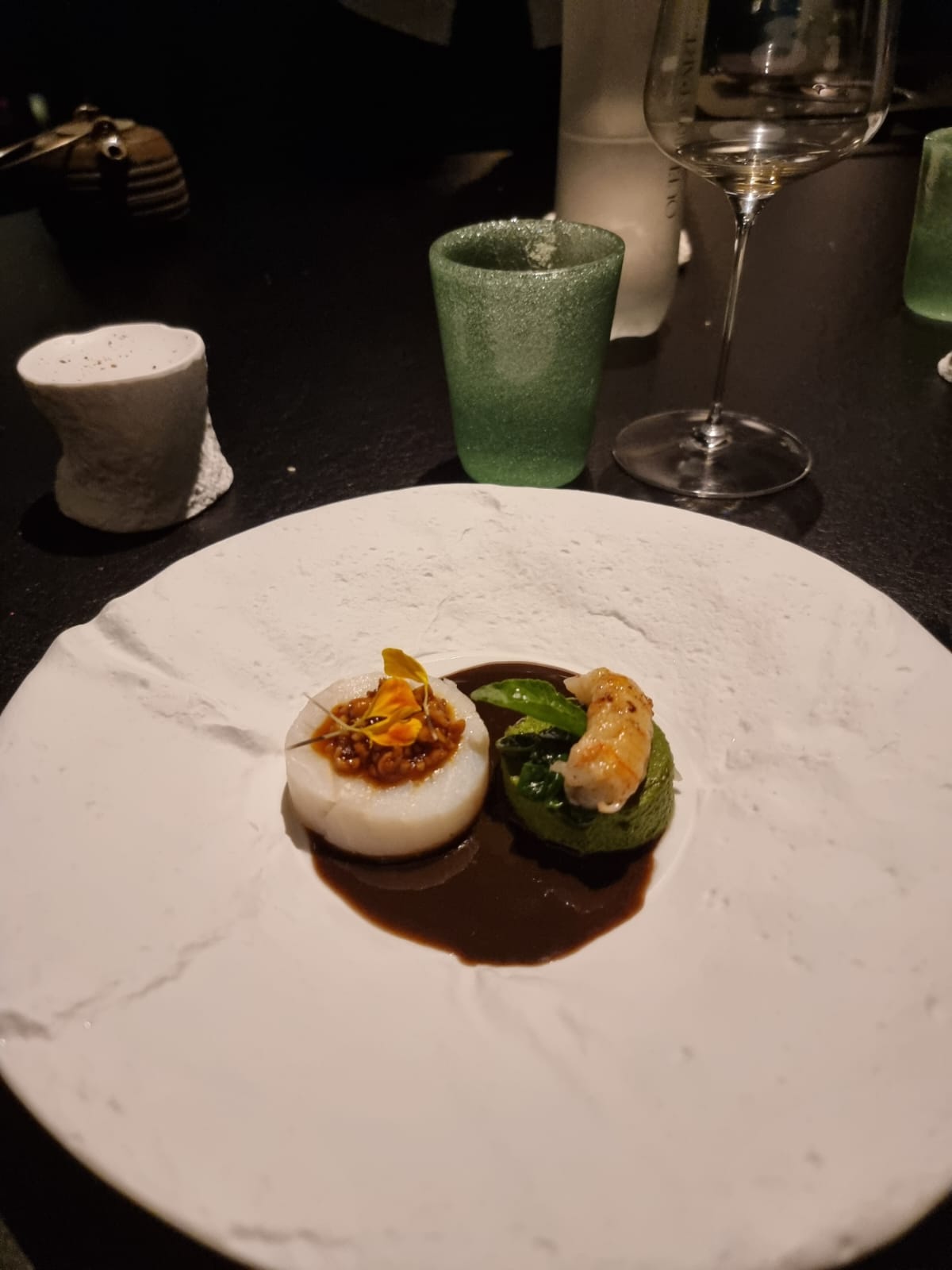 Somptueuse descente dans les abysses ! Merci encore pour l'accueil, le service de Mehdi et l'expérience culinaire incroyable que nous avons vécue. A peine on pousse la porte du restaurant et nous voilà déjà plongé dans un univers qui s’annonce plein de mystères. Au cours de la plongée, les paliers sont tout aussi exceptionnels les uns que les autres. Dès la mise en bouche, le chef et son équipe mettent la barre très haute et la maintiennent tout au long de la descente. Tout est fin, tout est pensé avec un superbe jeu de couleurs et textures. Enfin merci pour la disponibilité du chef en fin de repas. Une incroyable découverte que l’on recommande sans hésiter et que l’on refera très vite !!!