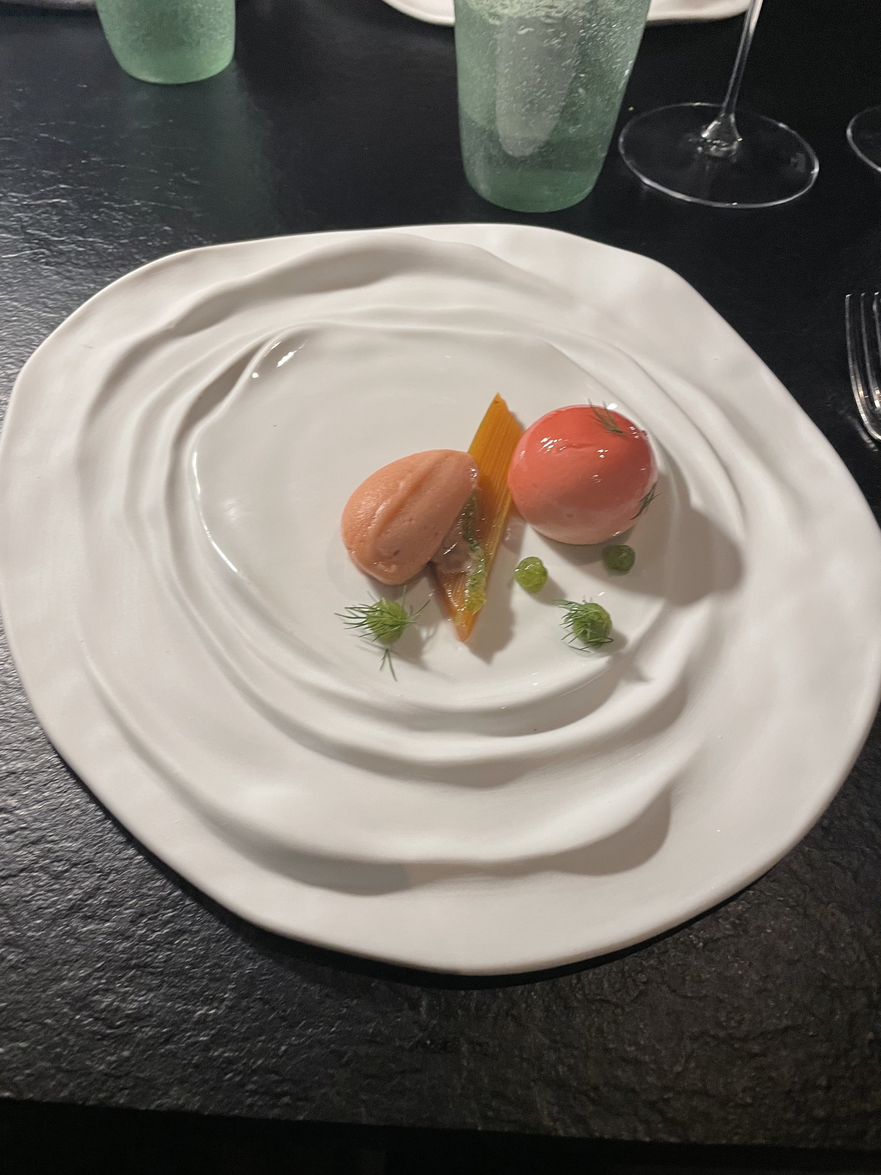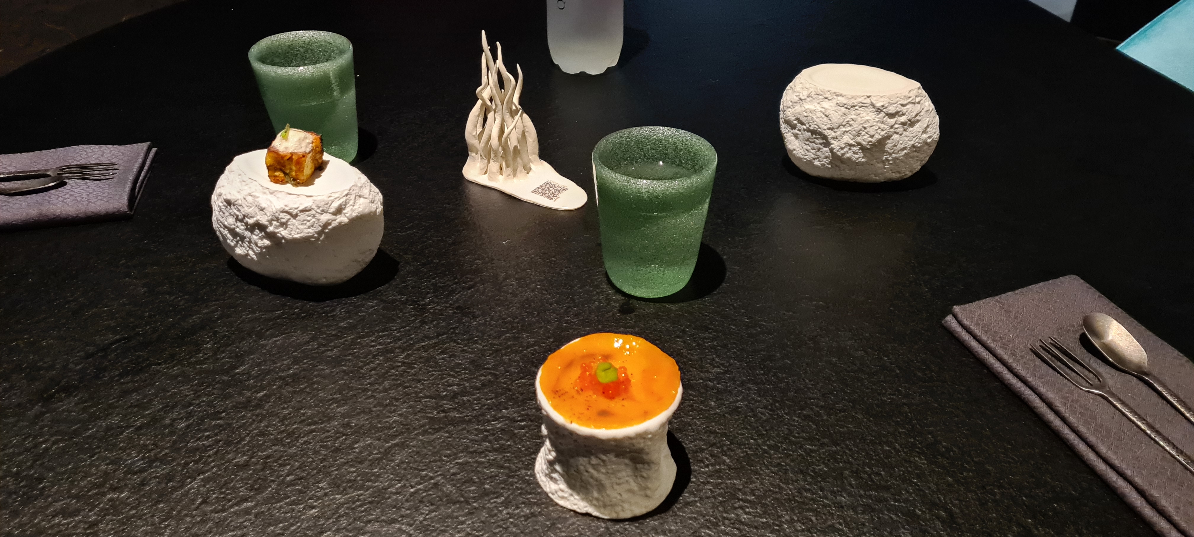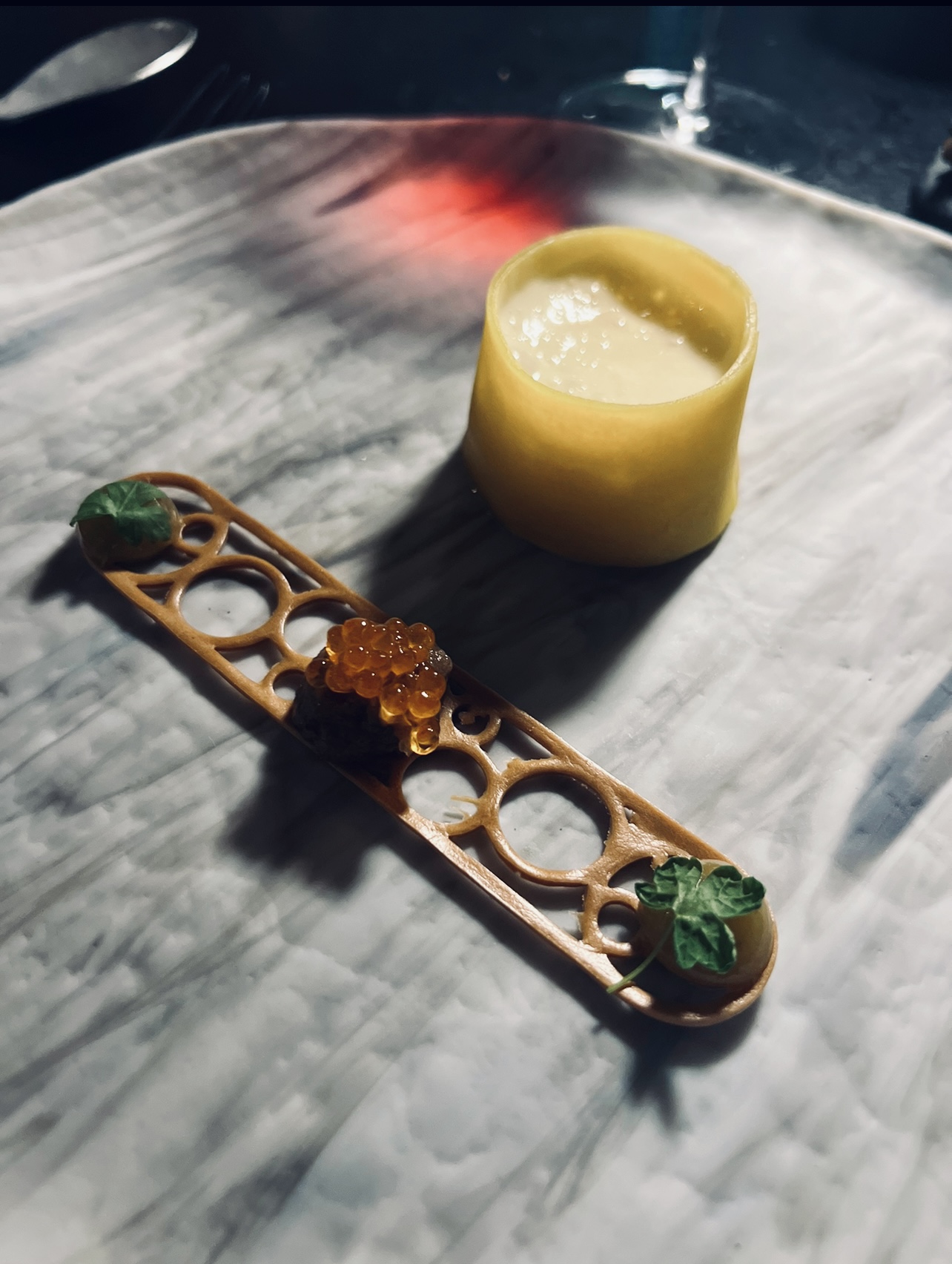 Top ! Toute l’expérience est travaillée, épurée, réfléchie, de l’accueil à la décoration et bien sûr la cuisine. On plonge pour un voyage dans les abysses et on y découvre une expérience gourmande et surprenante, qui fait voyager. J’ai particulièrement apprécié de pouvoir découvrir des saveurs que je ne connaissais pas, dans une décoration qui nous plonge hors du temps… Juste wahou !