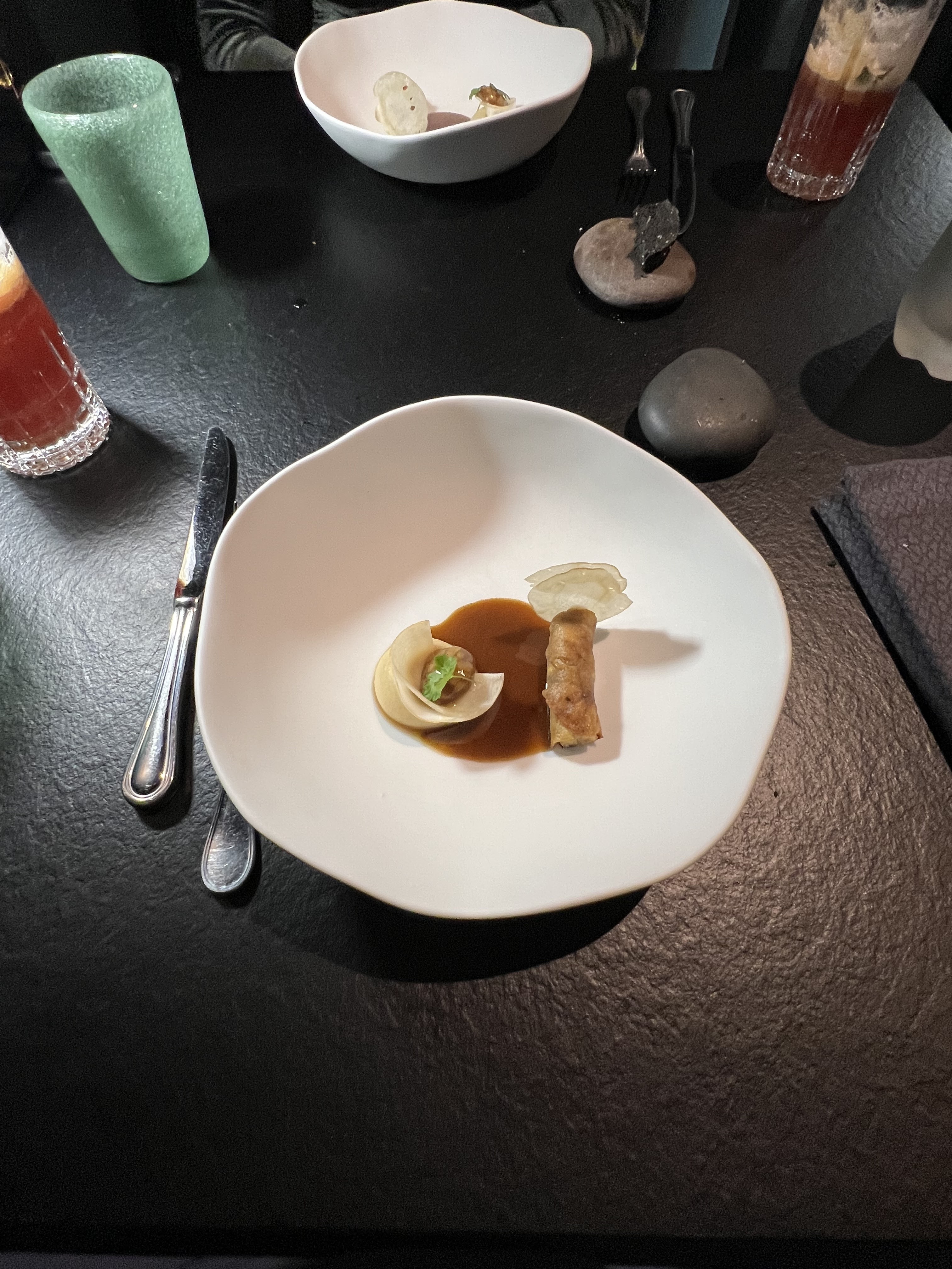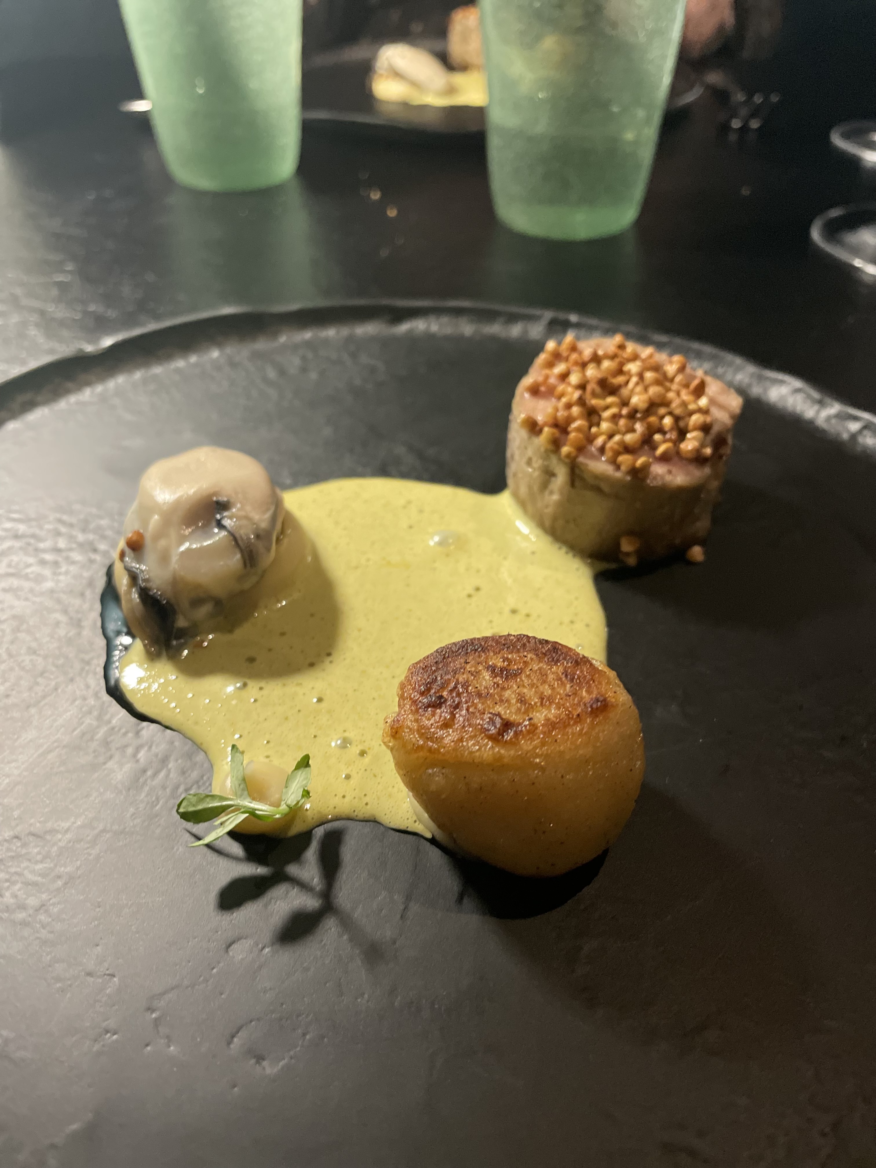 Par où commencer ? Le cadre immersif et minimaliste, le service soigneux et agréable, des plats riches en termes de texture, d'ingrédients, de fusion au niveau du palet, en nombre de paliers, de très bons cocktails iodés et raffinés, and the list goes on and on ! Un chef humble, avenant, accessible, passionné et courtois. Je suis d'origine libanaise et donc méditerranéen, le thème du restaurant les abysses, soit la mer et ses grandes profondeurs, a été si bien travaillé que l'expérience au sein de ce restaurant vous ferait voyager dans votre imagination et votre imaginaire. A faire et refaire !